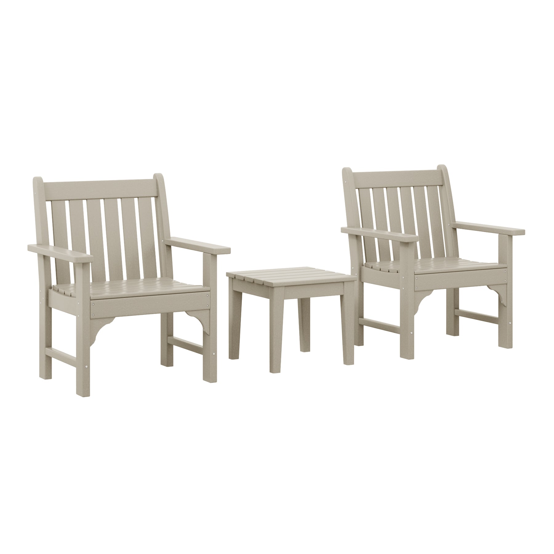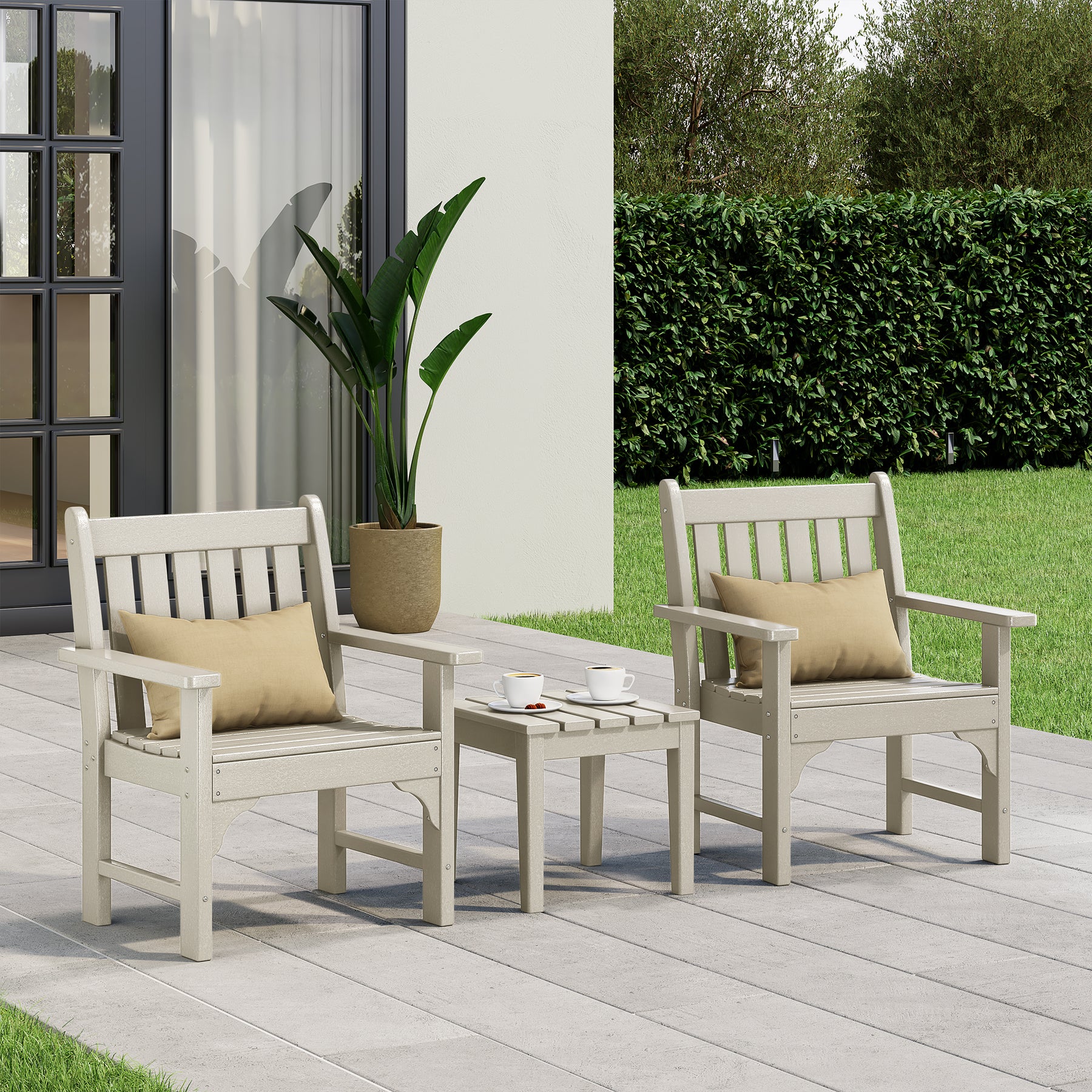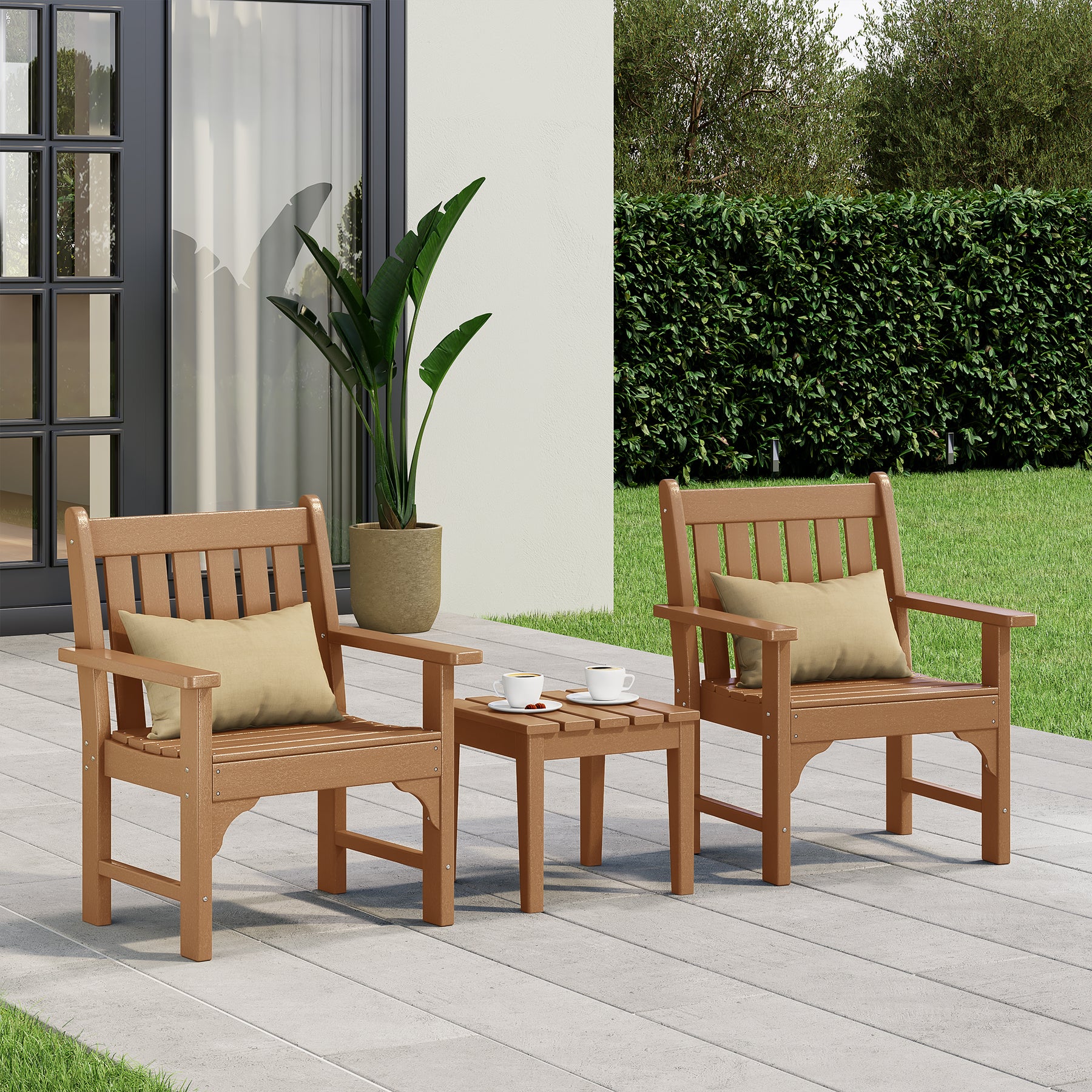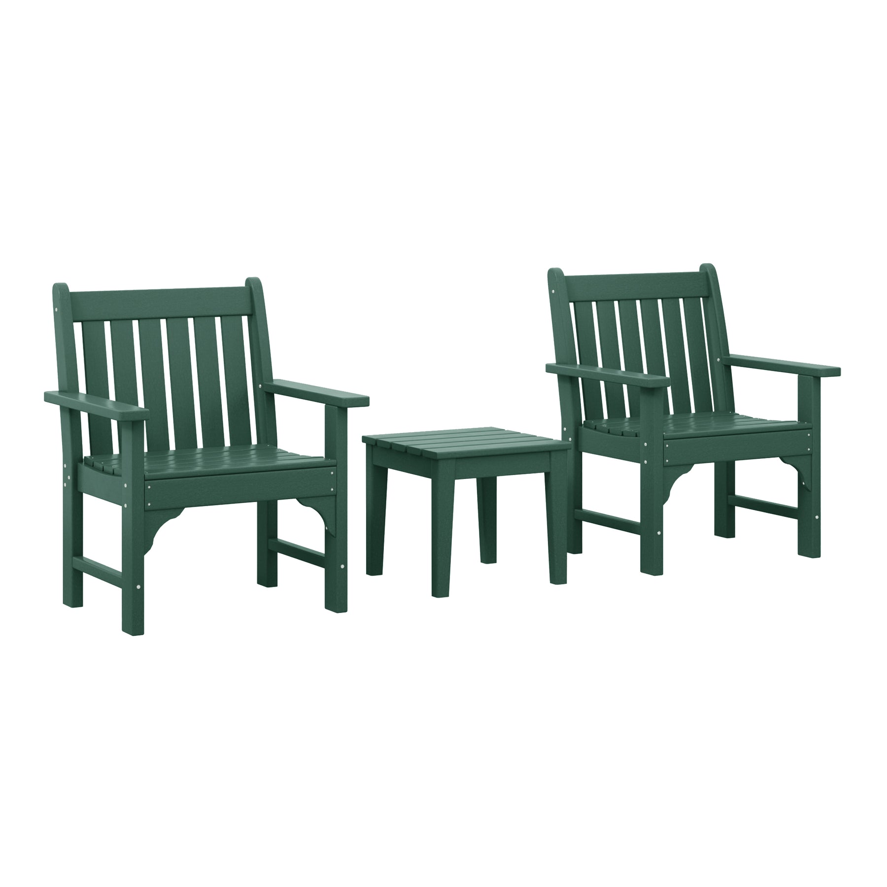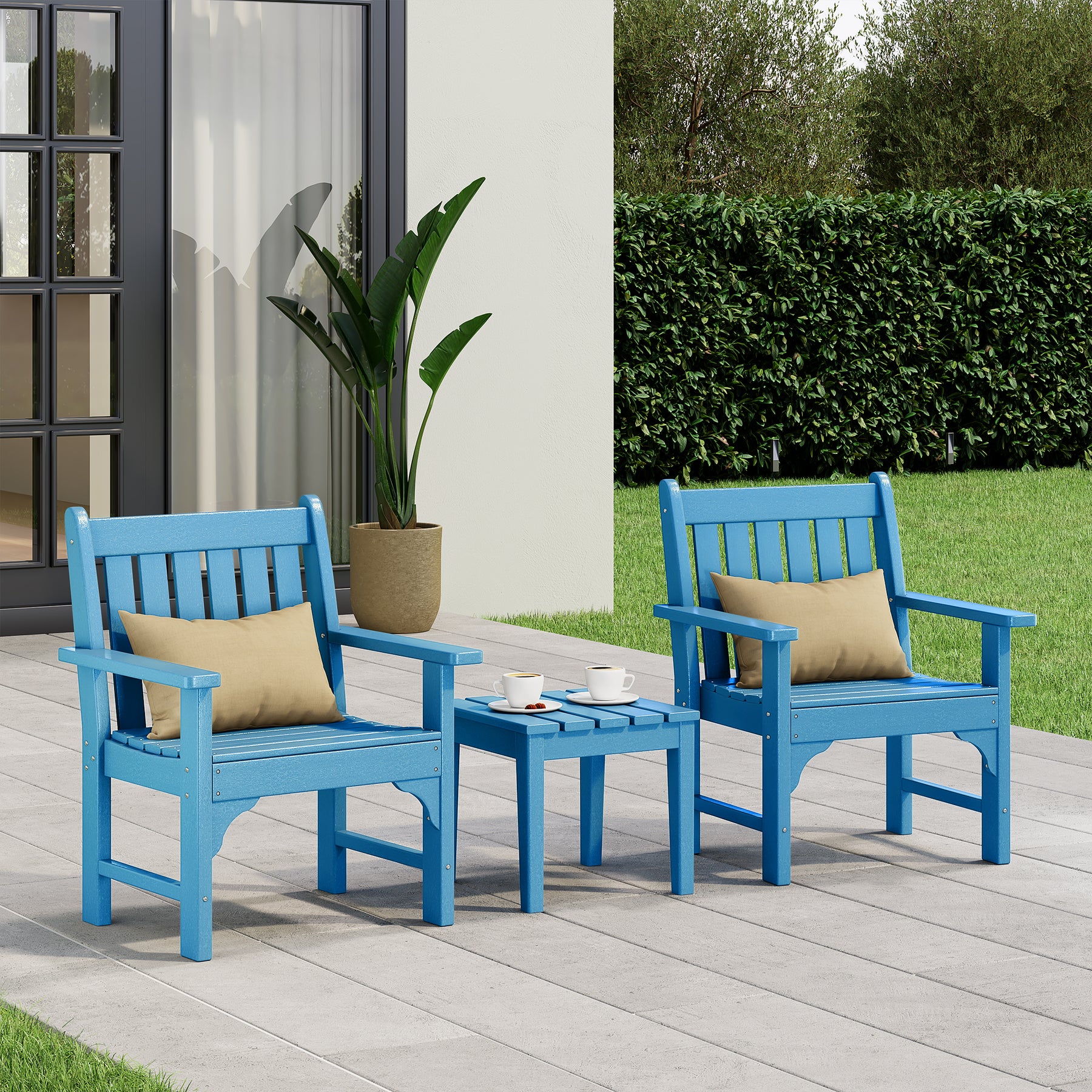 Malibu Outdoor Patio 3-Piece HDPE Adirondack Garden Chairs with Square Adirondack Side Table Set