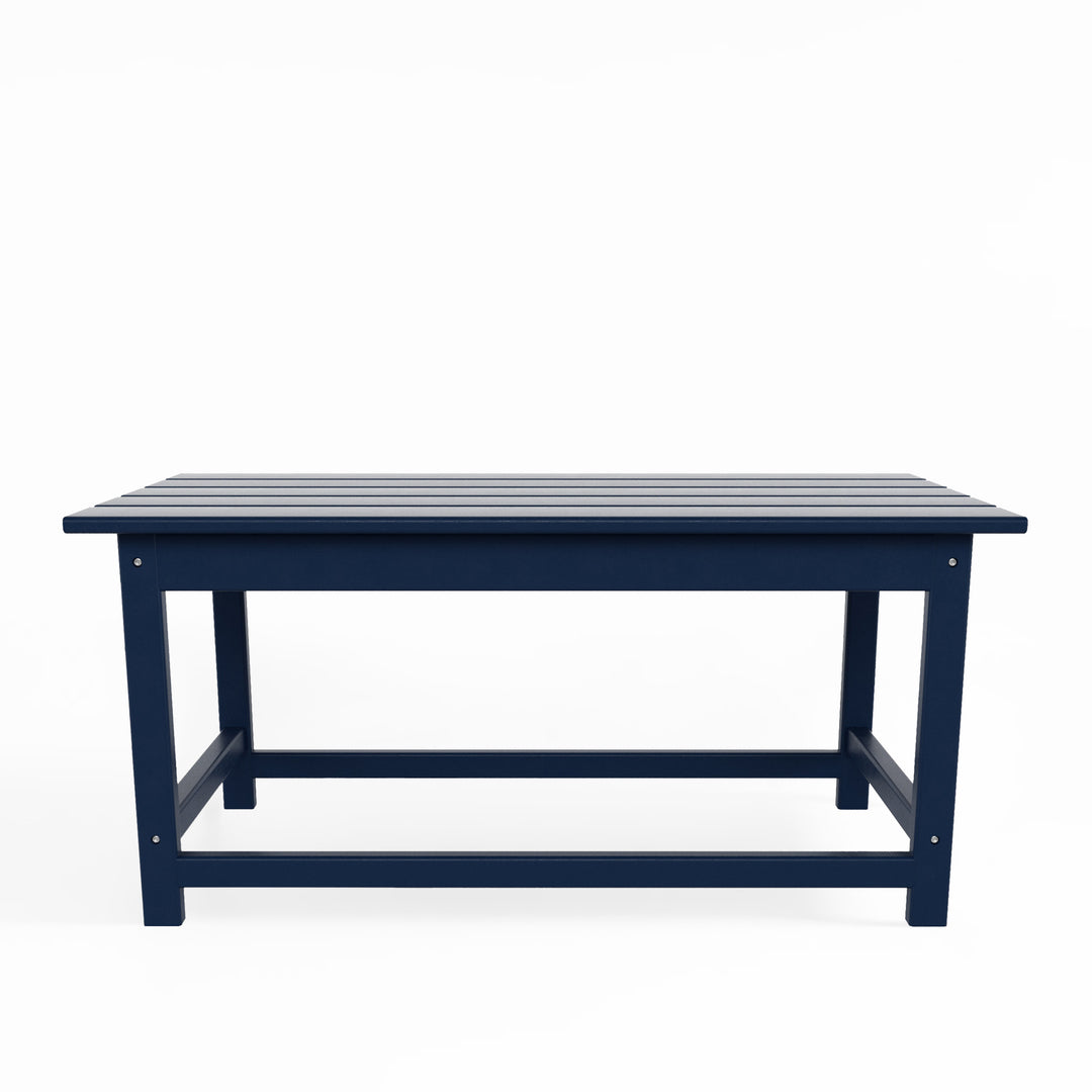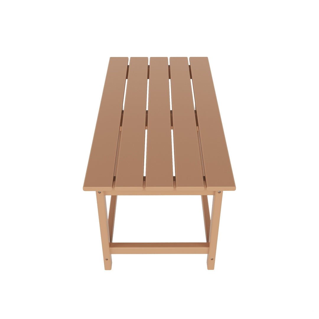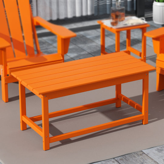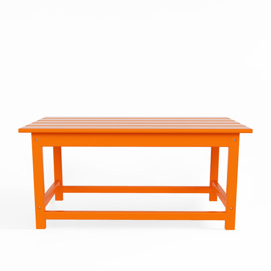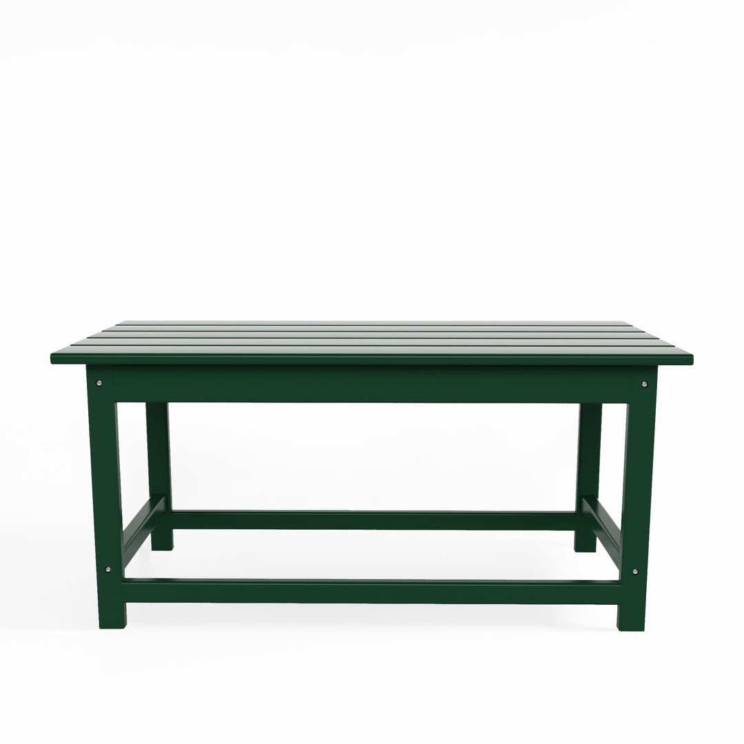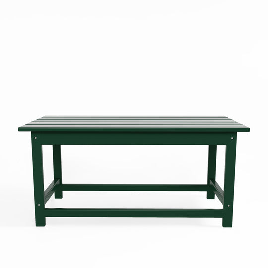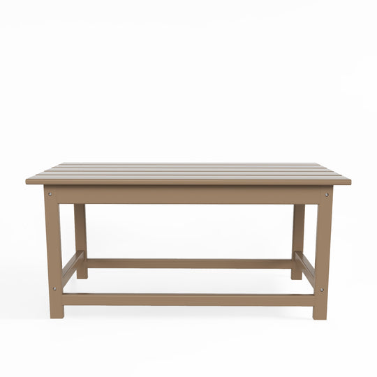 Having a place to sit is always the first thing on your mind when furnishing, but don't forget about the accessories that make it shine! This 35" inch coffee table is sure to complete your patio or living room and match with your Adirondack chairs. Created with eco-friendly HDPE material adds durability and can withstand the outdoor elements thanks to the HDPE's natural UV and weather resistant. The table is made to look like natural wood without any of the disadvantages of natural wood, meaning that this table isn't prone to splinters, cracks, or peeling. This table is perfect for the outdoors and will have your home looking great with the semi-gloss finish that is sure to shine.