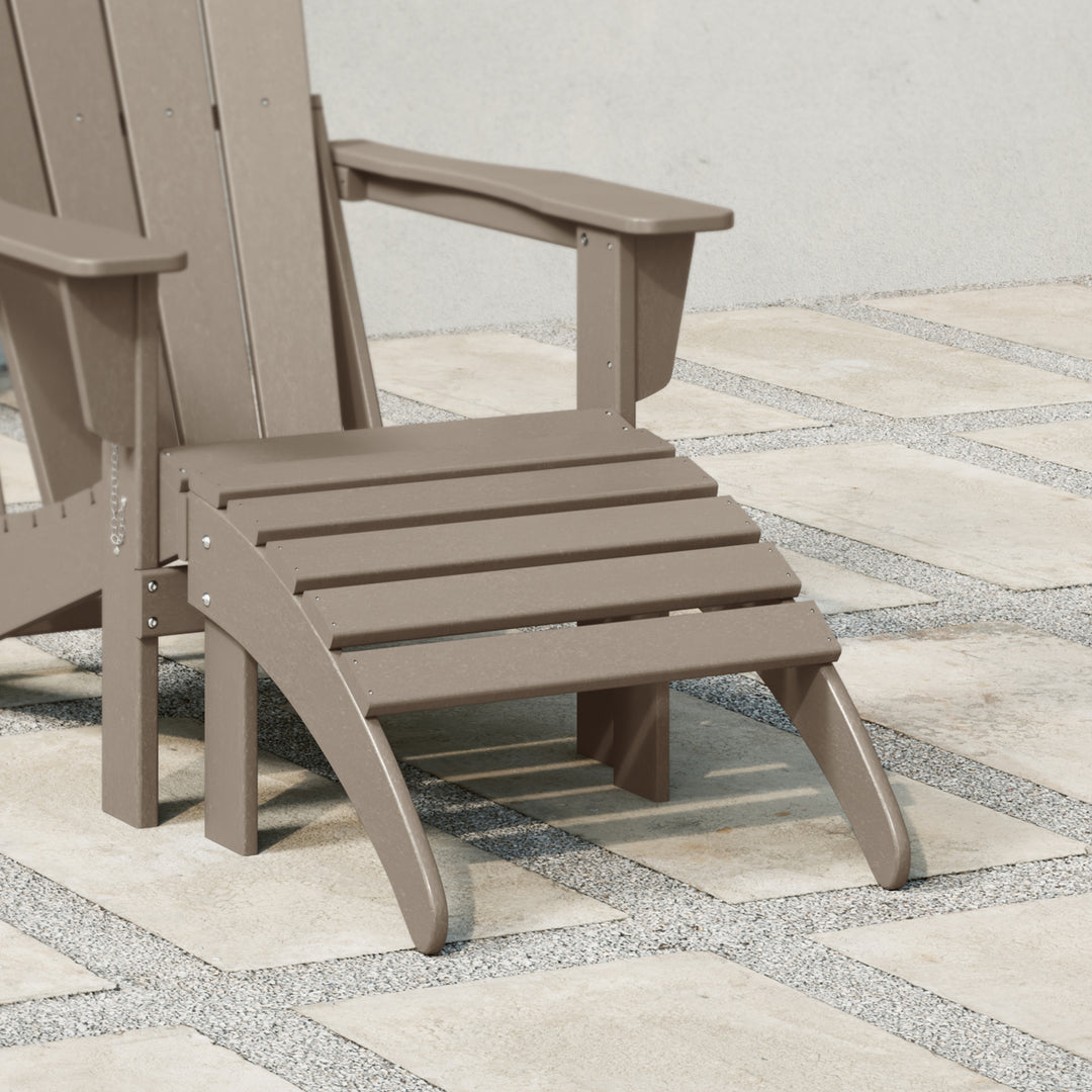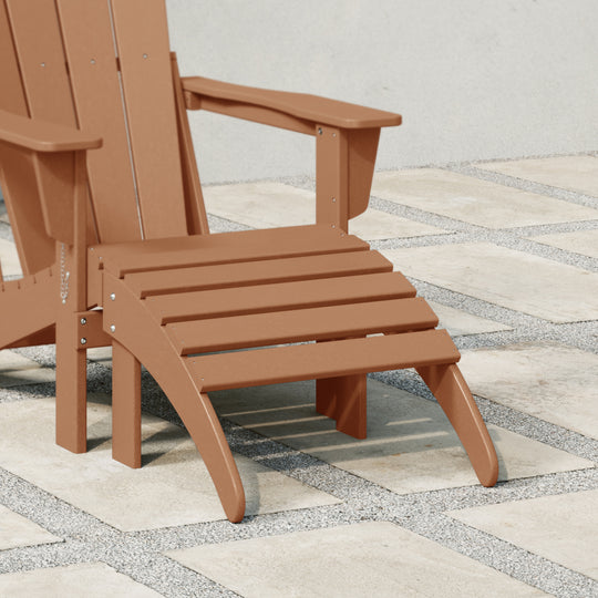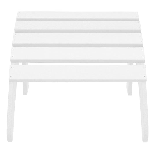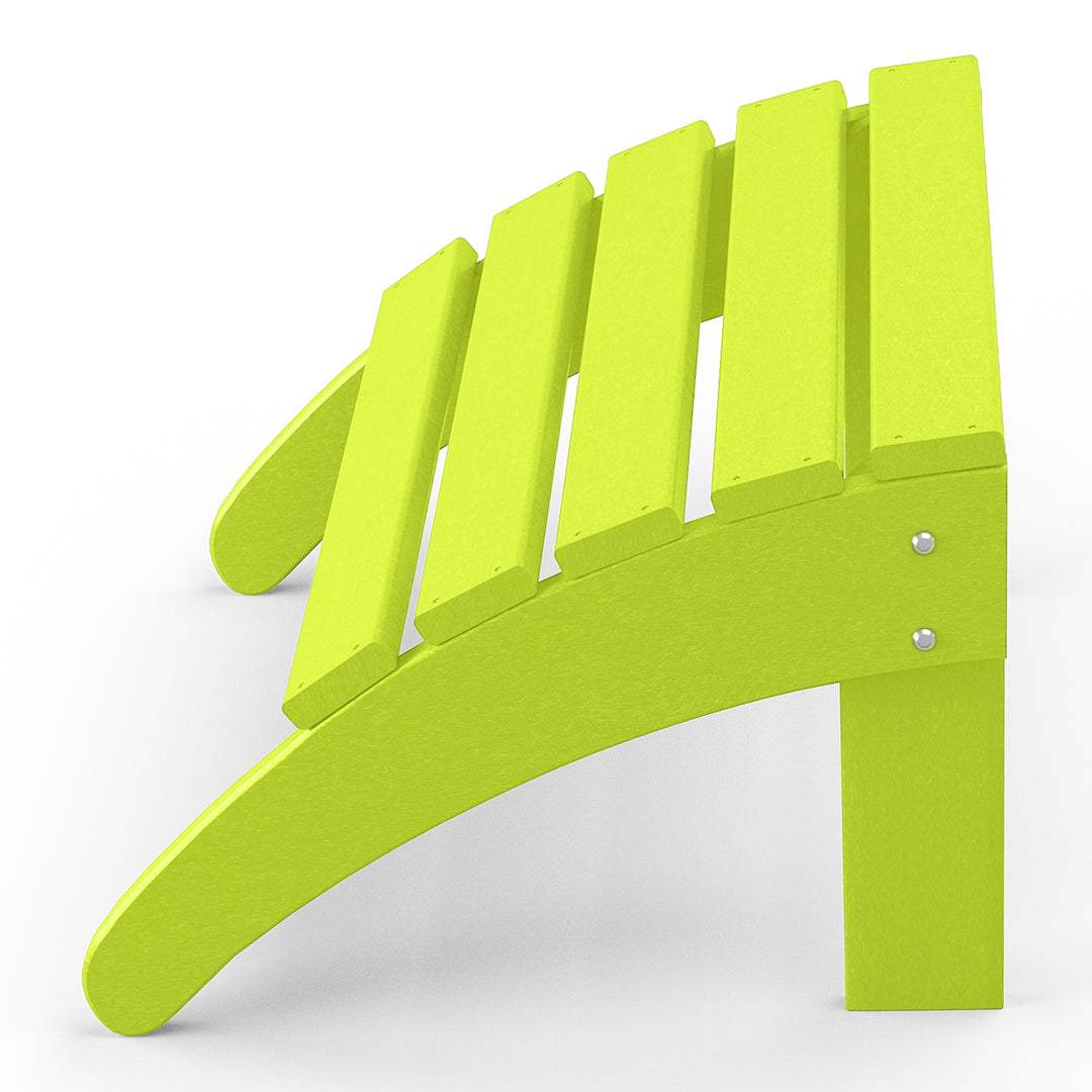 Sit back on your Adirondack chair and kick your feet up on a matching foldable ottoman. The slight arch will comfort your feet and leave you feeling relaxed. Perfect for outdoor use, the high-quality HDPE construction adds strength and durability, and the ottoman's vibrant color is preserved throughout the entire season by a weather- and UV-resistant treatment. The minimalist design is perfect to match your Adirondack chair and spruce up your patio and with multiple color options to chose from to add a pop of color