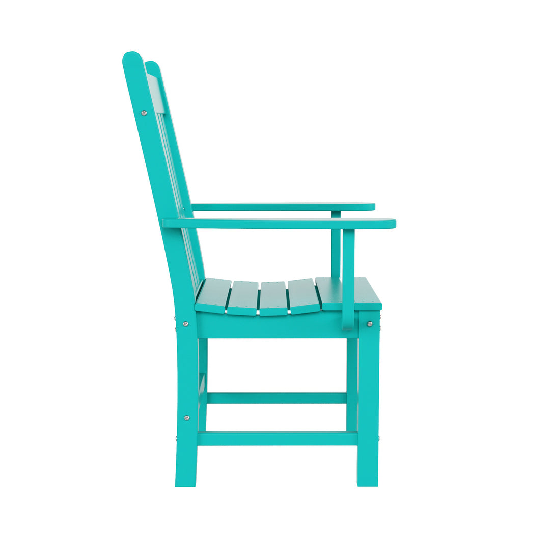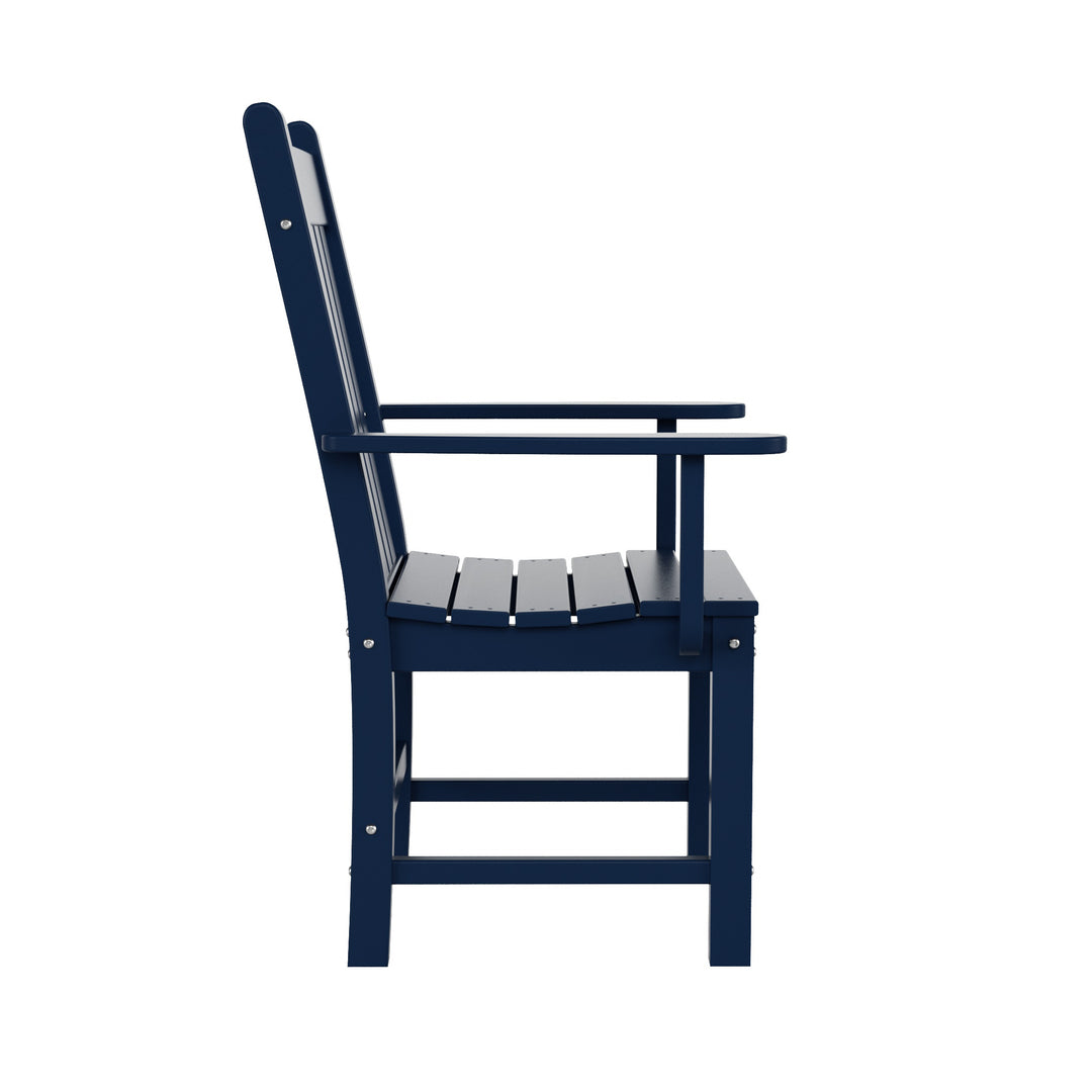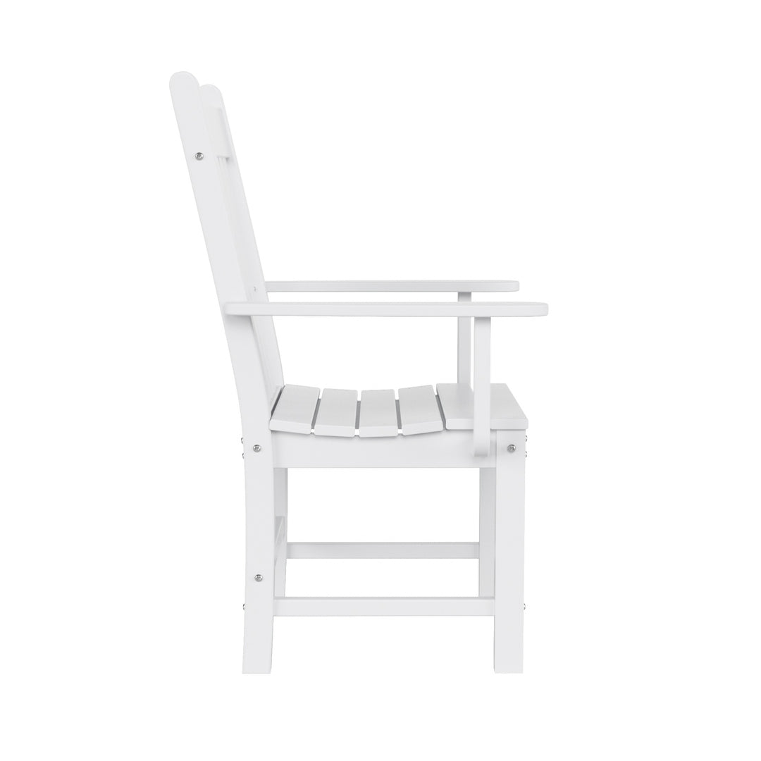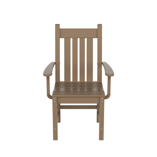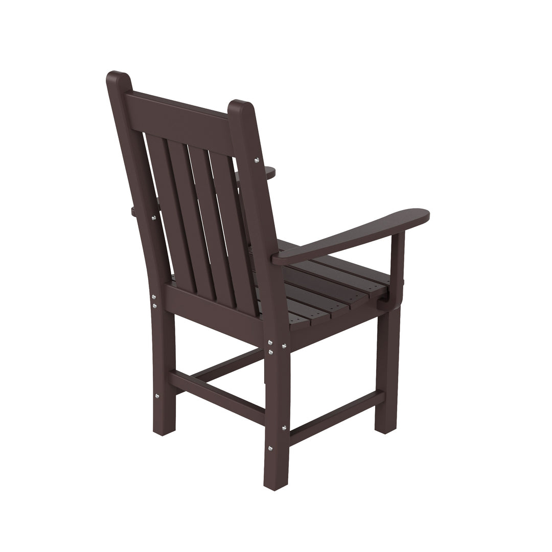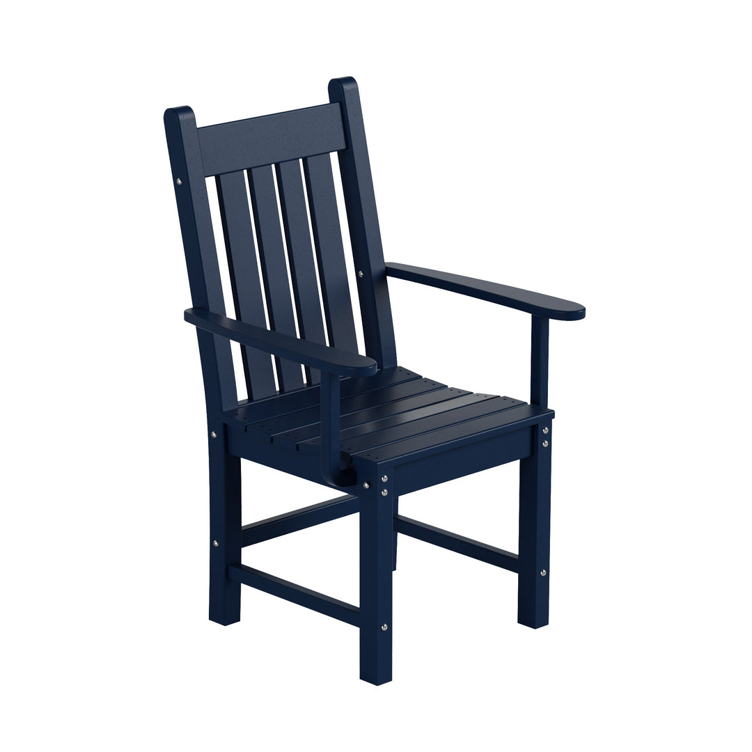 This outdoor dining chair is sure to complete your patio or backyard and match with your outdoor dining table. Created with HDPE material adds durability and can withstand the outdoor elements thanks to the HDPE's natural UV and weather resistant. The armless chair is made to look like natural wood without any of the disadvantages of natural wood, meaning that this outdoor chair isn't prone to splinters, cracks, or peeling. This dining chair is perfect for the outdoors and will have your home looking great with the semi-gloss finish that is sure to shine.