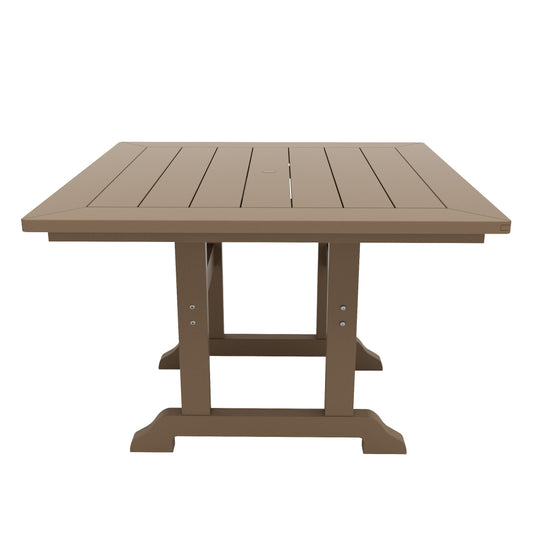 This outdoor dining set is sure to complete your patio or backyard. Created with HDPE material adds durability and can withstand the outdoor elements thanks to the HDPE's natural UV and weather resistant. The dining table and chair are made to look like natural wood without any of the disadvantages of natural wood, meaning that this outdoor dining set isn't prone to splinters, cracks, or peeling. This dining set is perfect for the outdoors and will have your home looking great with the semi-gloss finish that is sure to shine.