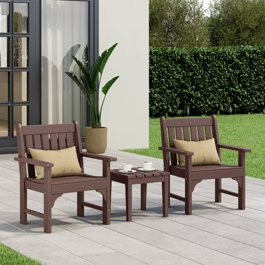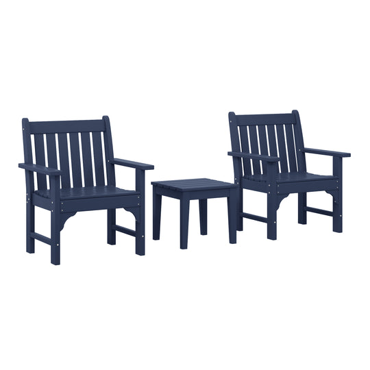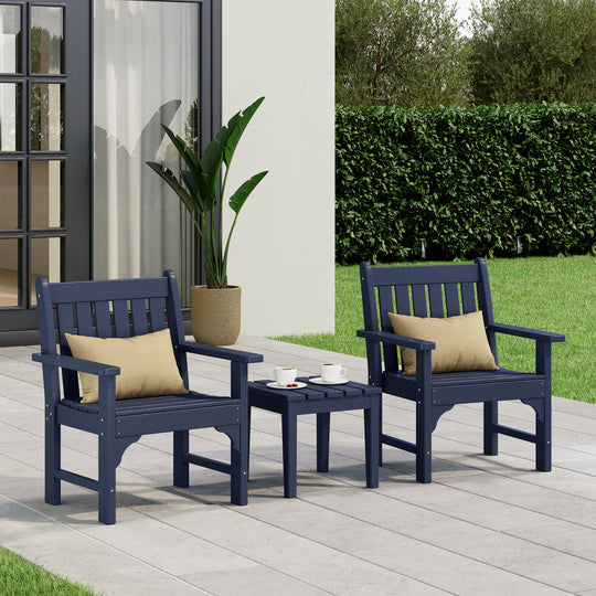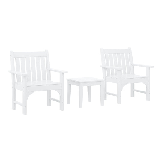 Malibu Outdoor Patio 3-Piece HDPE Adirondack Garden Chairs with Square Adirondack Side Table Set