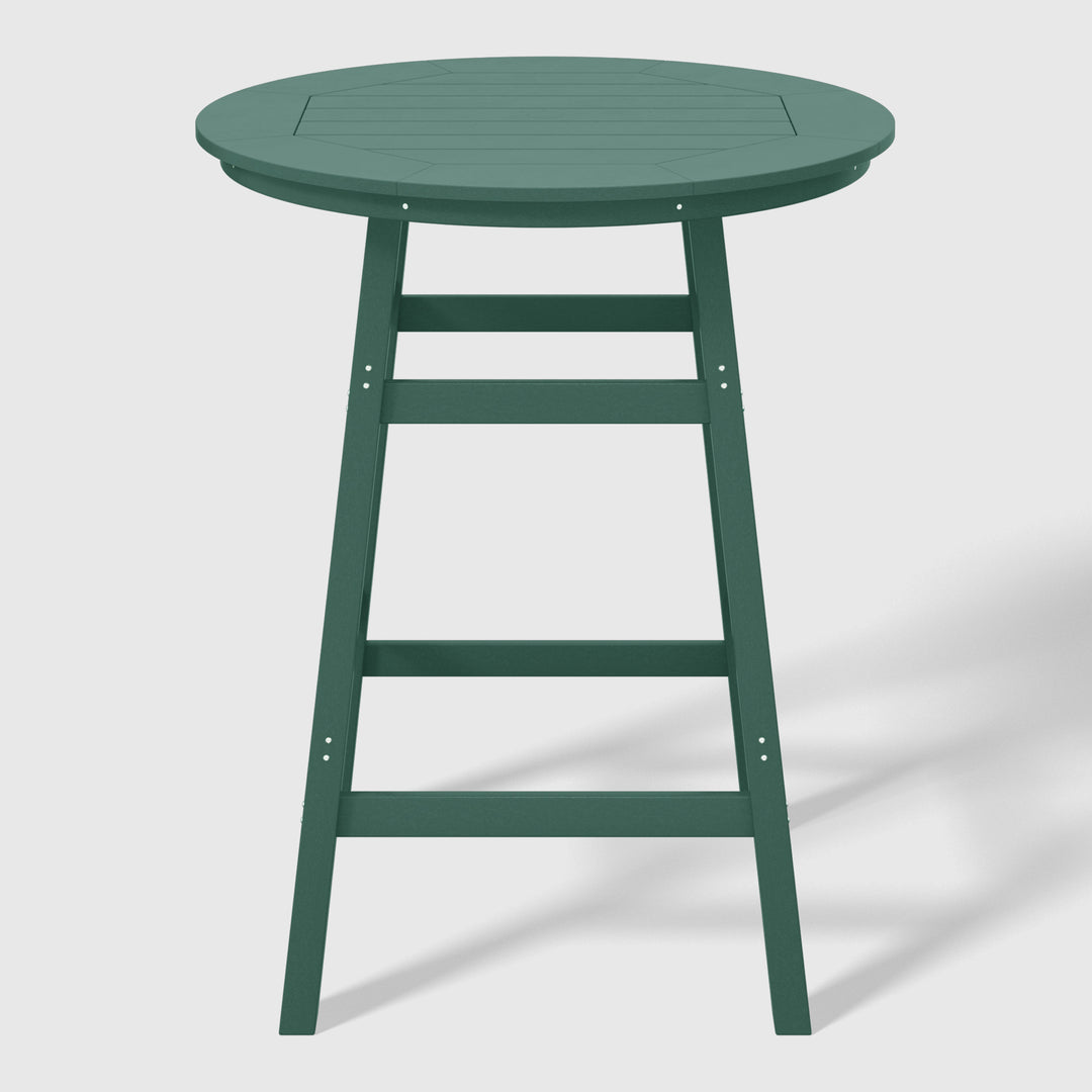 Upgrade your outdoor dining setup with our stylish 35" round bar table—an ideal pick for relaxed garden or backyard bar patio gatherings. Crafted from weather-resistant materials, it's ready for anything nature throws its way. host effortlessly year-round, thanks to the durable HDPE material that resists UV and fading, ensuring your chic bistro bar table stays vibrant. The slatted and octagonal inner tabletop design, paired with its round shape, adds a touch of character, complete with a handy umbrella hole for those sunny days. This versatile bistro bar table is perfect for casual get-togethers with loved ones and friends this spring.