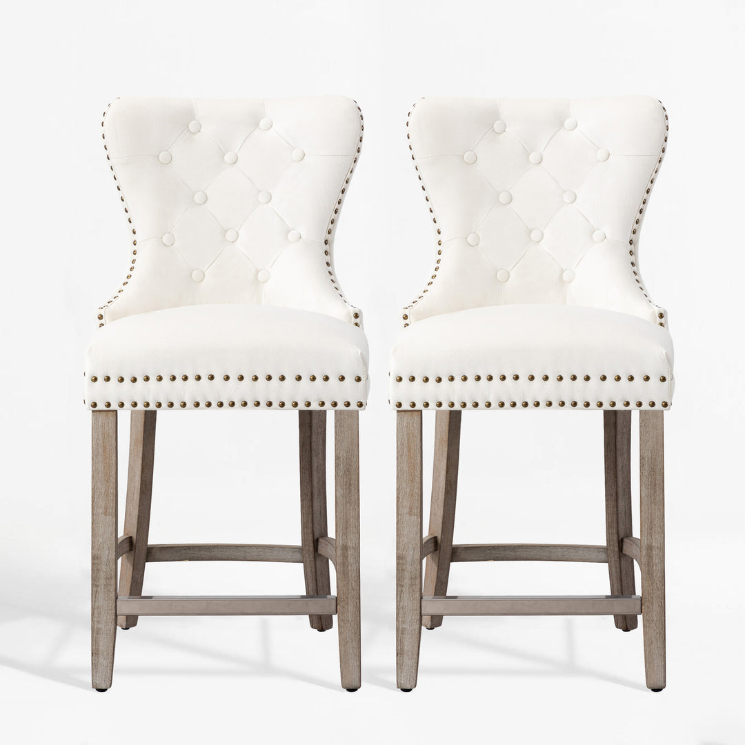 Wordford 24" Tufted Velvet Counter Stool (Set of 2), Antique Gray