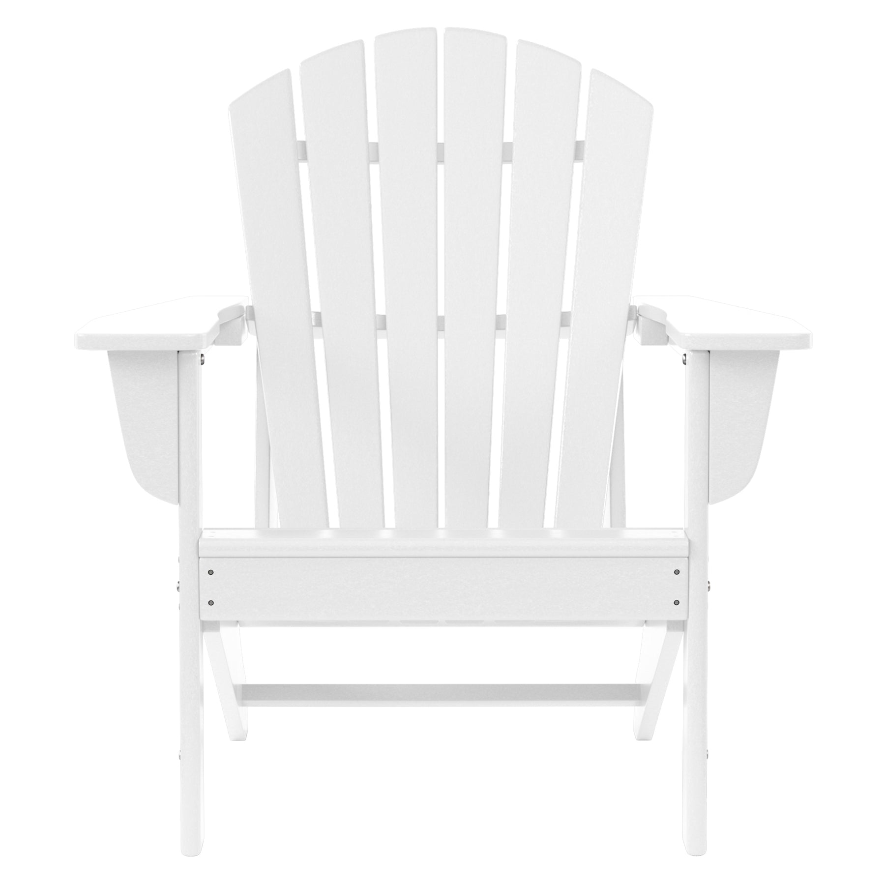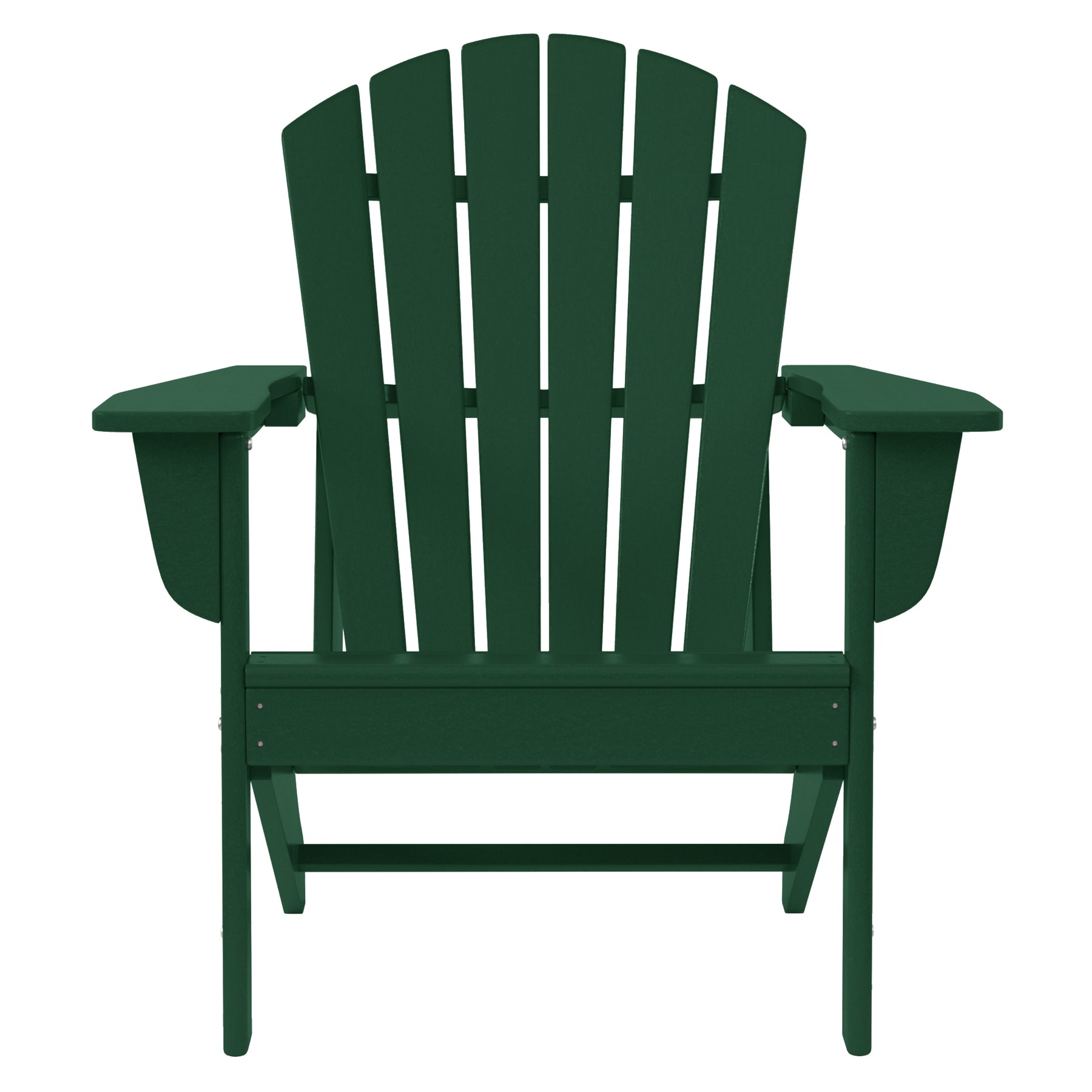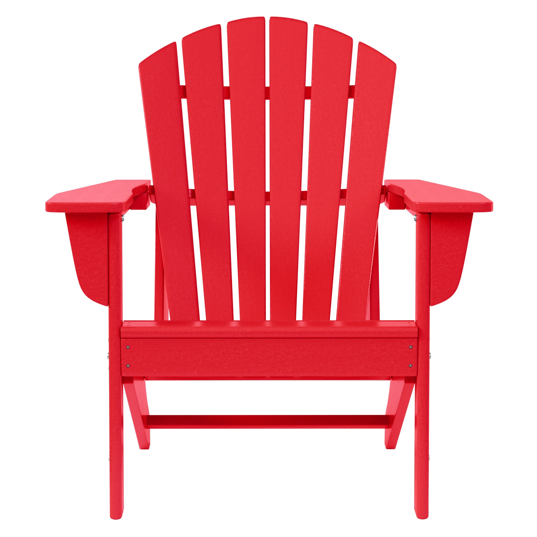 Sit back, relax, and catch a tan or enjoy some family time on this stunningly crafted Adirondack chair. Designed with comfort and style in mind, with a broad armrest for extra armroom, a curved reclined seashell backrest for a more comfortable seat, and a high back that helps reduce tension on your back. Constructed from a durable and solid HDPE material that is weather resistant and, unlike wood, won't crack, chip, peel, or splinter. A UV-protective coating prevents fading, keeping the colors vibrant and amazing all year long. This attractive chair is easy to clean, making it perfect for the outdoors, and is sure to make your backyard the place to be.