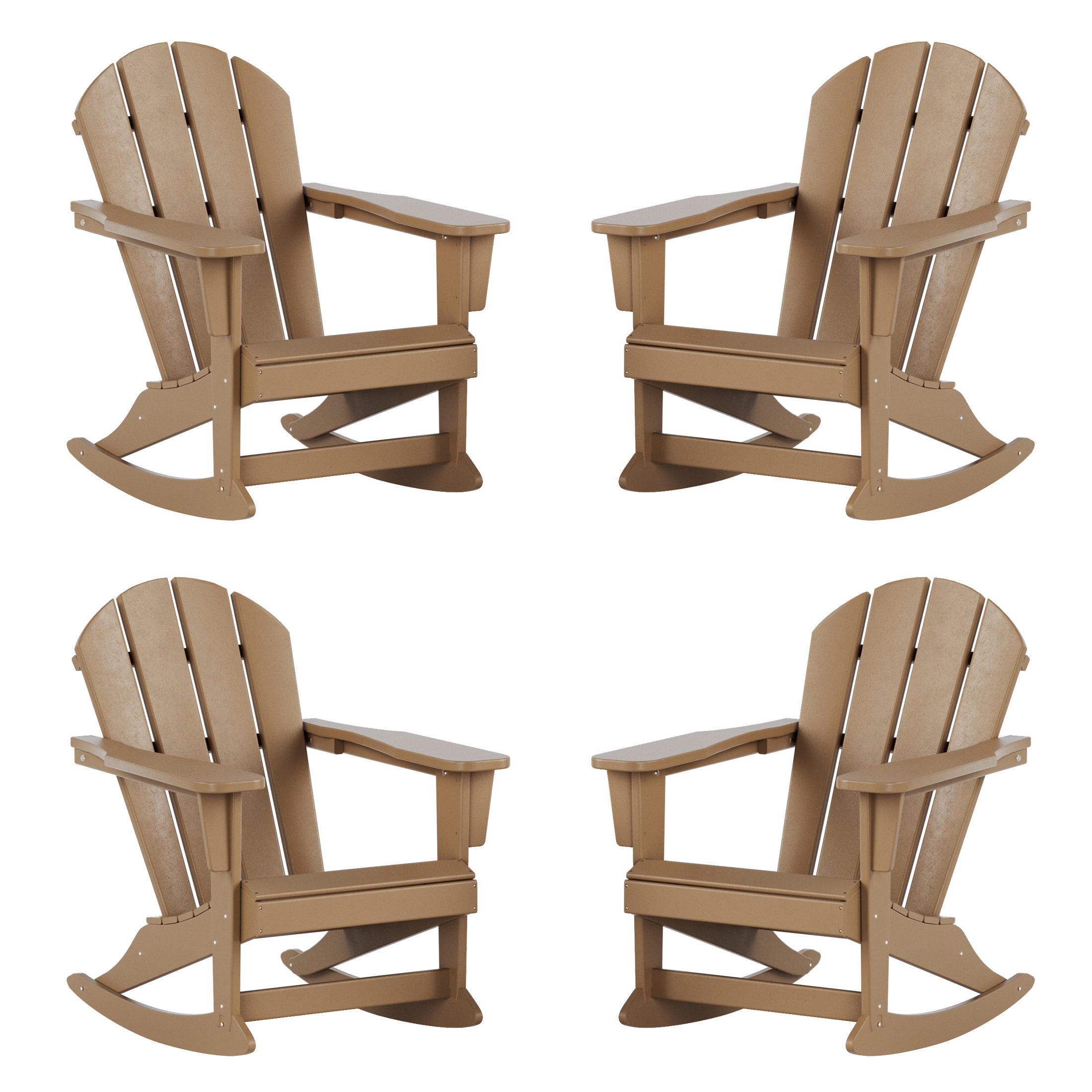 Ideal chairs for unwinding in your backyard or porch on a sunny day while enjoying time with friends or family. Relax all day long thanks to the chair's contoured seat, wide armrests, and slanted seat that will have you falling into relaxation. With a smooth rocker rail base that gently rocks back and forth for a comfortable rocking experience. Created with high-quality HDPE Poly material that is durable and made to last and with the help of the weather and UV resistant treatment that protects the chairs vibrant color all year long.
