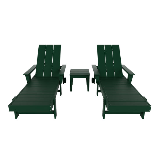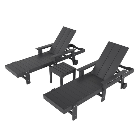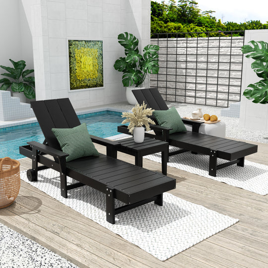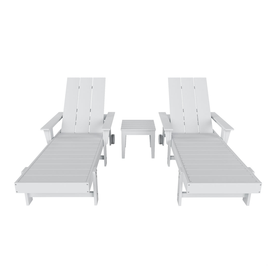 Ashore Modern Poly Reclining Chaise Lounge Set with Side Table