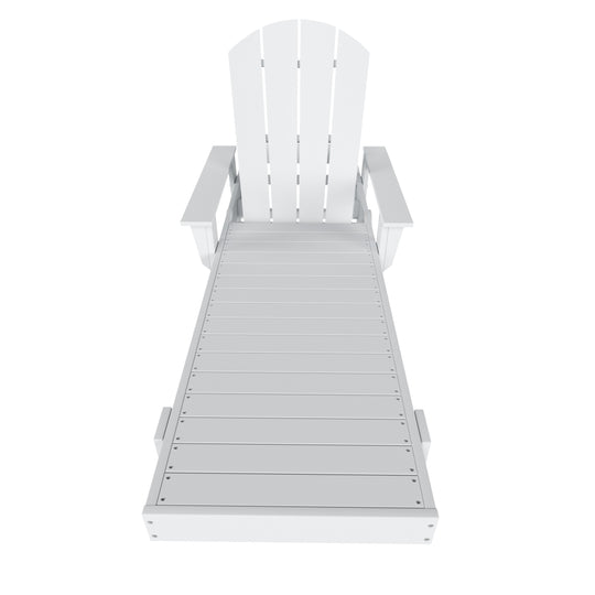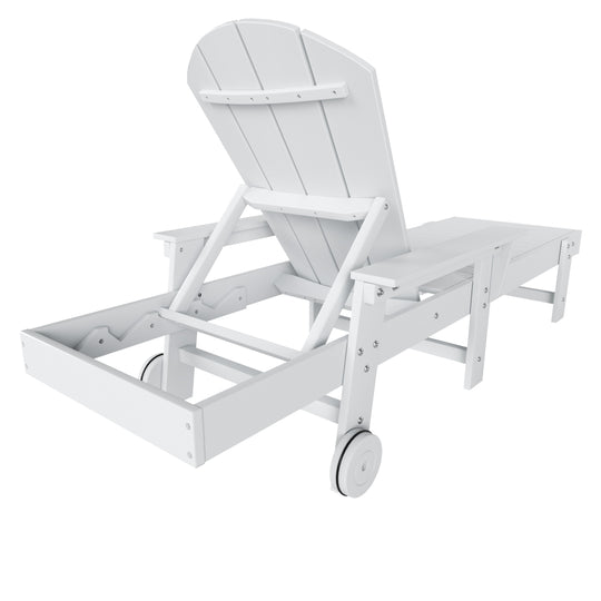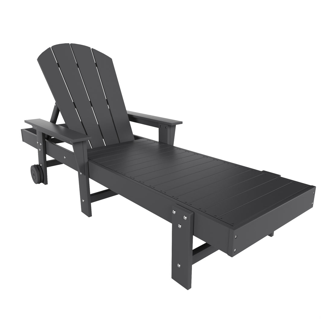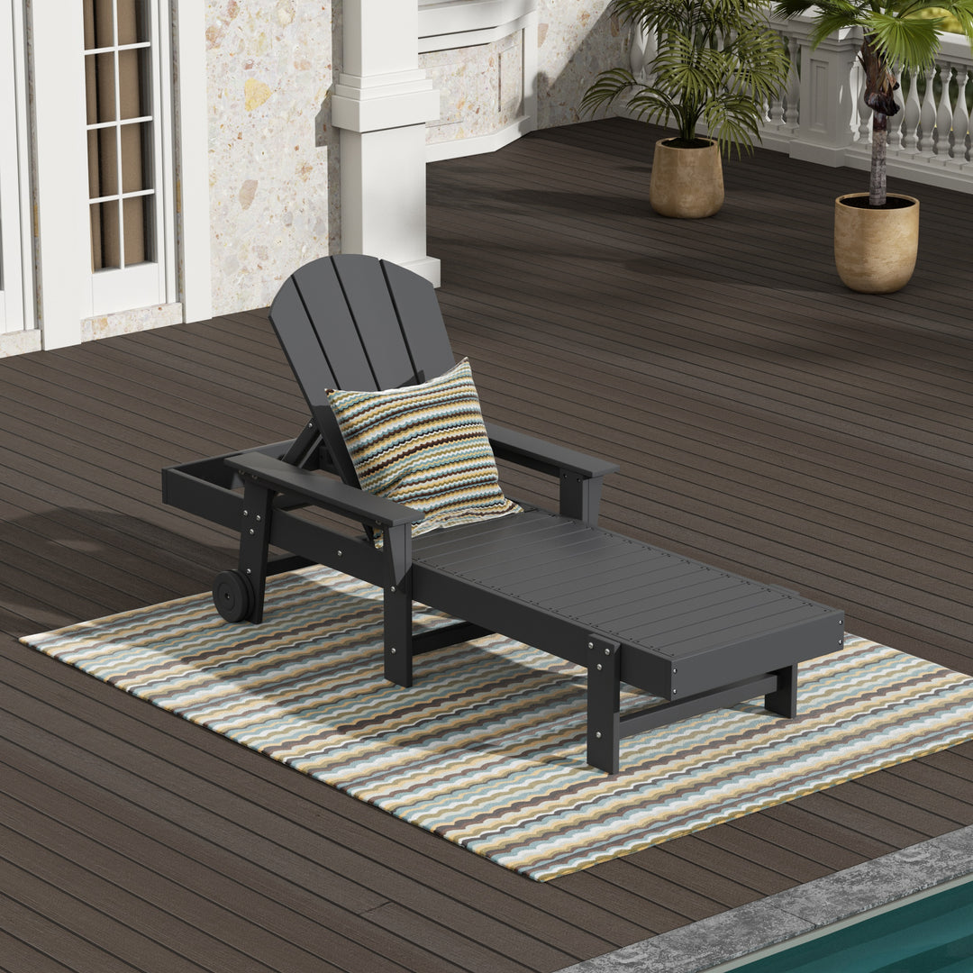 Lay by the poolside and catch a tan or read a book with this attractive reclining chaise lounger. Charming design with the classic Adirondack back that brings a piece of the beach with you and gives your backyard that refreshing feeling. Designed to make relaxing easy with the wide armrests and helpful wheels to make moving the lounger simple and without dragging and potentially scraping the lounger. Made with an eco-friendly HDPE material that is durable and perfect for the outdoors, the all-weather and UV-resistant material helps keep the lounger protected each season.
