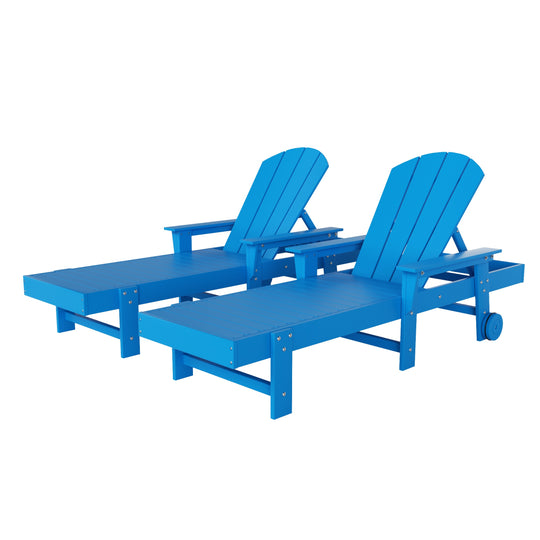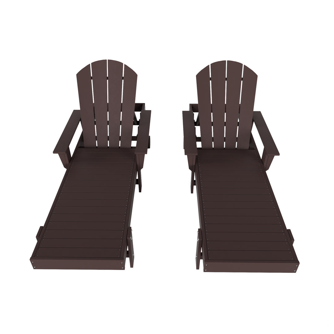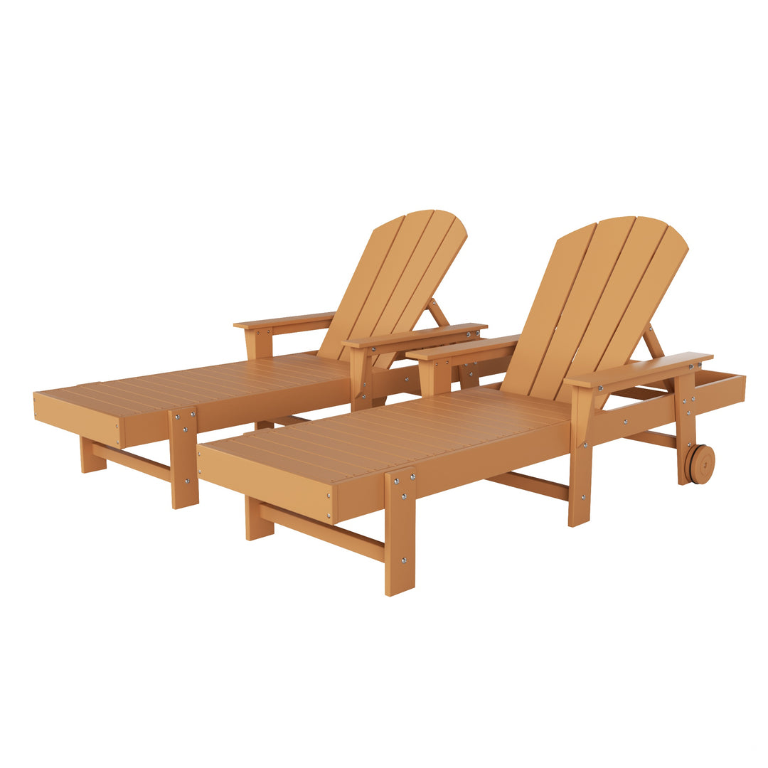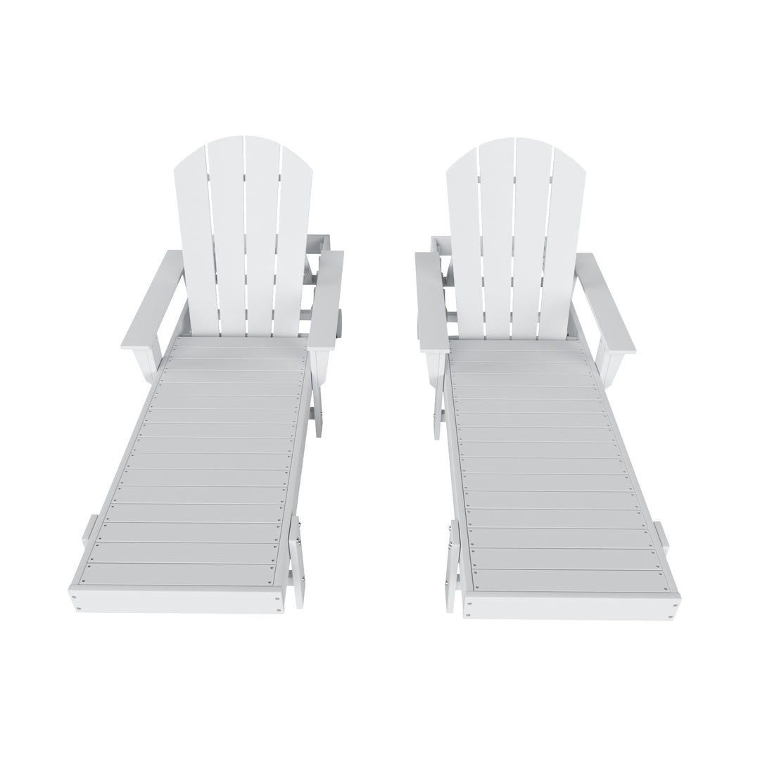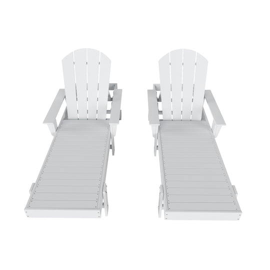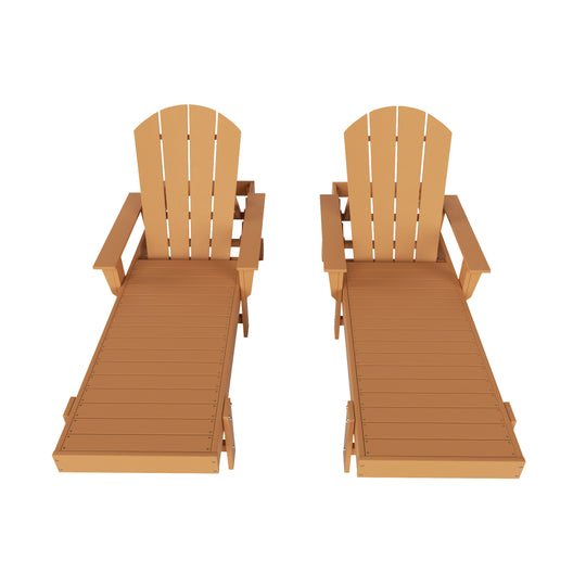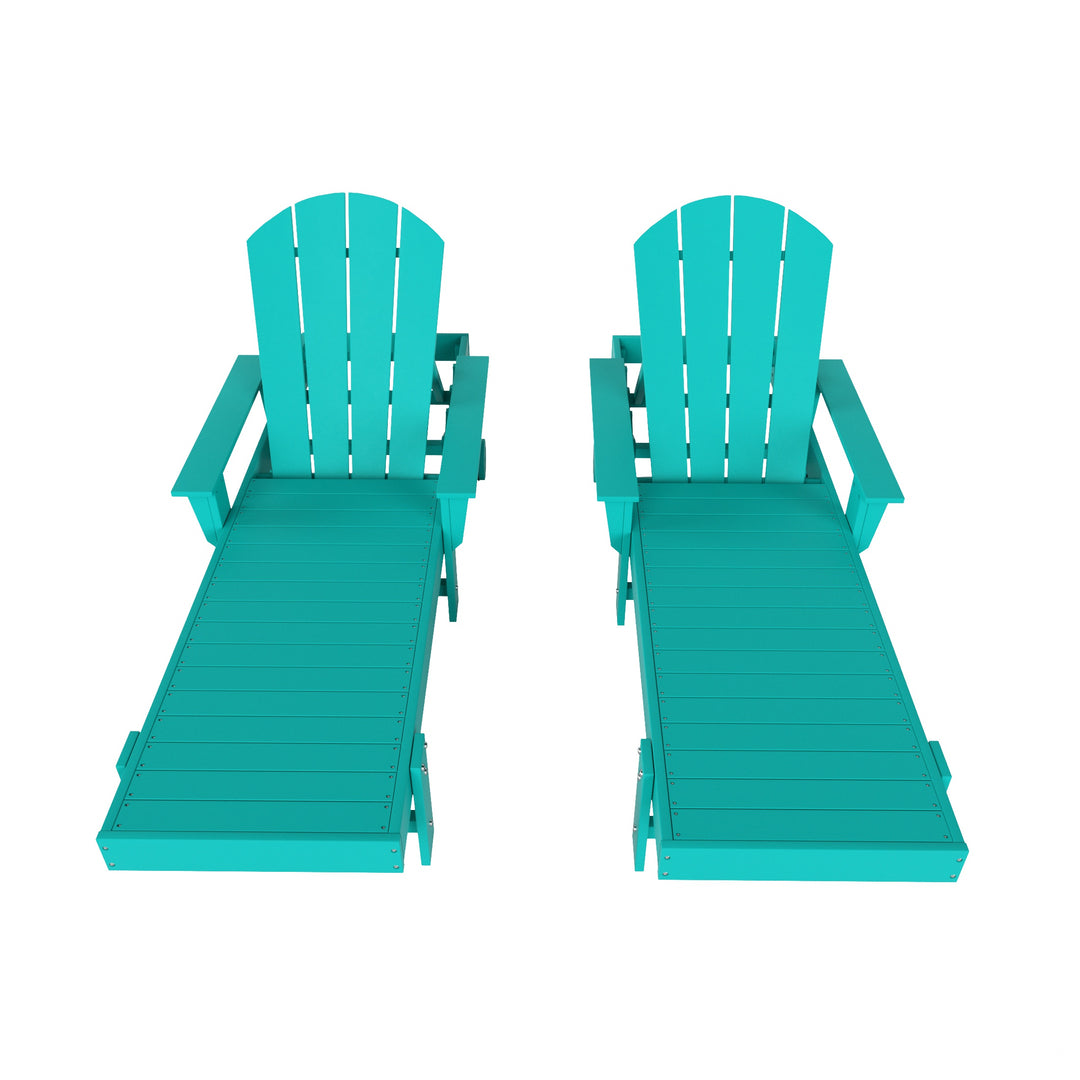 • Set of Two (2) Adirondack chaise loungers with wheels and armrests
