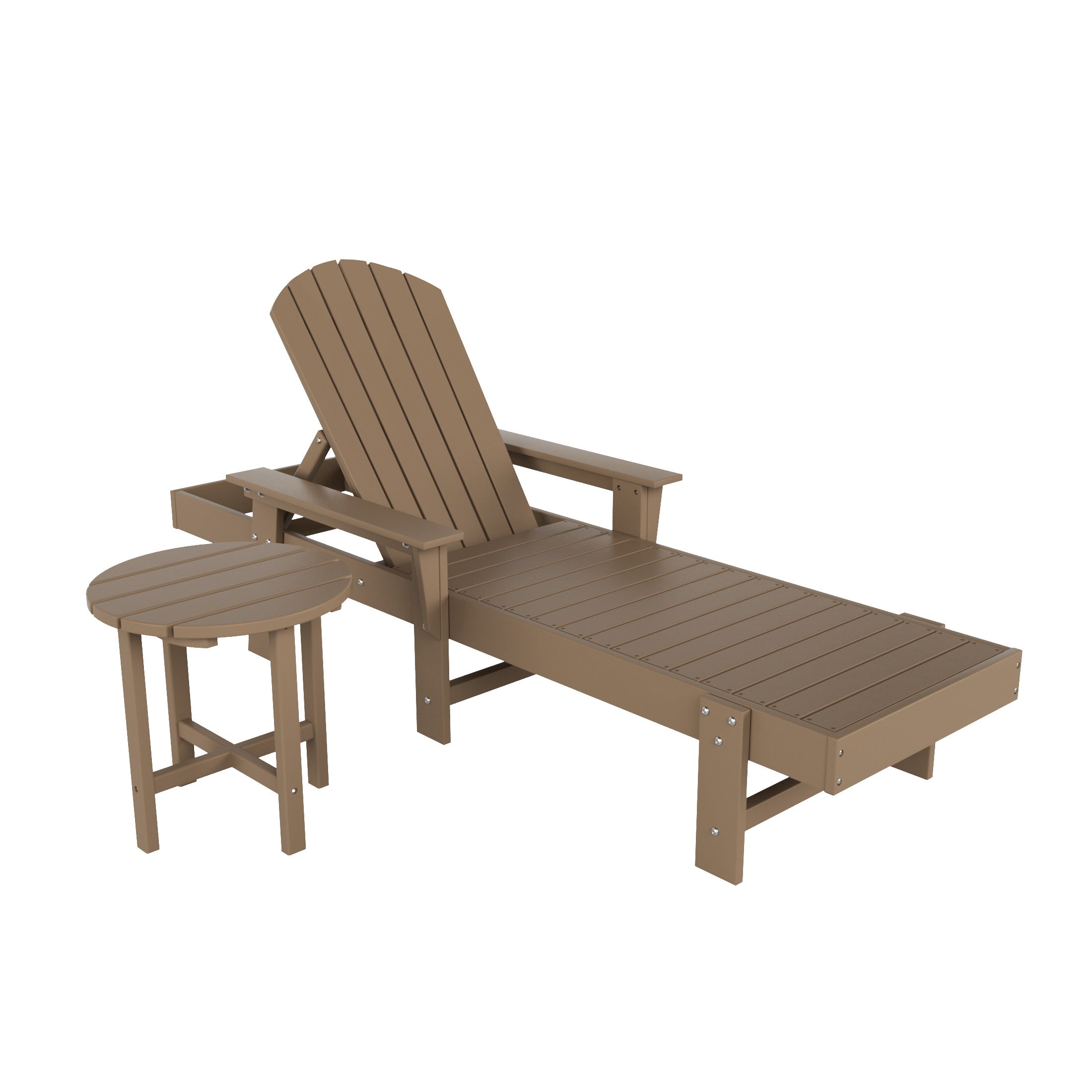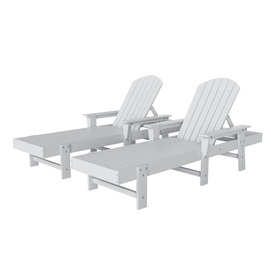 Lay by the poolside and catch a tan or read a book with this attractive 2-piece reclining chaise lounger set. Charming design with the classic adirondack backrest that brings a piece of the beach with you and gives your backyard that refreshing feeling. Spacious seating, wide armrests, and a slatted backrest make the perfect seat for relaxing. Made with an eco-friendly HDPE material that is durable and perfect for the outdoors, the all-weather and UV-resistant material helps keep the lounger protected each season.
