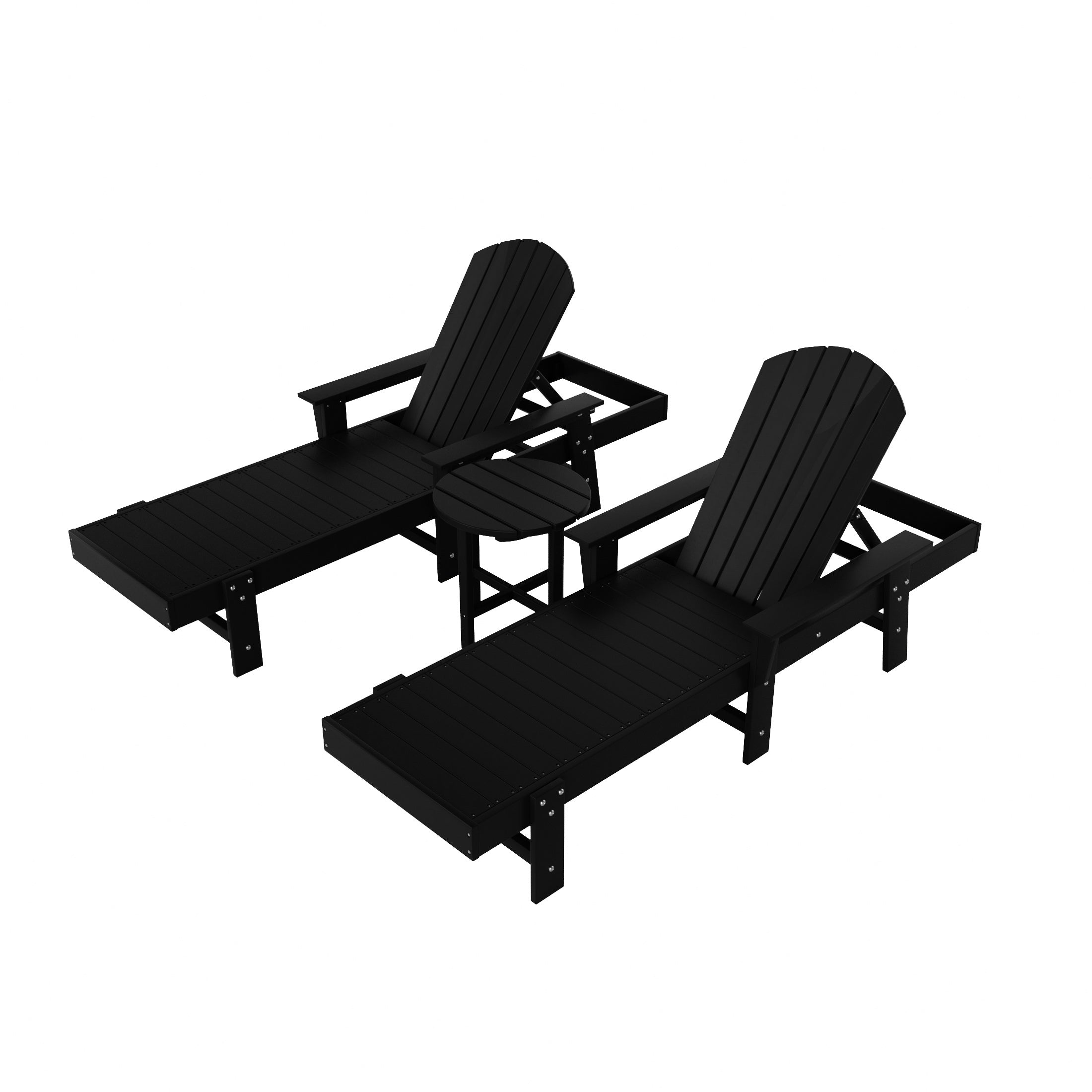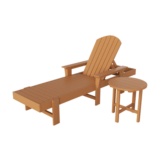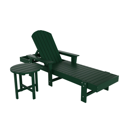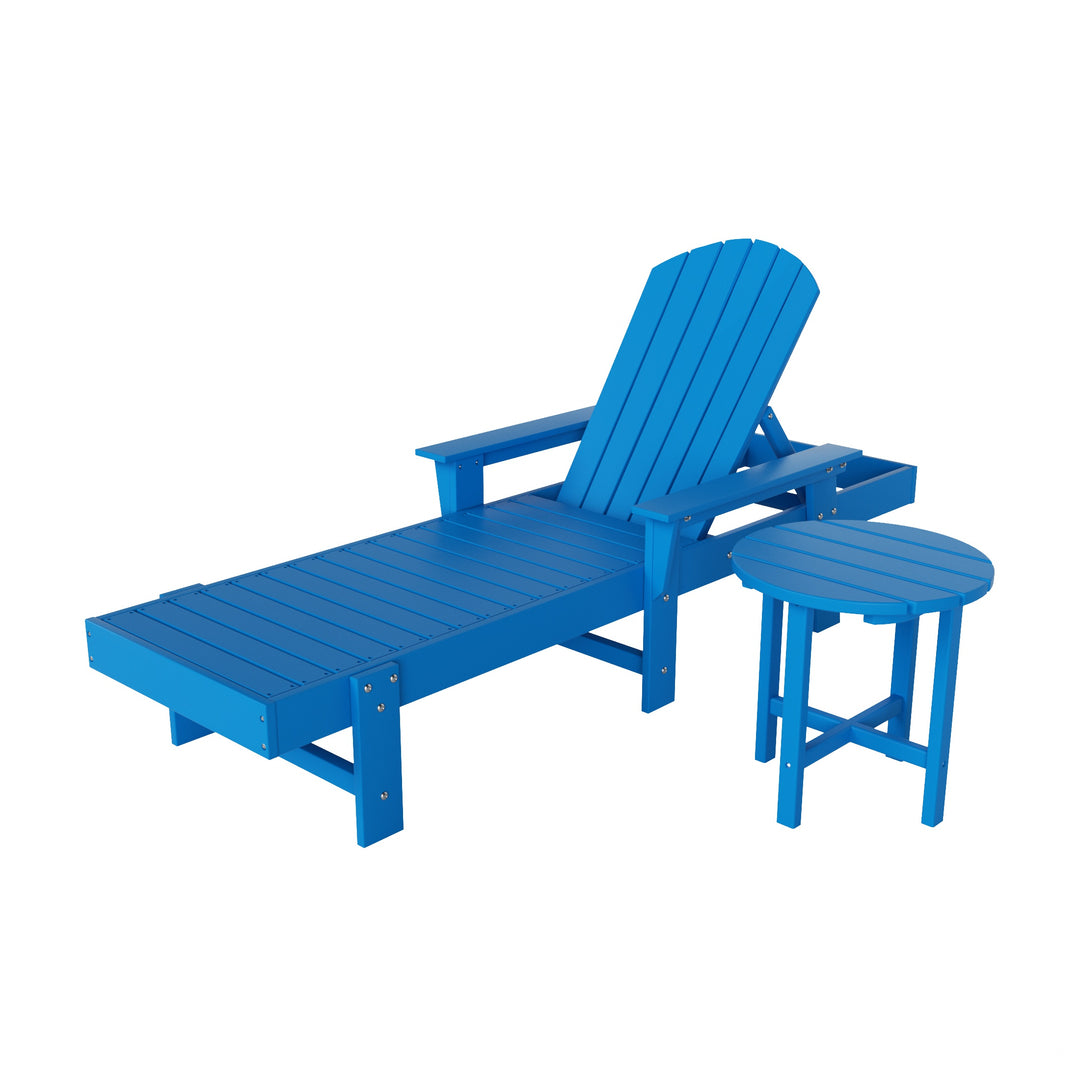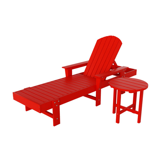 • Set Includes: One (1) classic Adironondack chaise lounger with arms and One (1) round side table