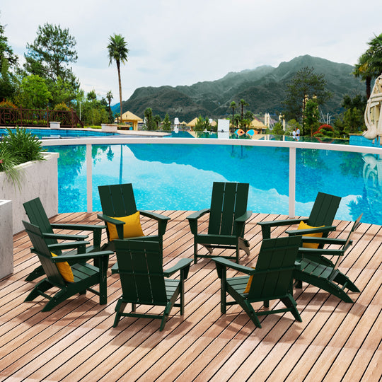 Ashore 8-Piece Modern Poly Folding Adirondack Chair Set