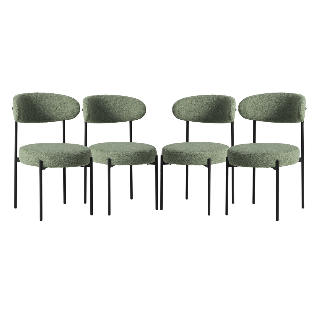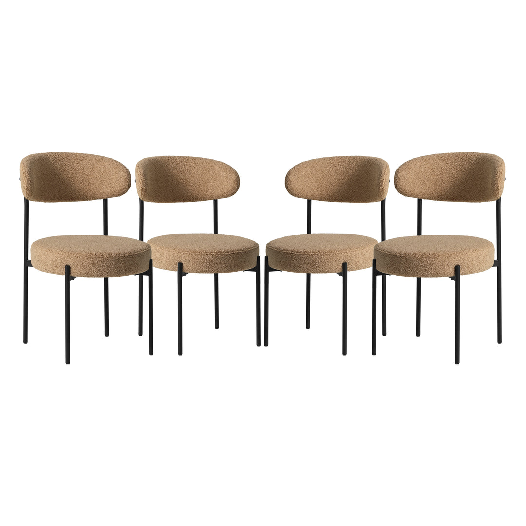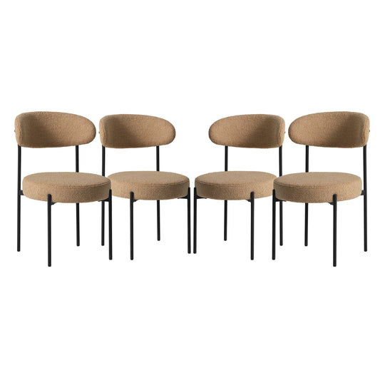 Turn your dining area into a place to be with our charming Mid-Century Modern Upholstered Sherpa Round Dining Chairs (Set of 4). These modern dining side chairs are the perfect addition for style and comfort, from their teddy-like sherpa fabric that gives a boucle dining chair look to the soft foam-filled seat cushion for comfort. With a wide range of colors to choose from, these dining chairs have a variety of colors to choose for your dining room, maintaining a charming and comfortable feel with the soft foam filled seat cushion that adds comfort all day.