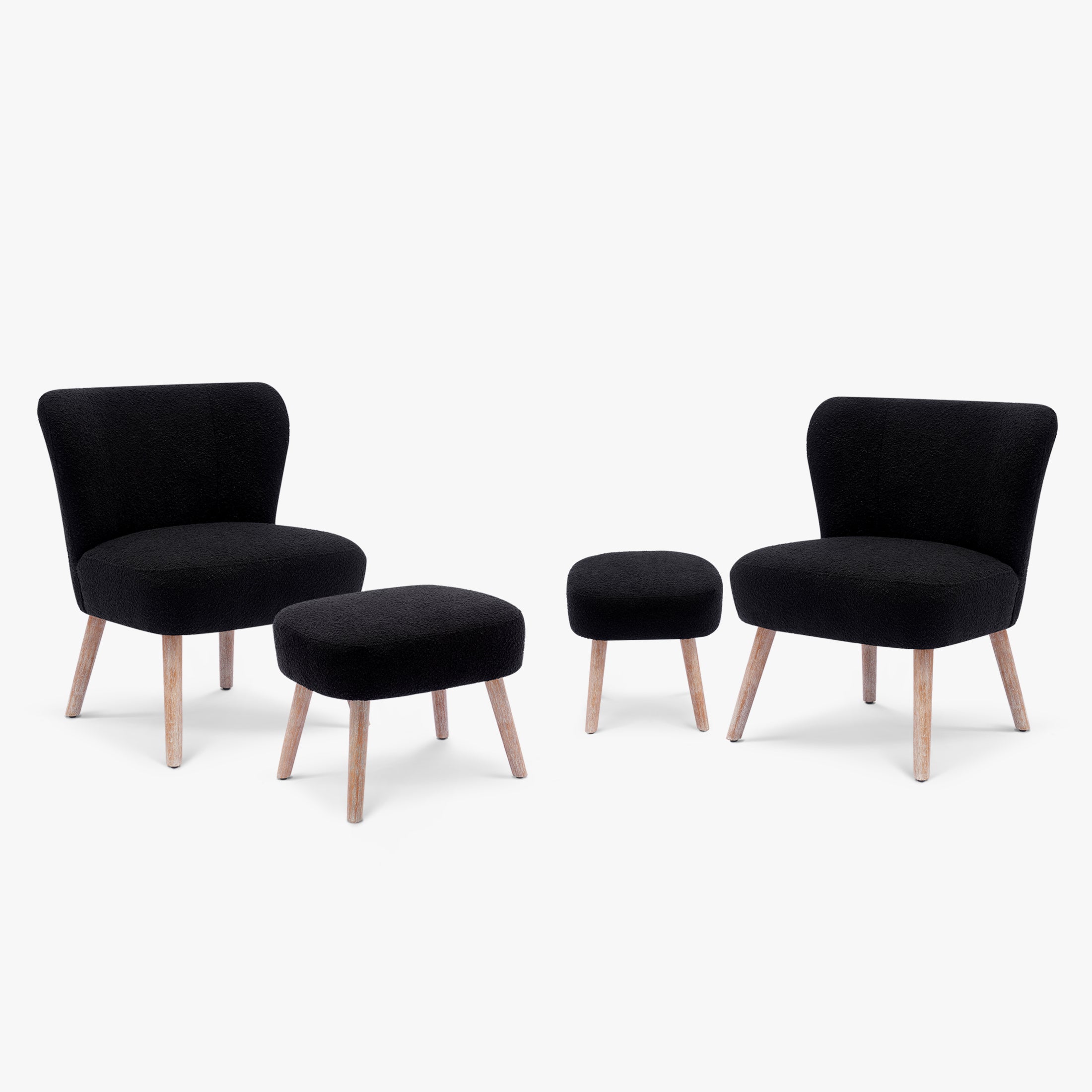 • Set Includes: One (1) Boucle Accent Chair, One (1) Boucle Ottoman Footstool