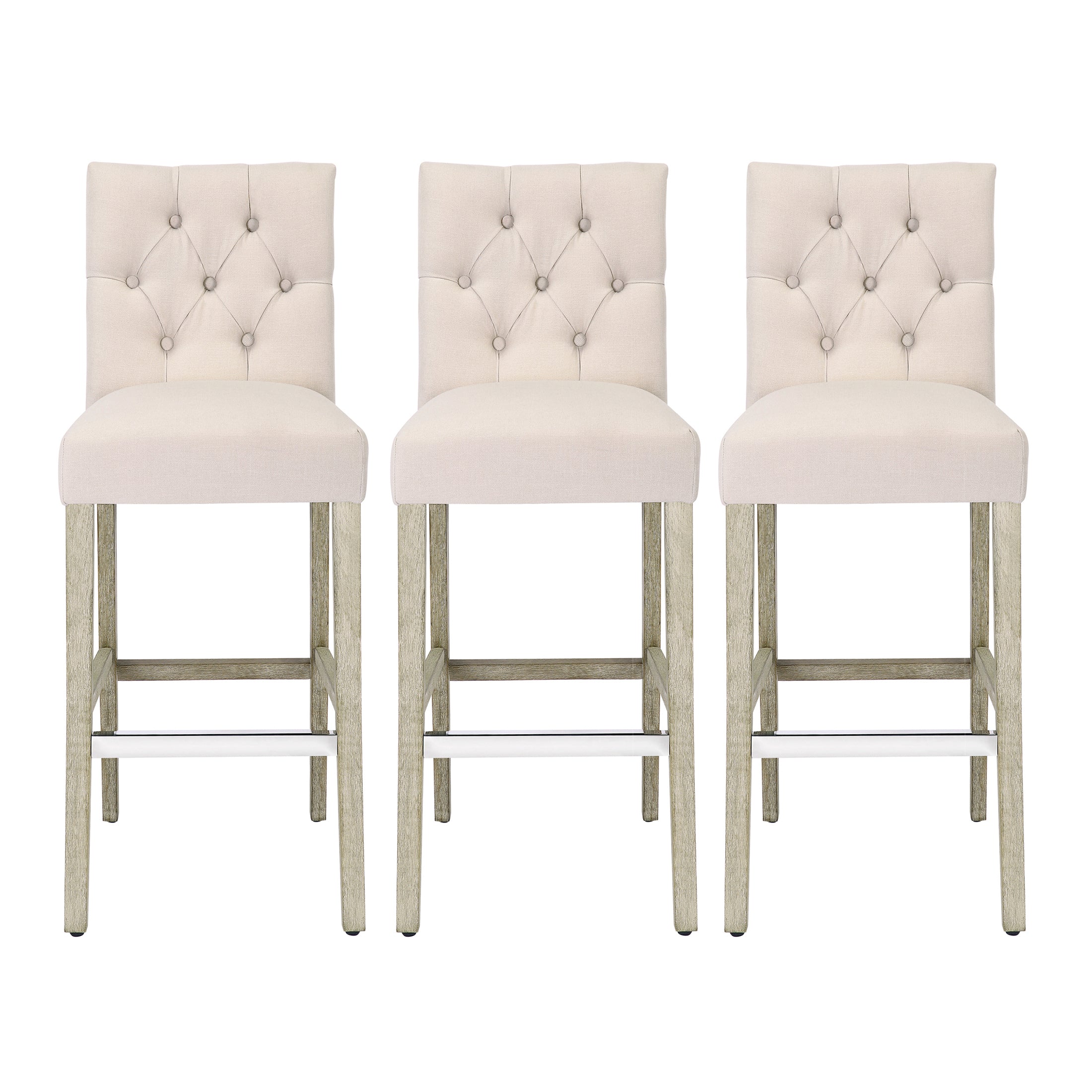 Hayes 29" Linen Fabric Tufted Bar Stool (Set of 2), Antique Gray