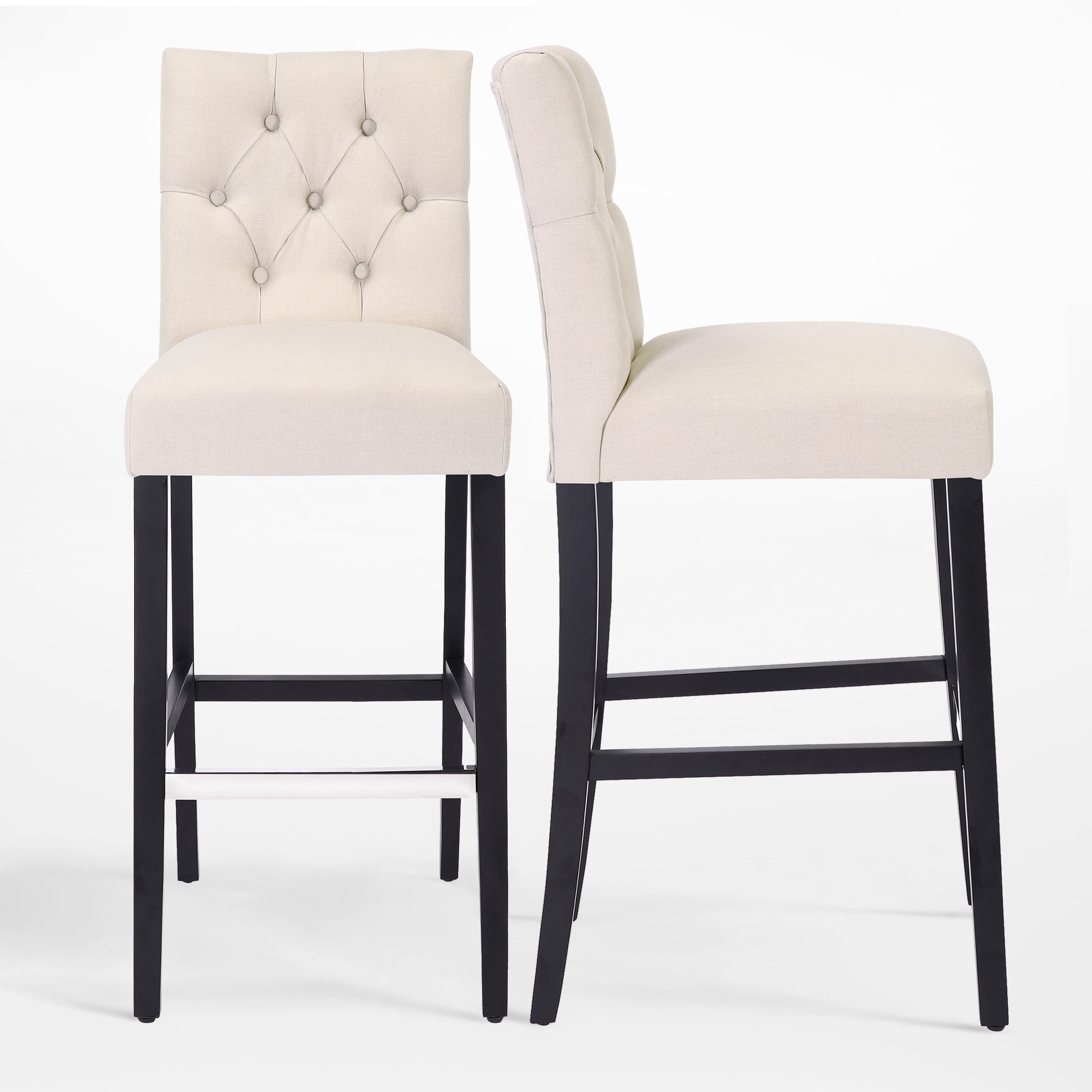 Whether you are inviting guests over or just sitting down with your family, this set of four wooden dining chairs brings a classic Mid-Century feel to any home. Featuring elegant curves and iconic splayed legs, these linen upholstered dining chairs provide you and your guests with comfort and long-lasting durability. These linen-upholstered wooden chairs are easily paired with most home décor styles. Some assembly is required.