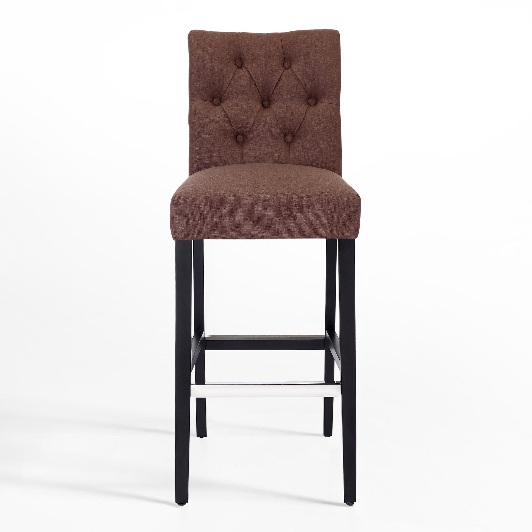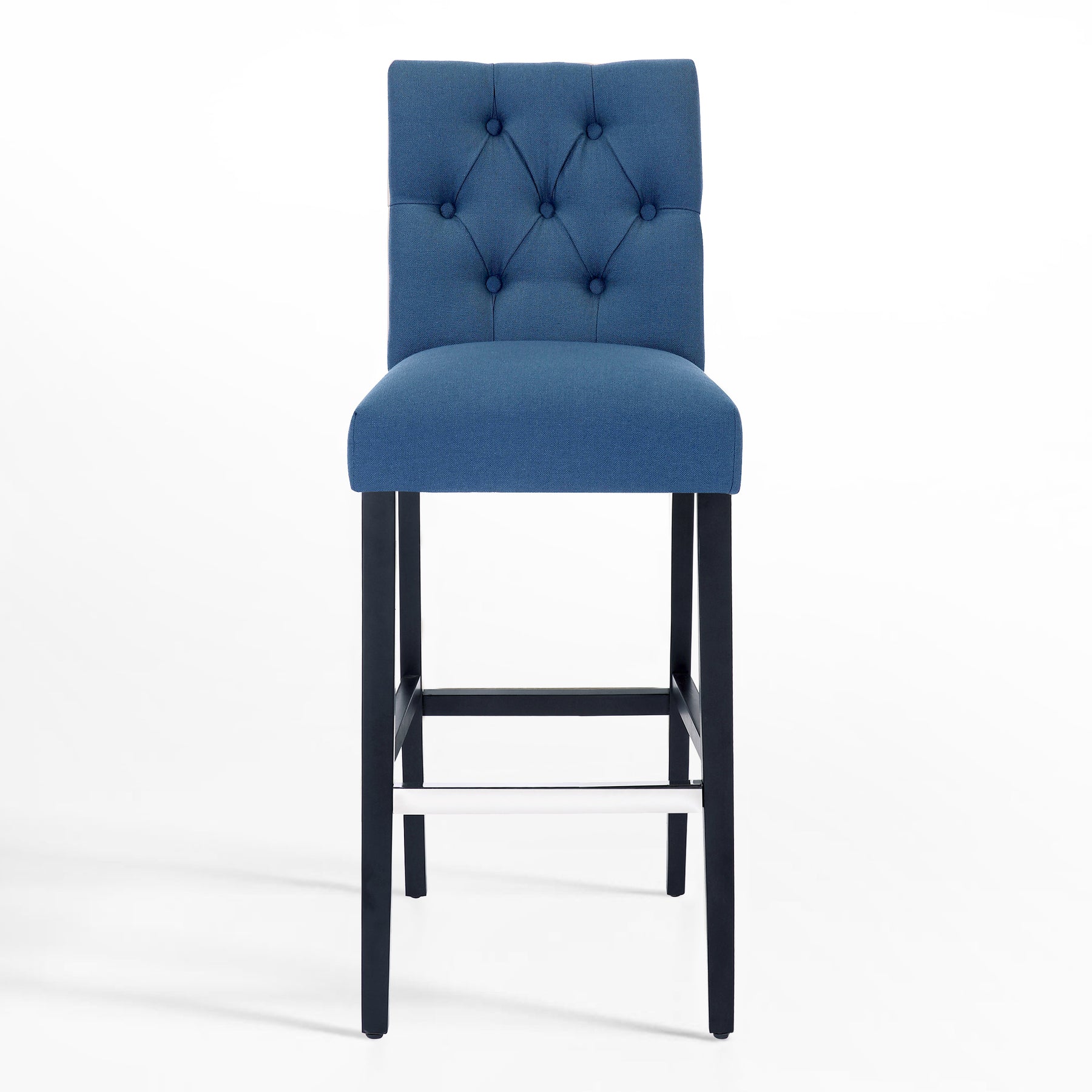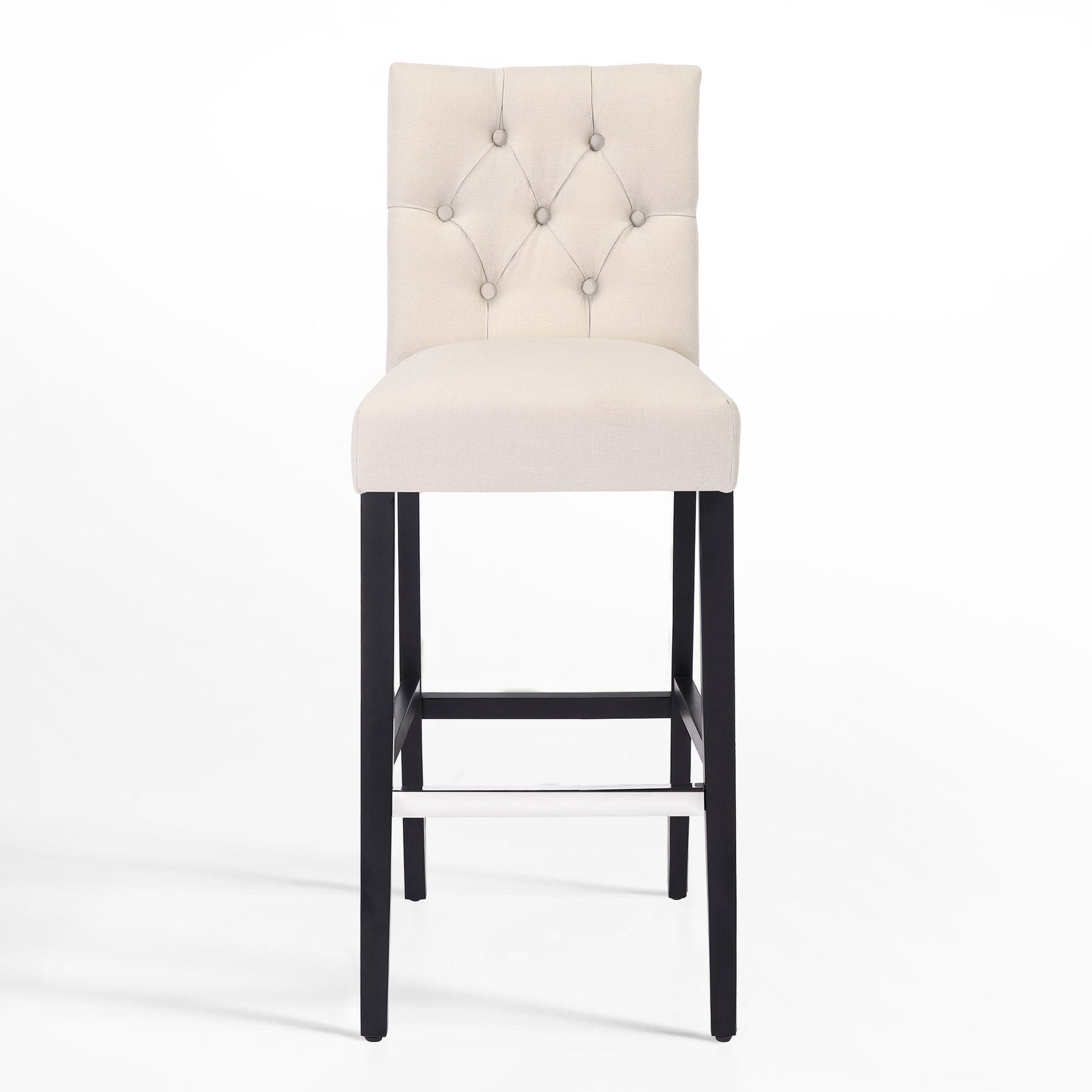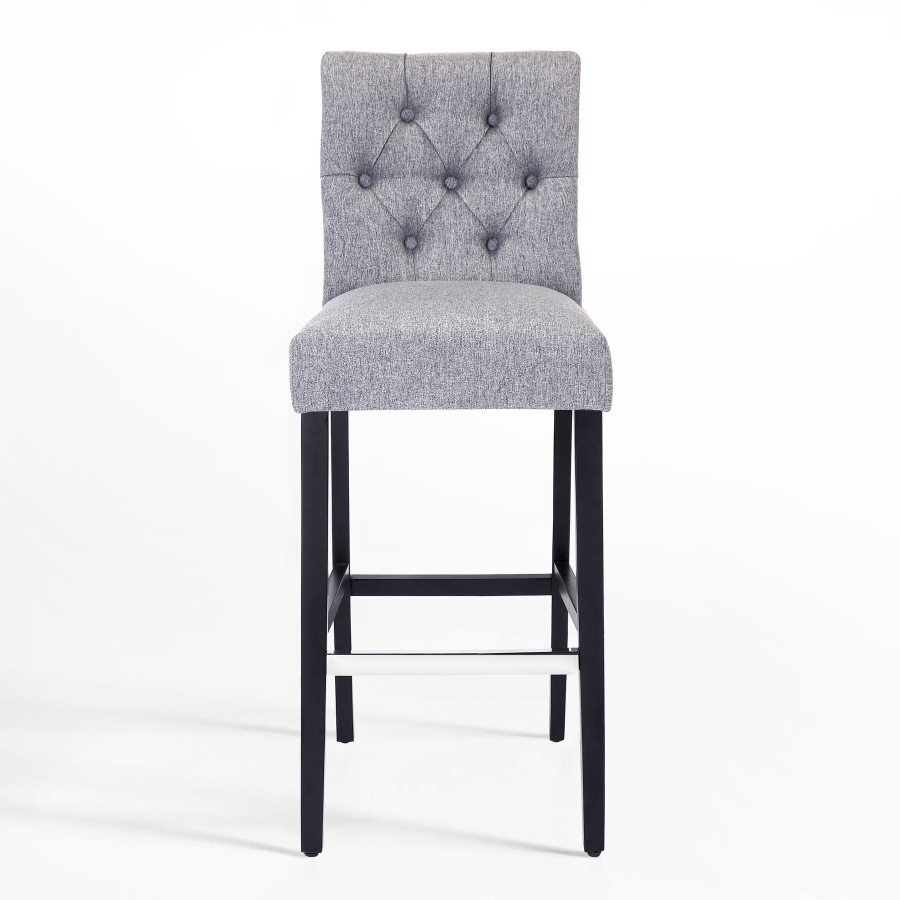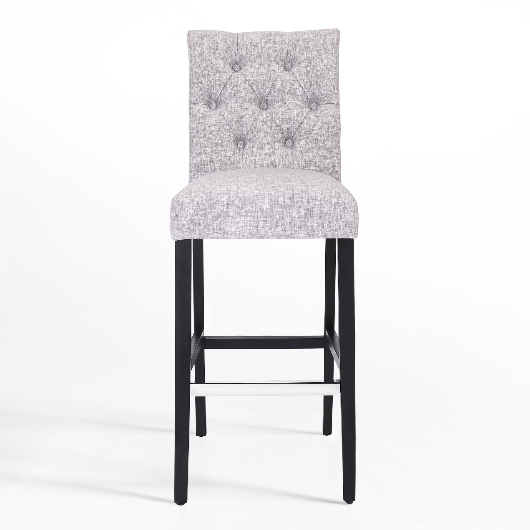 Make your kitchen island more comfortable and eye-catching with this solid wood bar stool. Featuring dense foam padding, sinuous spring support, and soft poly/linen-style fabric upholstery, it's the perfect stool so you can relax in comfort. The full-back seat is wrapped in fabric, while button details along the seat back complete the design with a dash of distinction. The provided silver metal footrest is an optional form of protection from scuffs and scratches.
