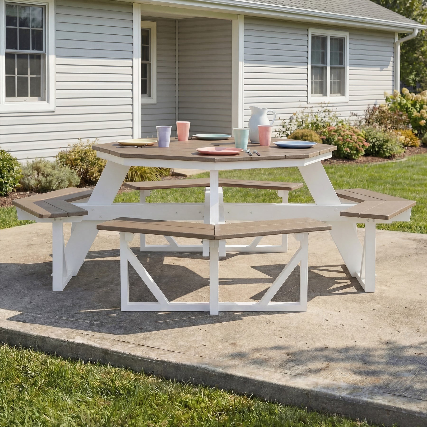Greenville Outdoor 48" HDPE 8-Person Patio Octagon Picnic Table
