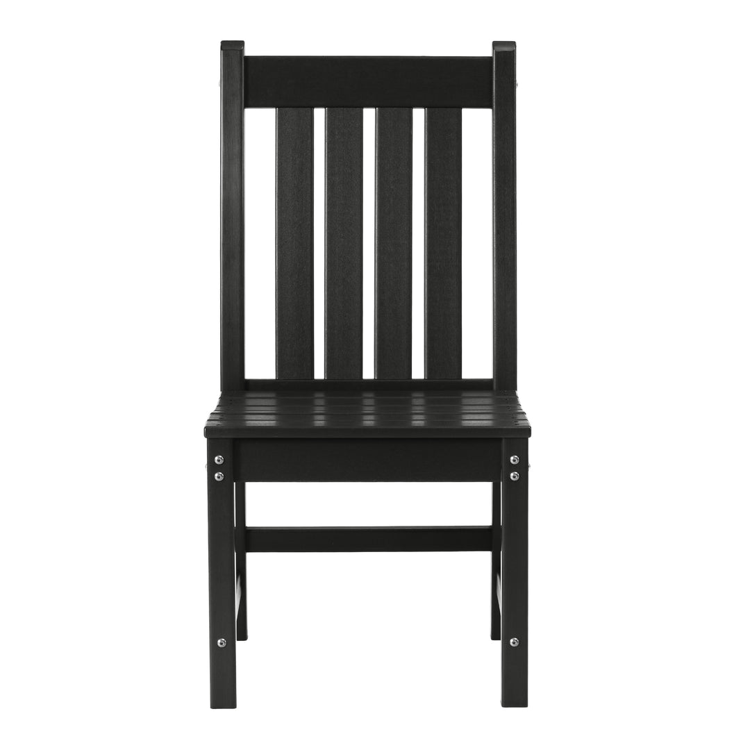 High-density polyethylene, or HDPE, is a popular choice for outdoor dining chairs. This recycled plastic resists fading, moisture, and pests without needing paint or stain.