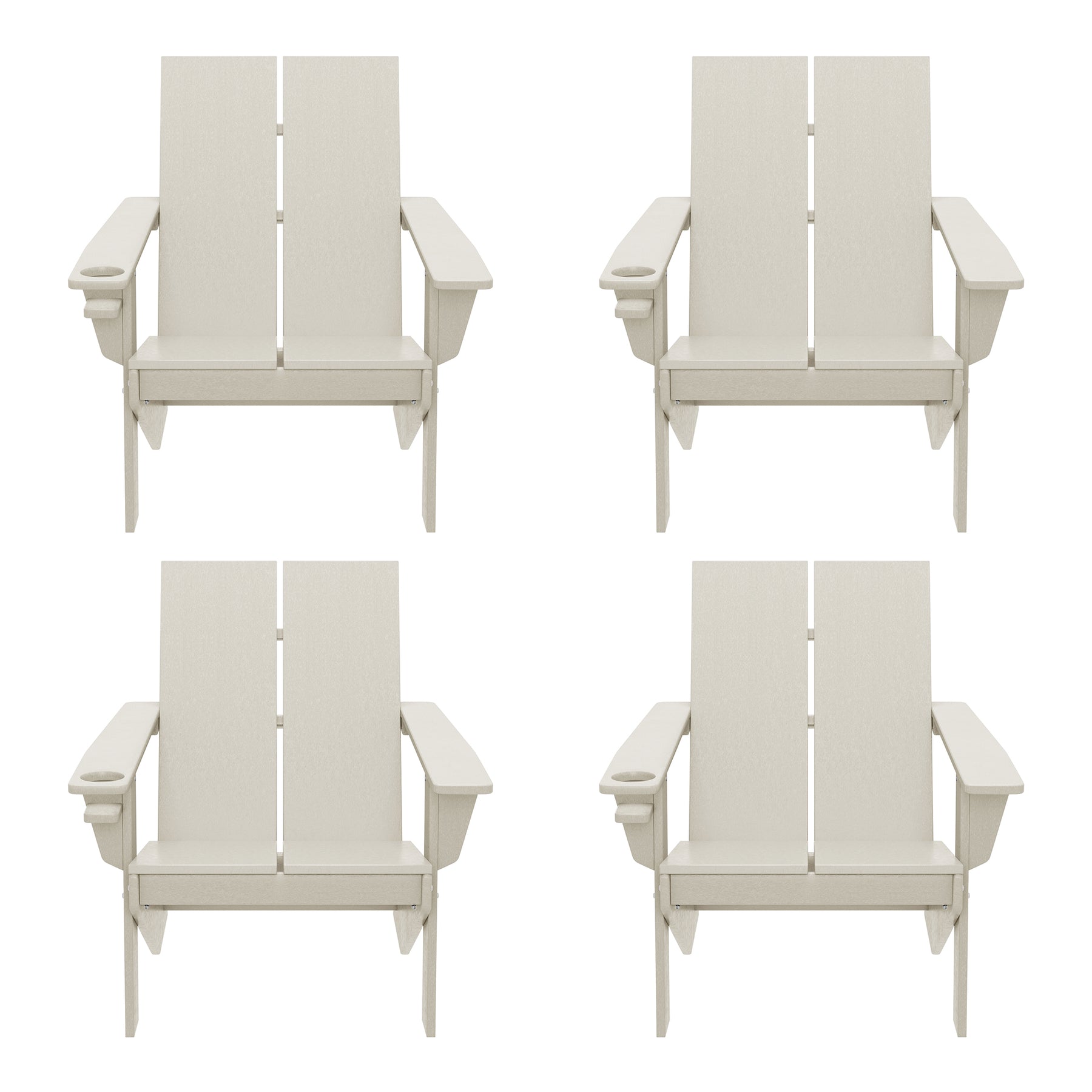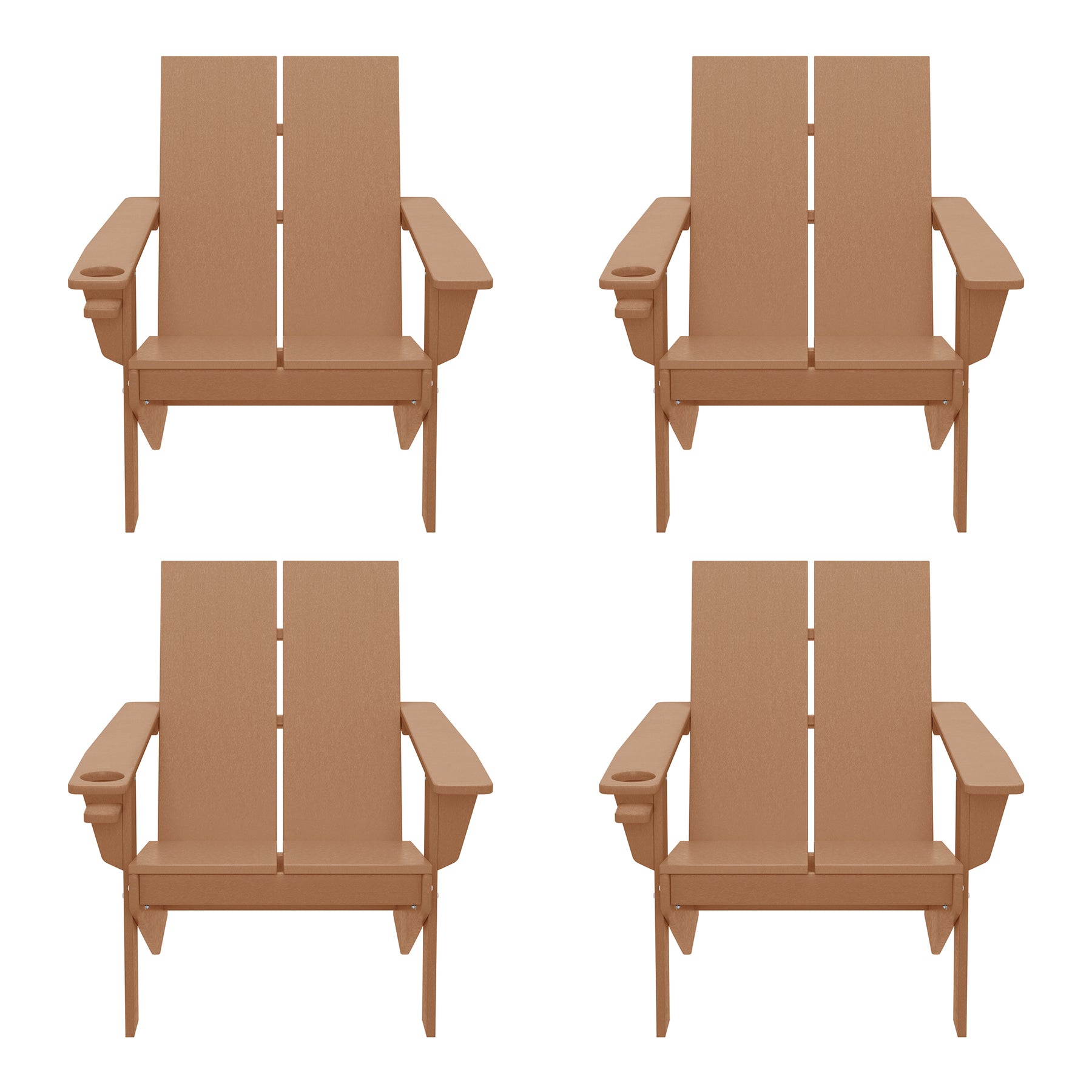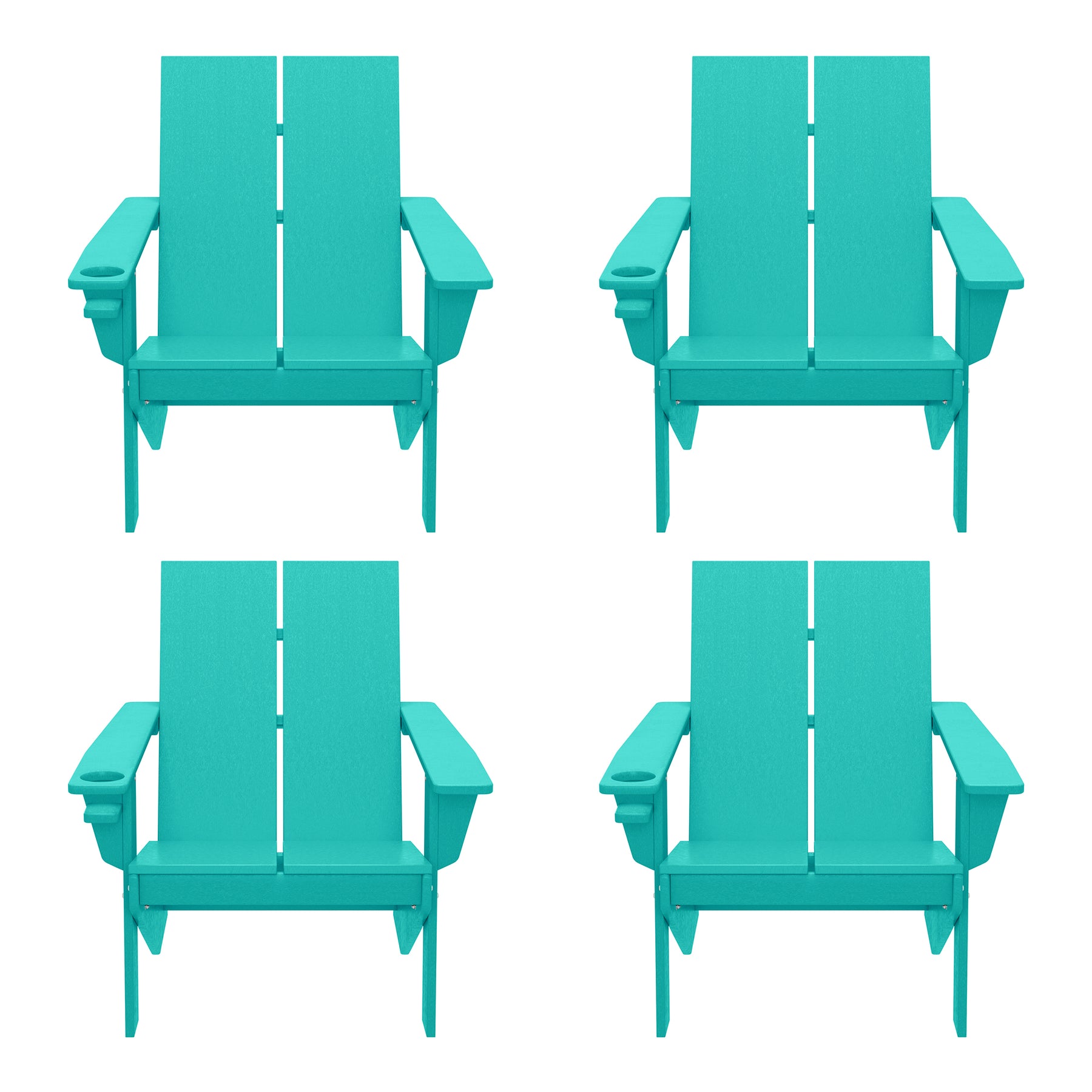 • Set of Four (4) Modern Adirondack Chairs with Built-in Cup Holders
