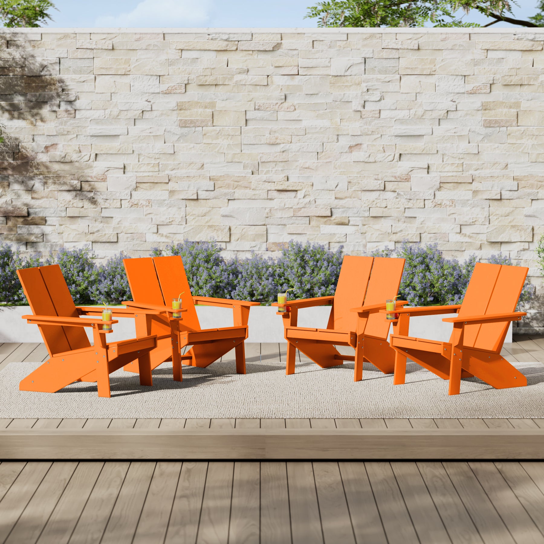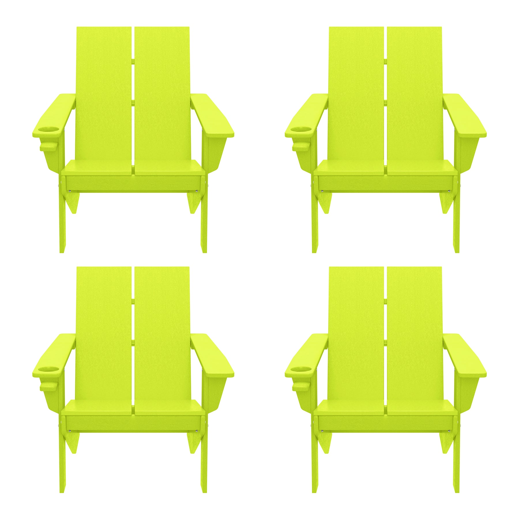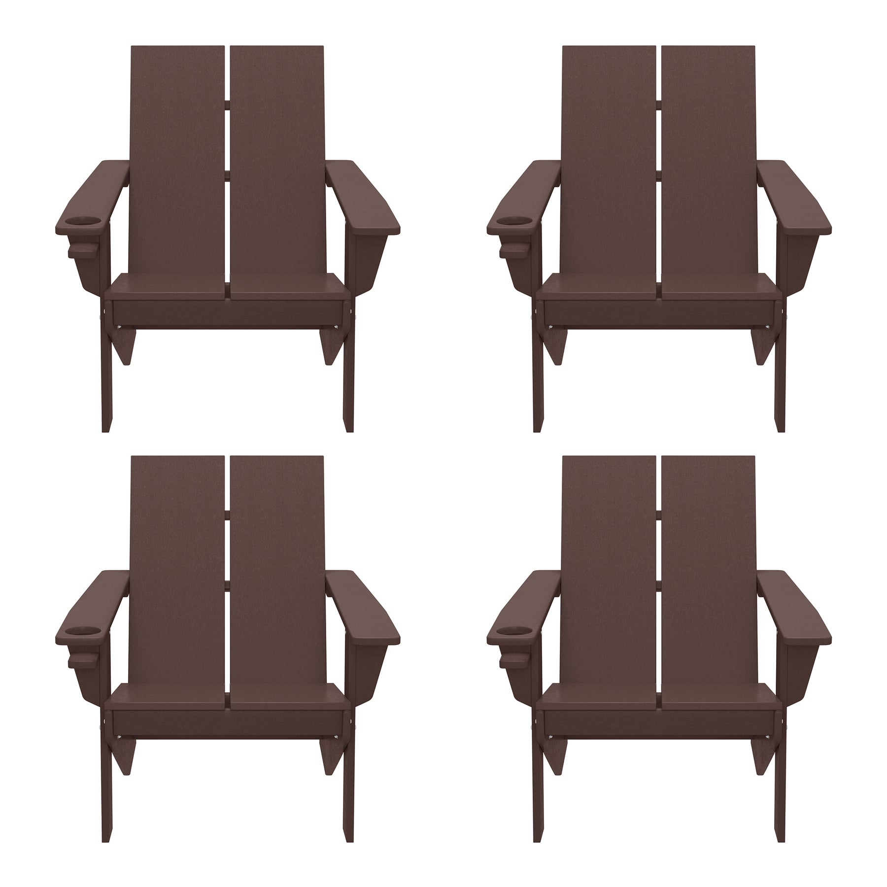 • Set of Four (4) Modern Adirondack Chairs with Built-in Cup Holders