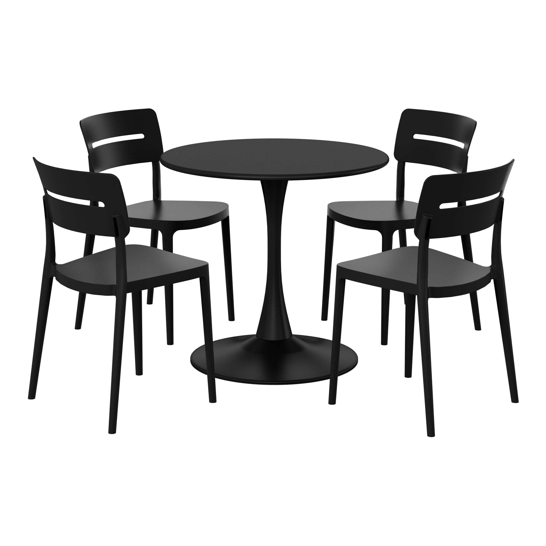 • Set Includes: One (1) 31.5" Patio Dining Table & Four (4) Stackable Patio Dining Chairs