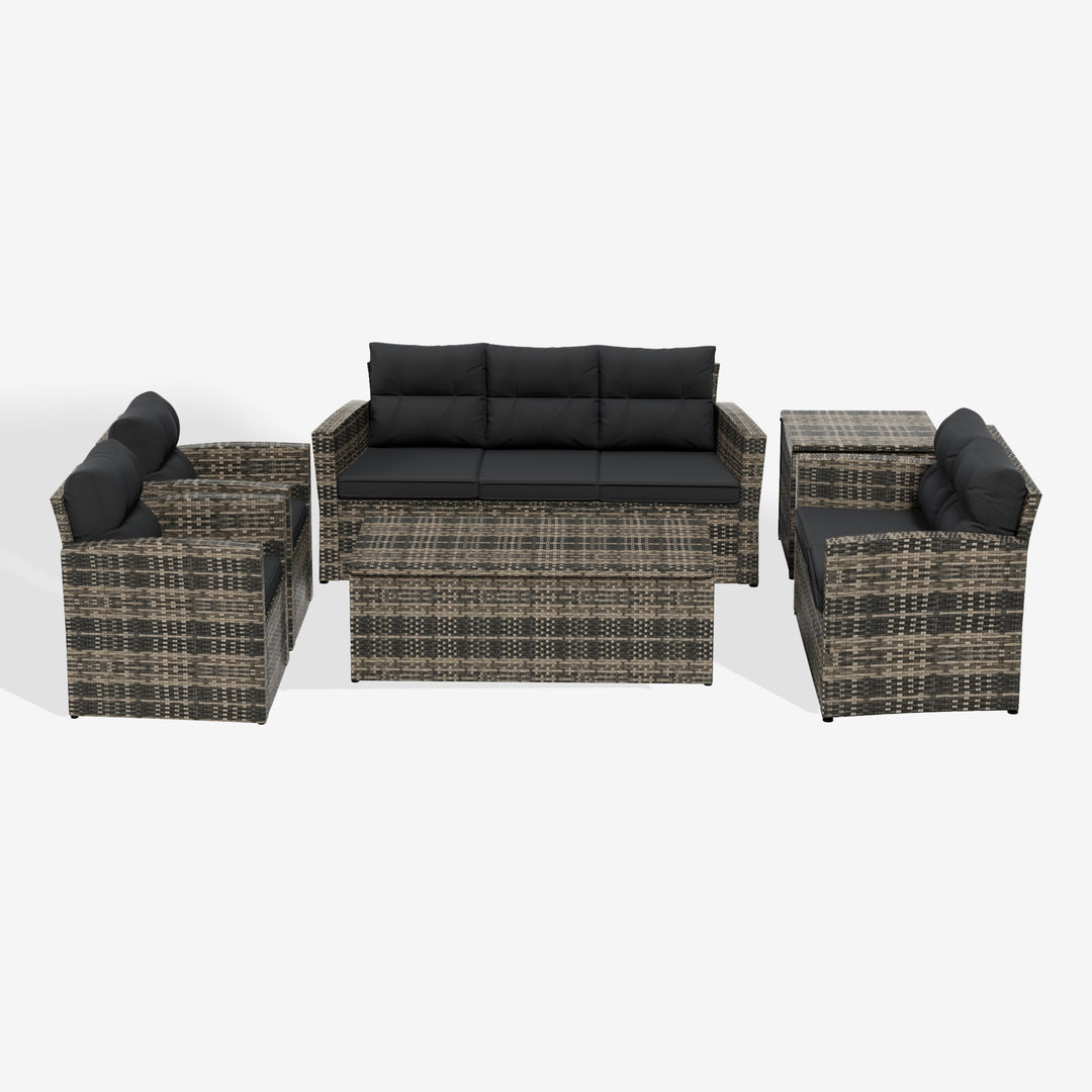 Bronx 6 Seating Outdoor Wicker Rattan Conversation Sofa Set with Storage Ottoman
