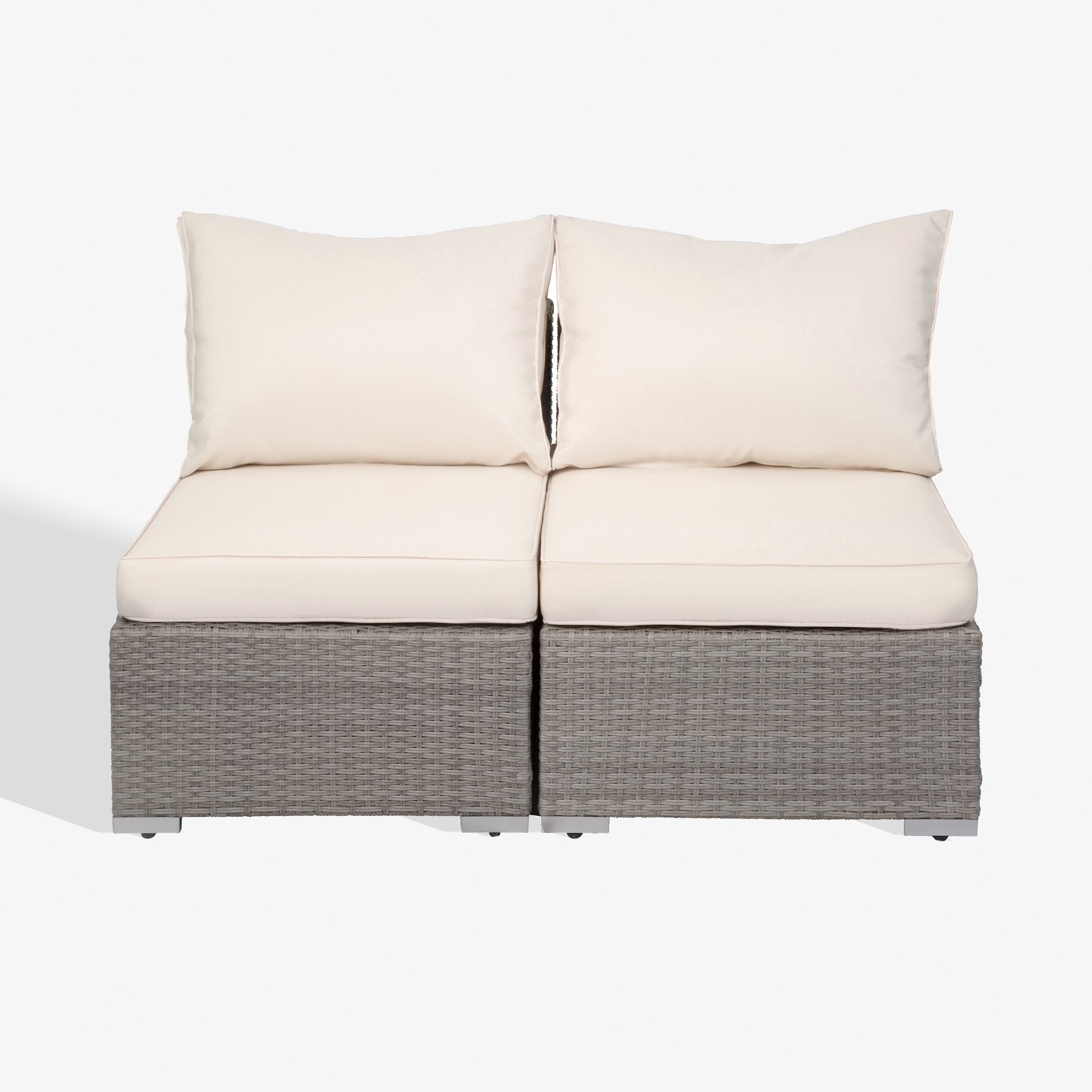 Take your backyard from a bland and boring area to a place of glamour with this attractive and modern 4-piece outdoor patio set. The set is made with environmentally friendly PE rattan that is woven into a beautiful wicker design and is resistant to weather and UV rays. Sit in comfort with the sofa's plush 3-inch polyester cushions filled with a high-density sponge that adds comfort but also springs back to its original shape, keeping the cushions looking brand new all year long. This patio set is perfect to relax with friends and family and will bring comfort and relaxation for hours.