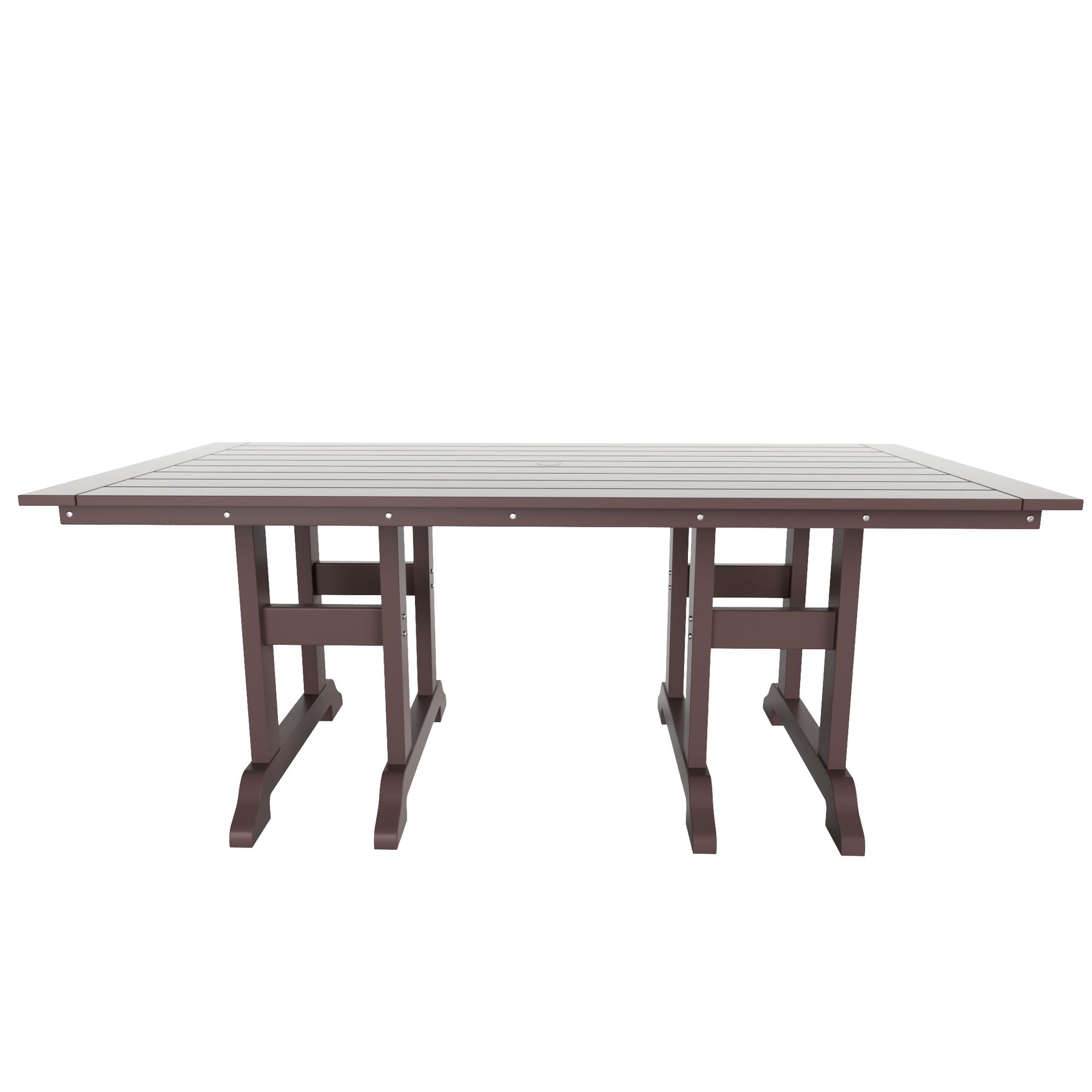 • Set includes: Four (4) Adirondack dining chairs, One (1) rectangular dining table, and One (1) Trestle bench