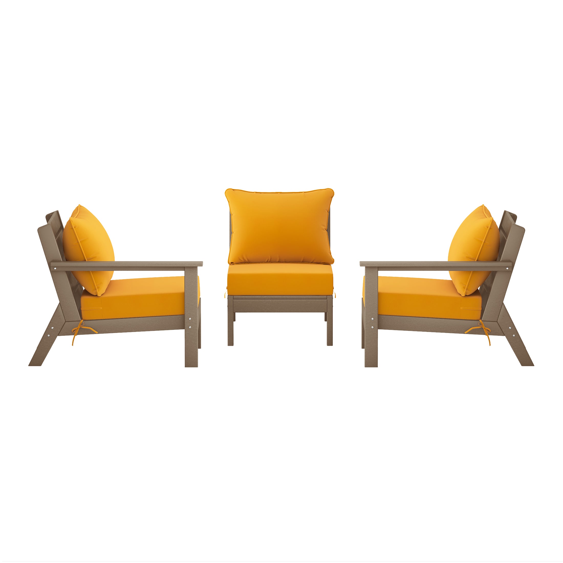 Introduce a touch of contemporary artistry to your patio with this deep-seating outdoor l shaped outdoor patio couch, designed to create lasting moments of outdoor relaxation. This modular patio furniture sofa has a sculptural frame, crafted from durable, UV and fade-resistant polypropylene resin, brings a modern, nature-inspired element to your space with its distinctive palm leaf pattern. Sink into plush, high-density foam cushions that offer unparalleled comfort and support, maintaining their shape and resilience through seasons of use. The removable, machine-washable covers, featuring easy-access zippers, ensure effortless upkeep. With a generous 82.5" x 27.5" wide and deep seat, this modern patio couch set invites you to unwind and savor your outdoor retreat. Its thoughtful design and enduring materials make it a focal point for modern al fresco living.