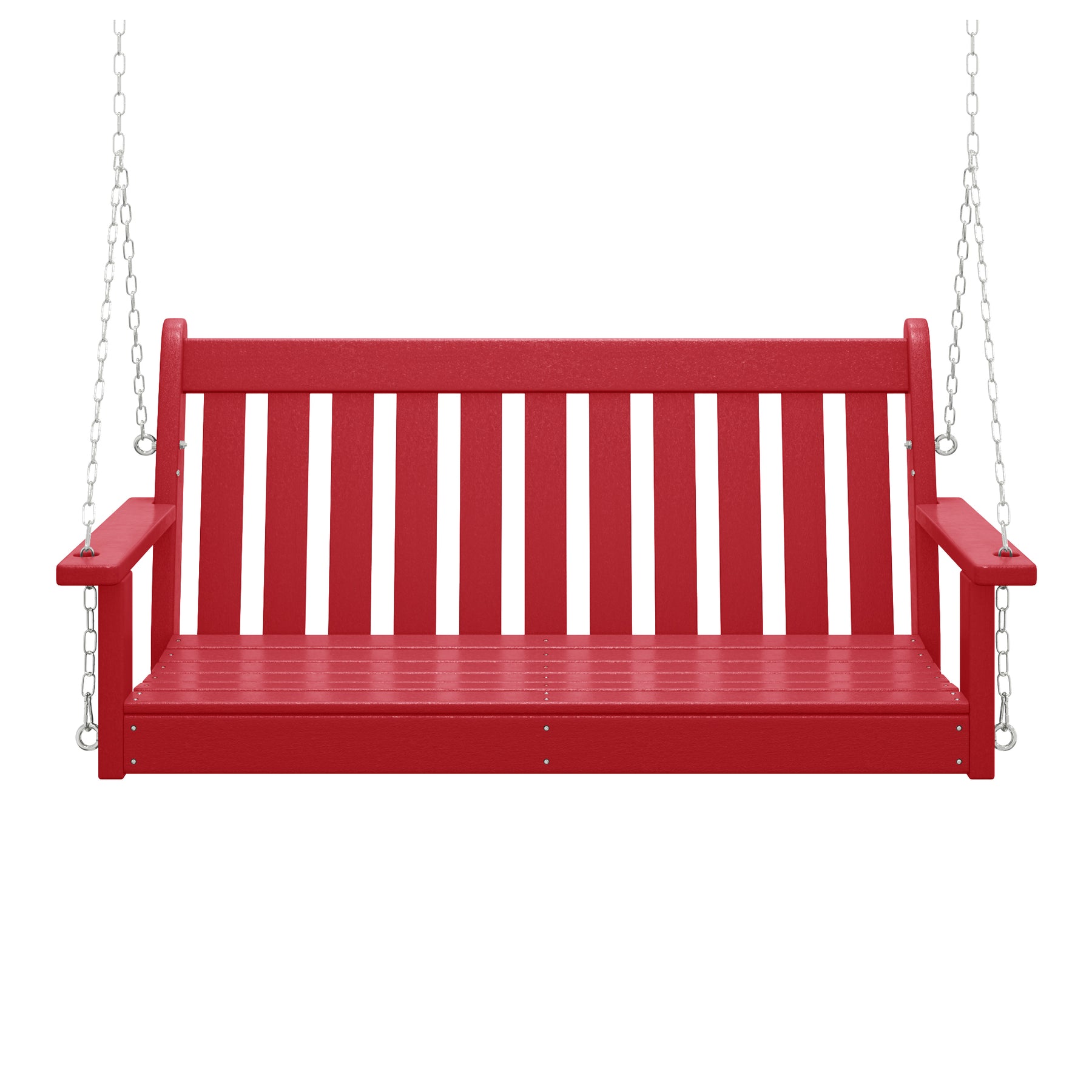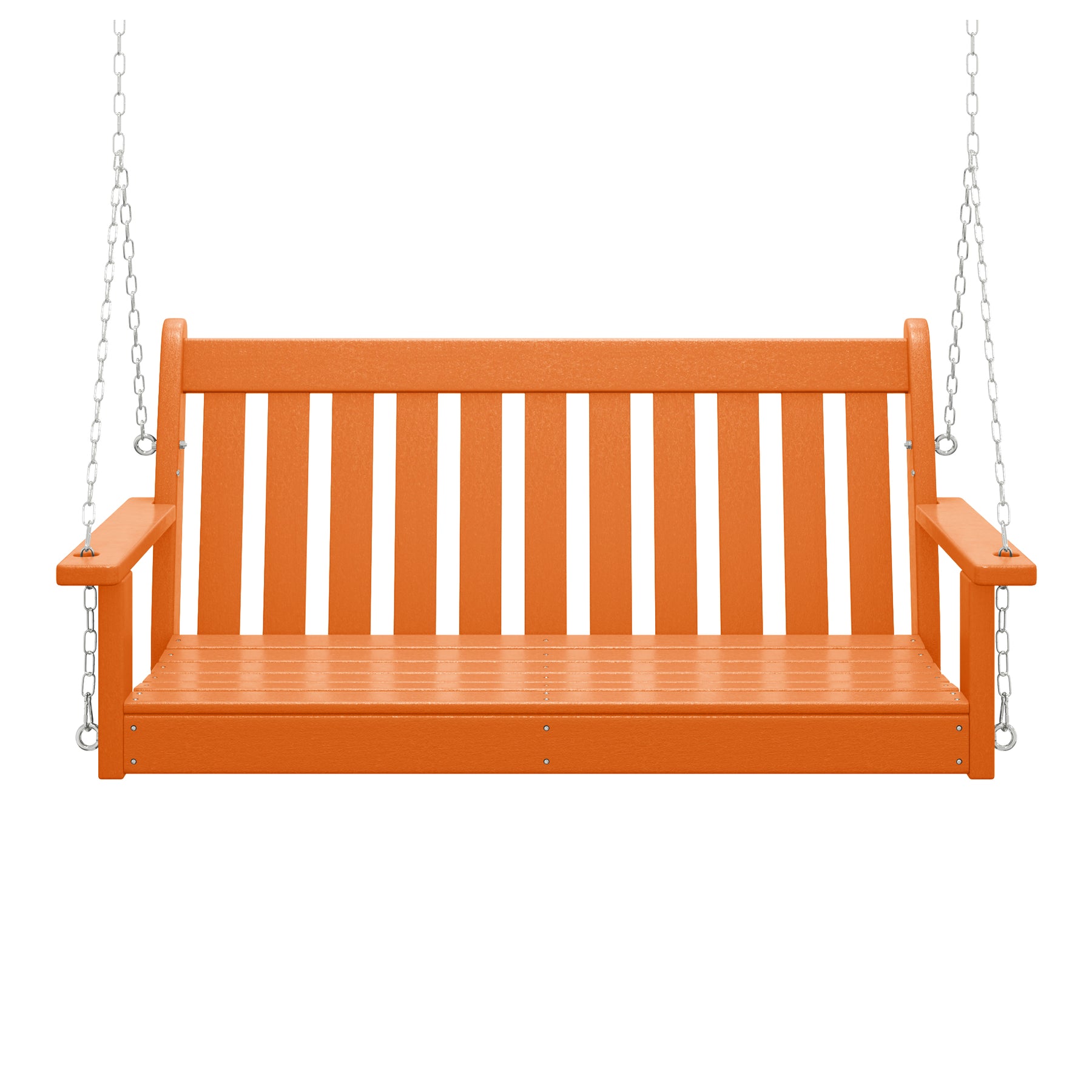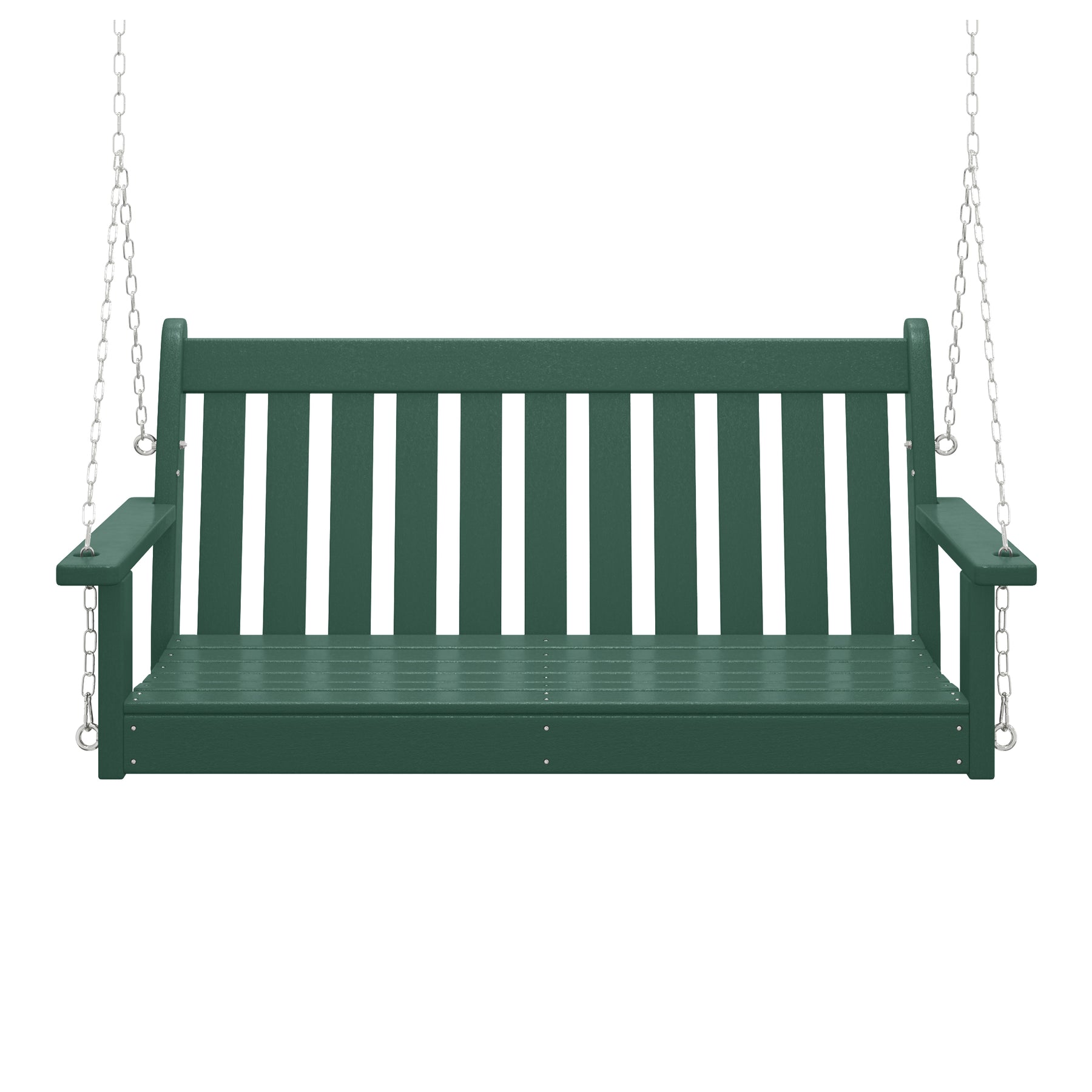 Relax on our charming 50-inch wide outdoor HDPE porch swing bench on the porch this season while watching the sunset or reading a good book and relaxing. Made from durable HDPE that is UV and fade-resistant, it keeps its charming color season after season. Comfortable and charming with the contoured seat and the traditional farmhouse style, it adds charm to your front porch or garden area.