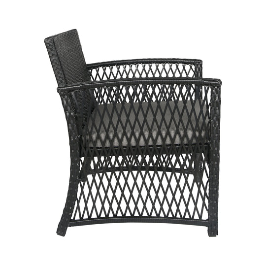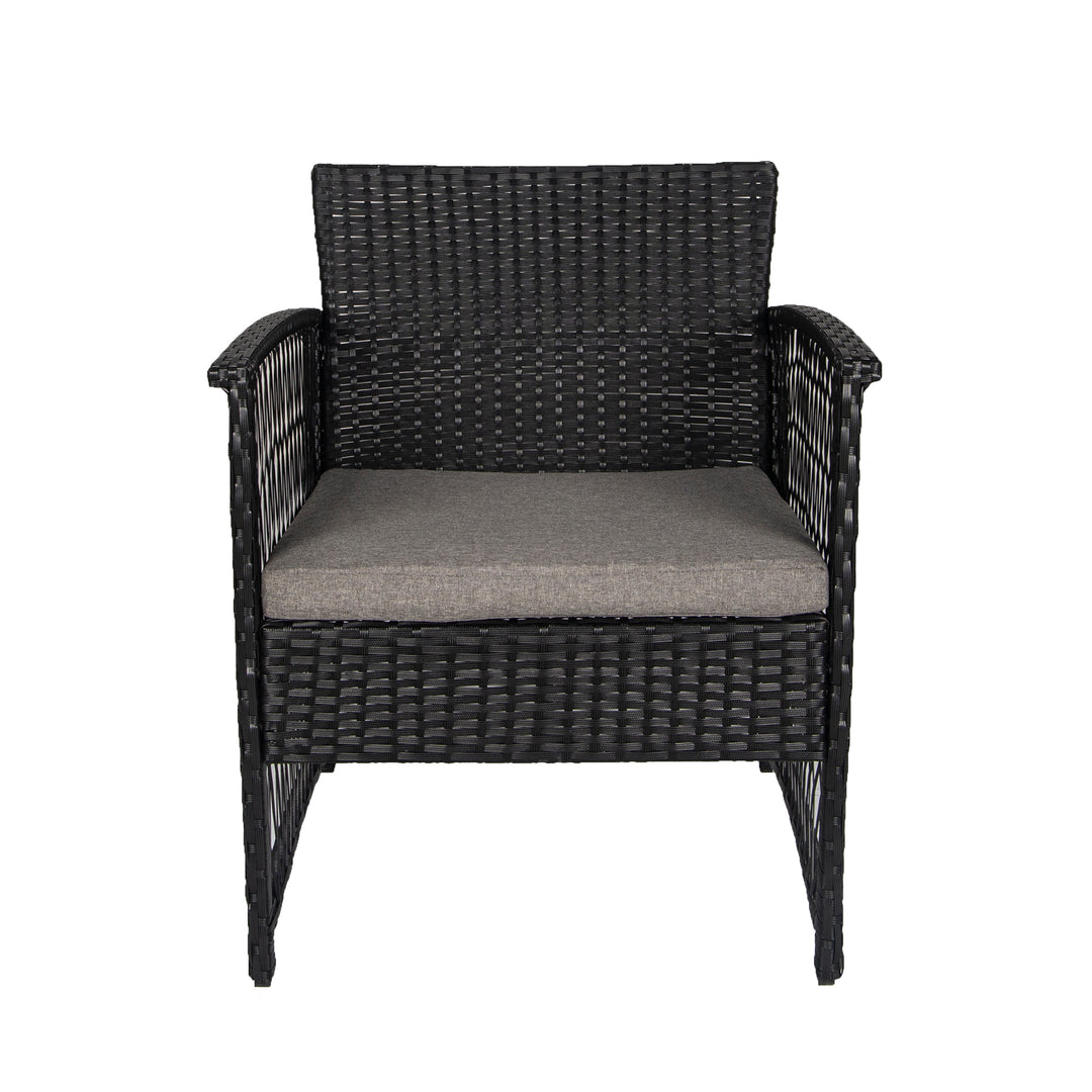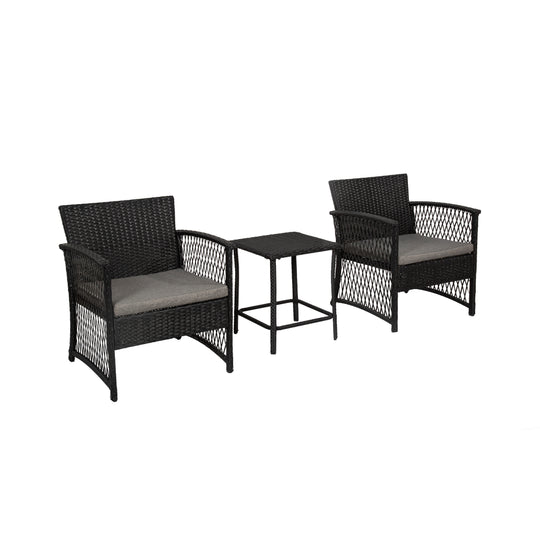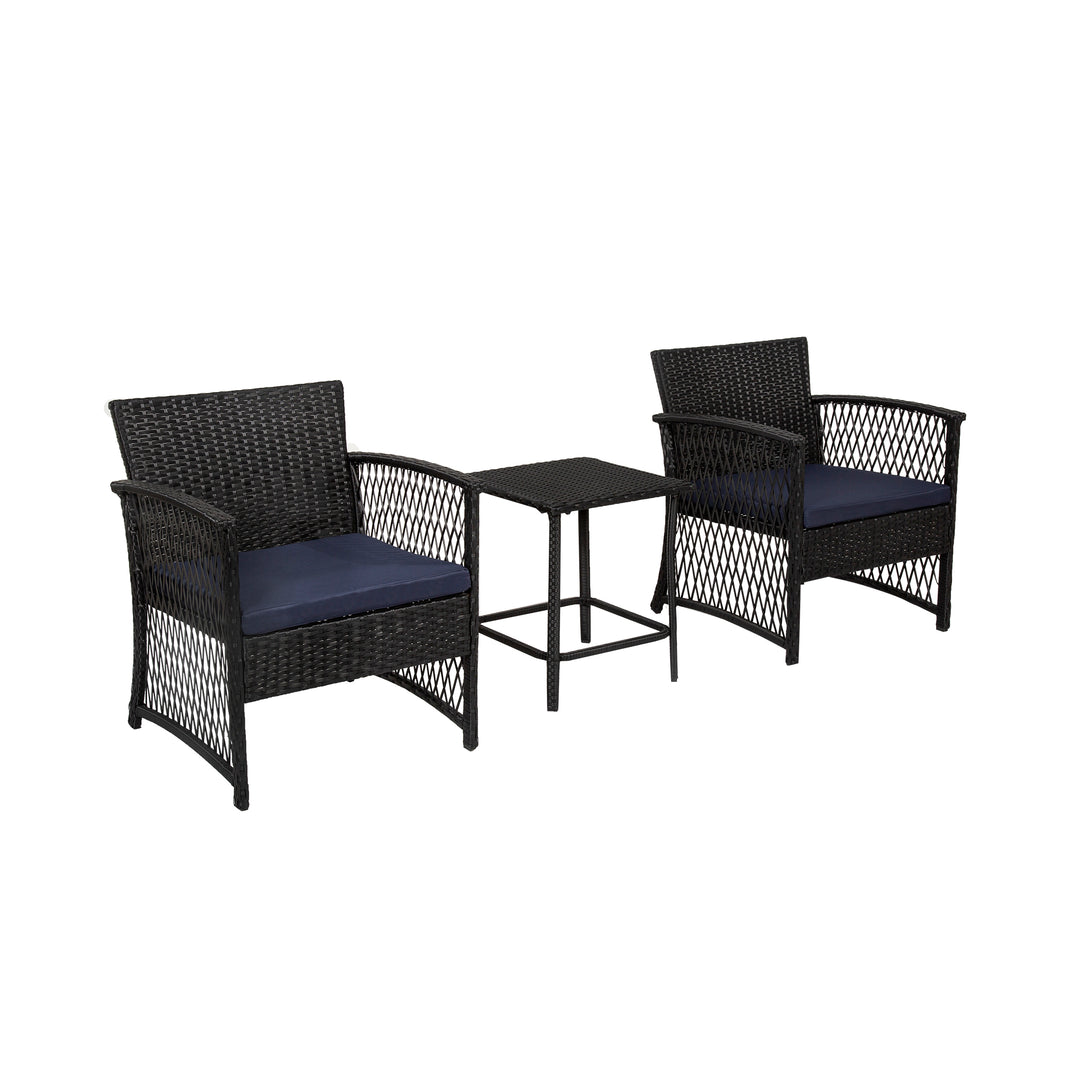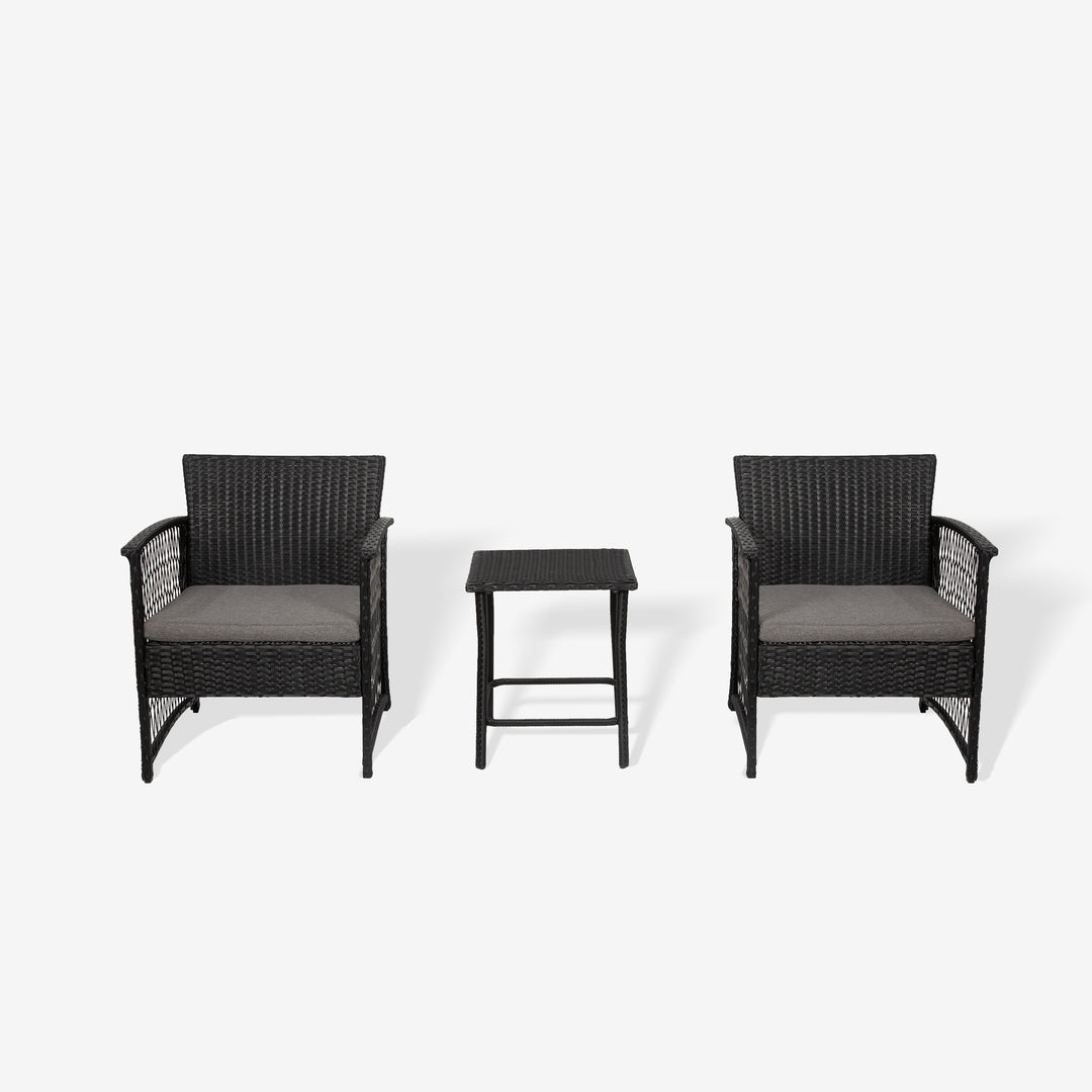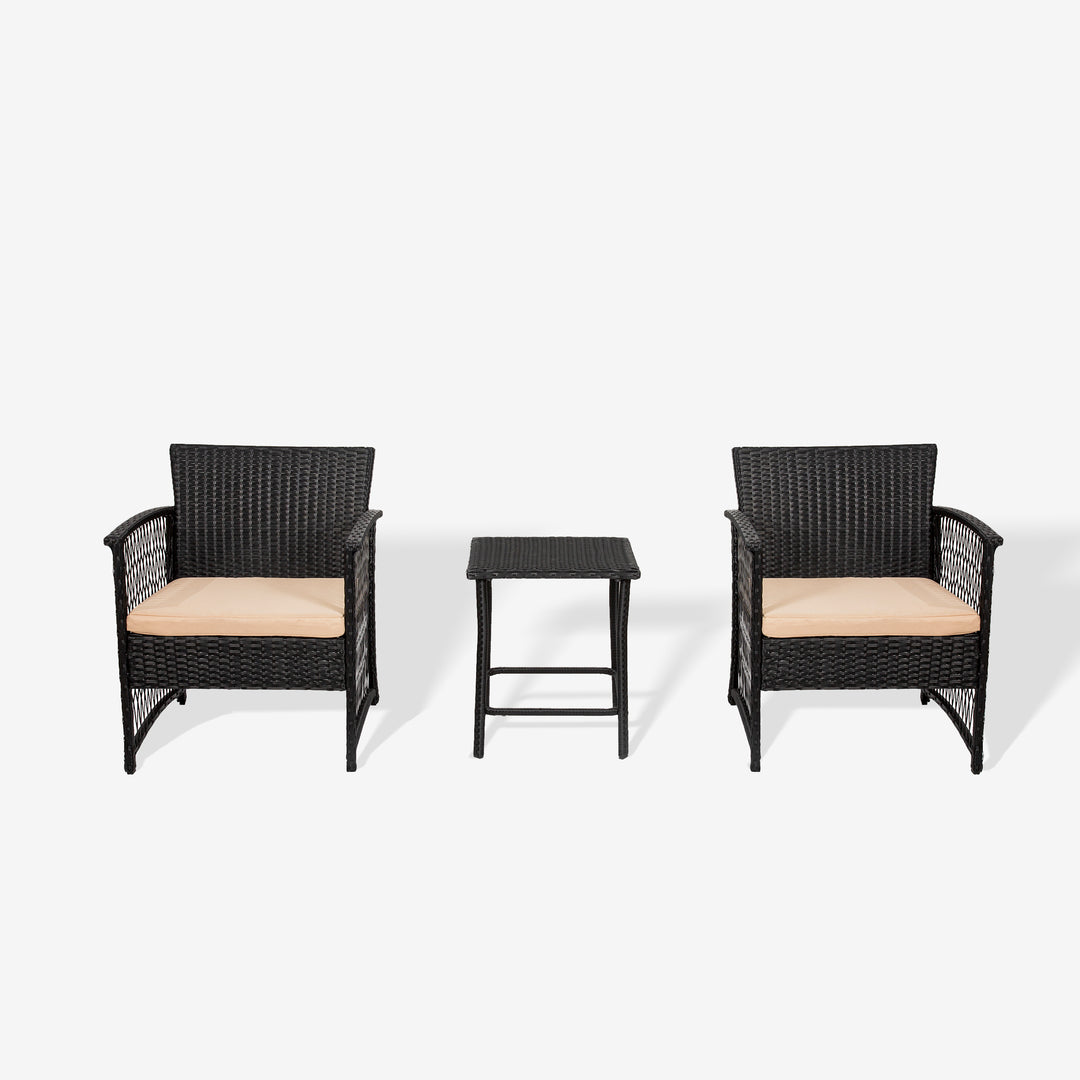 Melvi 3-Piece Outdoor Patio Wicker Conversation Set, Black