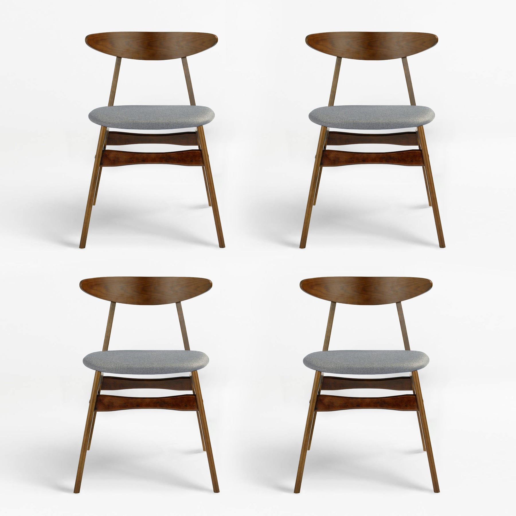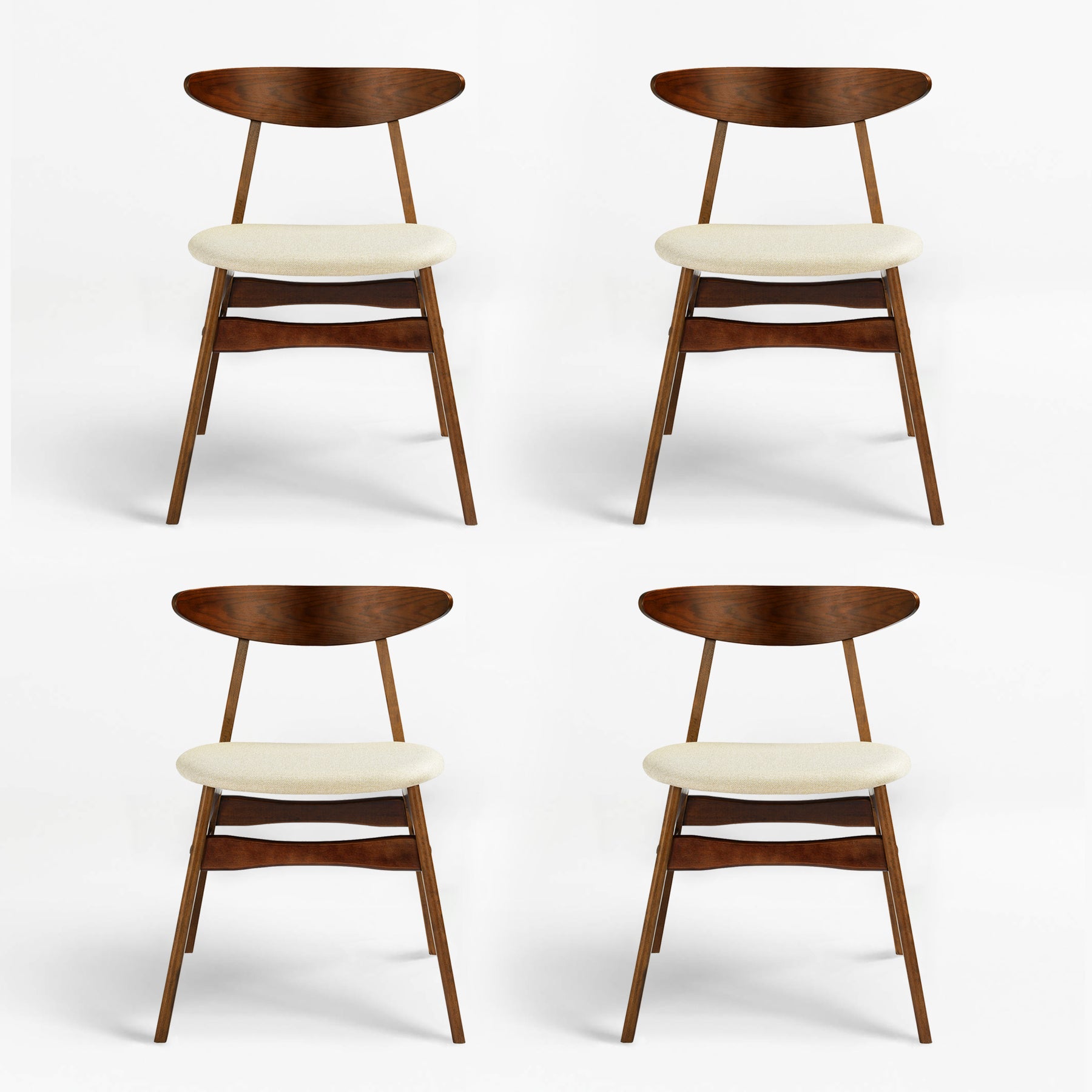 Whether you are inviting guests over or just sitting down with your family, this set of four wooden dining chairs brings a classic Mid-Century feel to any home. Featuring elegant curves and iconic splayed legs, these linen upholstered dining chairs provide you and your guests with comfort and long-lasting durability. These linen-upholstered wooden chairs are easily paired with most home décor styles. Some assembly is required.