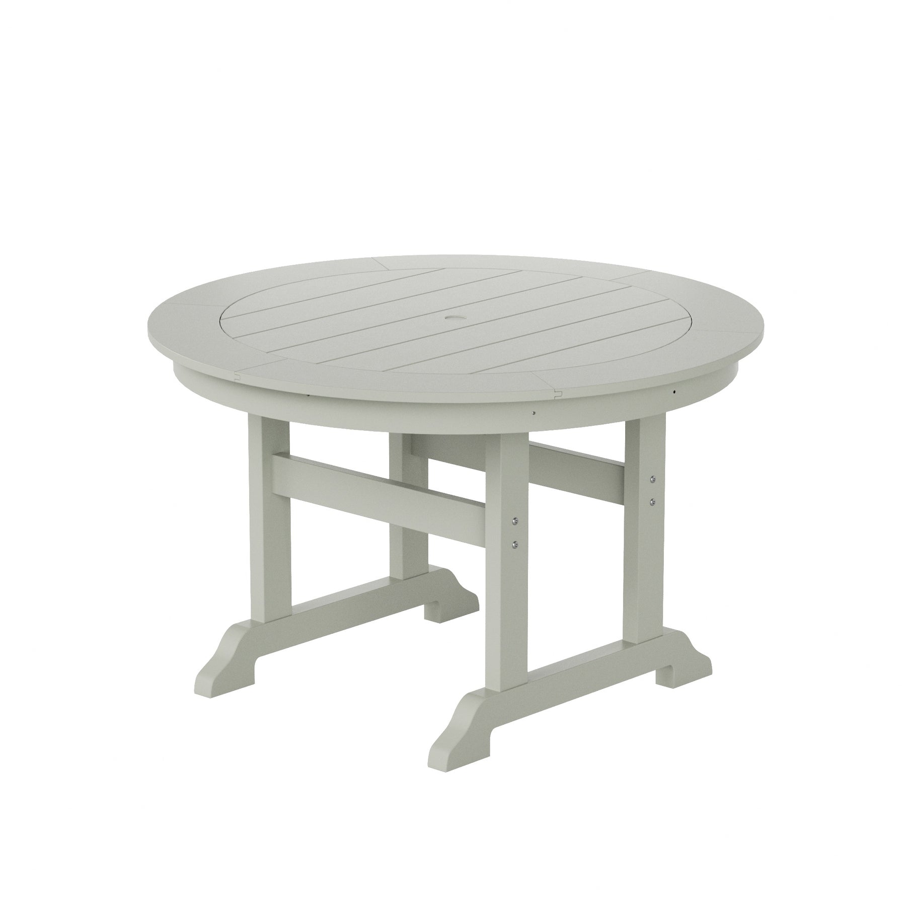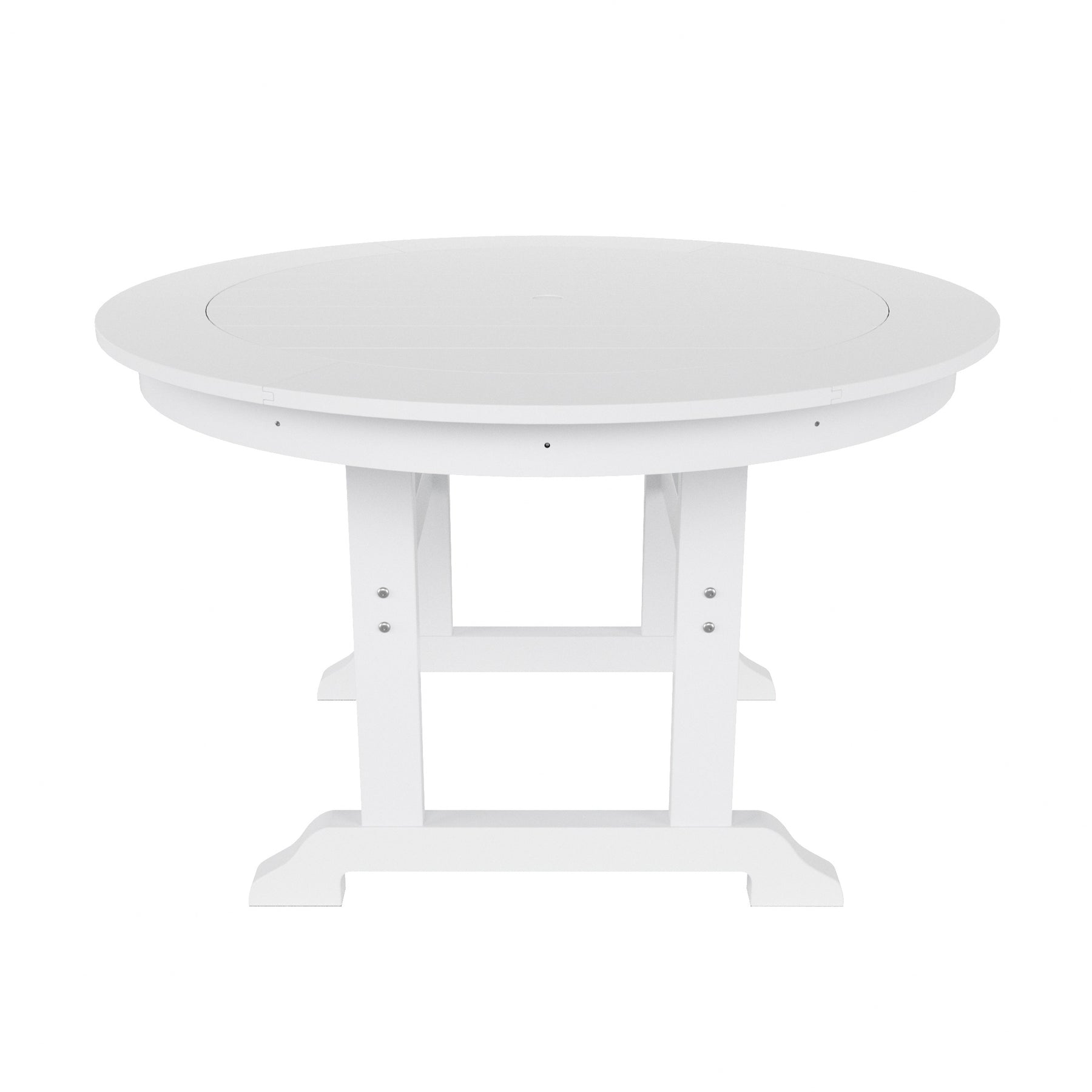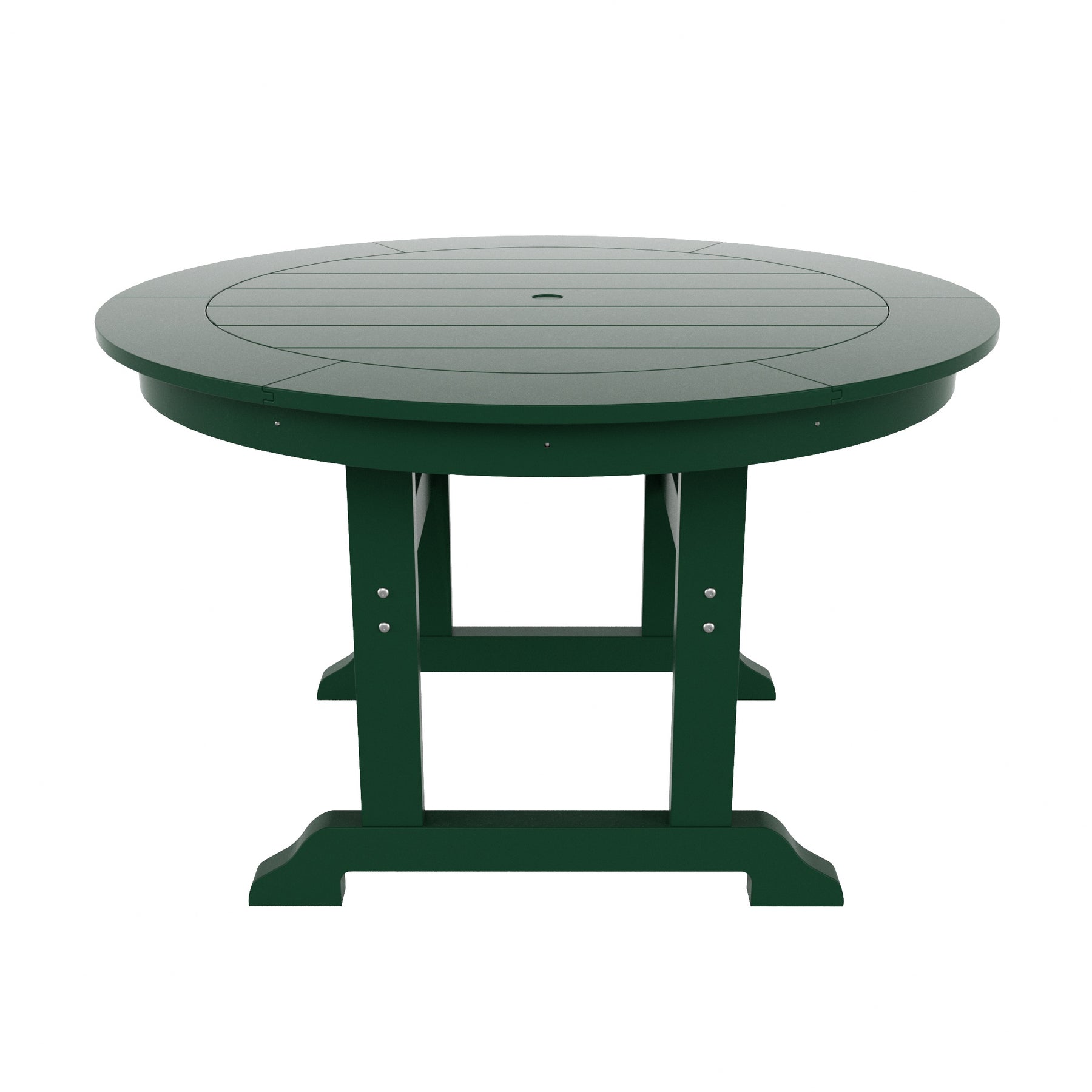 This 47" outdoor dining table is sure to complete your patio or backyard and match with your outdoor dining chairs. Created with eco-friendly HDPE material adds durability and can withstand the outdoor elements thanks to the HDPE's natural UV and weather resistant. The table is made to look like natural wood without any of the disadvantages of natural wood, meaning that this table isn't prone to splinters, cracks, or peeling. The 1.97" center hole is perfect for standard umbrellas. This table is perfect for the outdoors and will have your home looking great with the semi-gloss finish that is sure to shine.