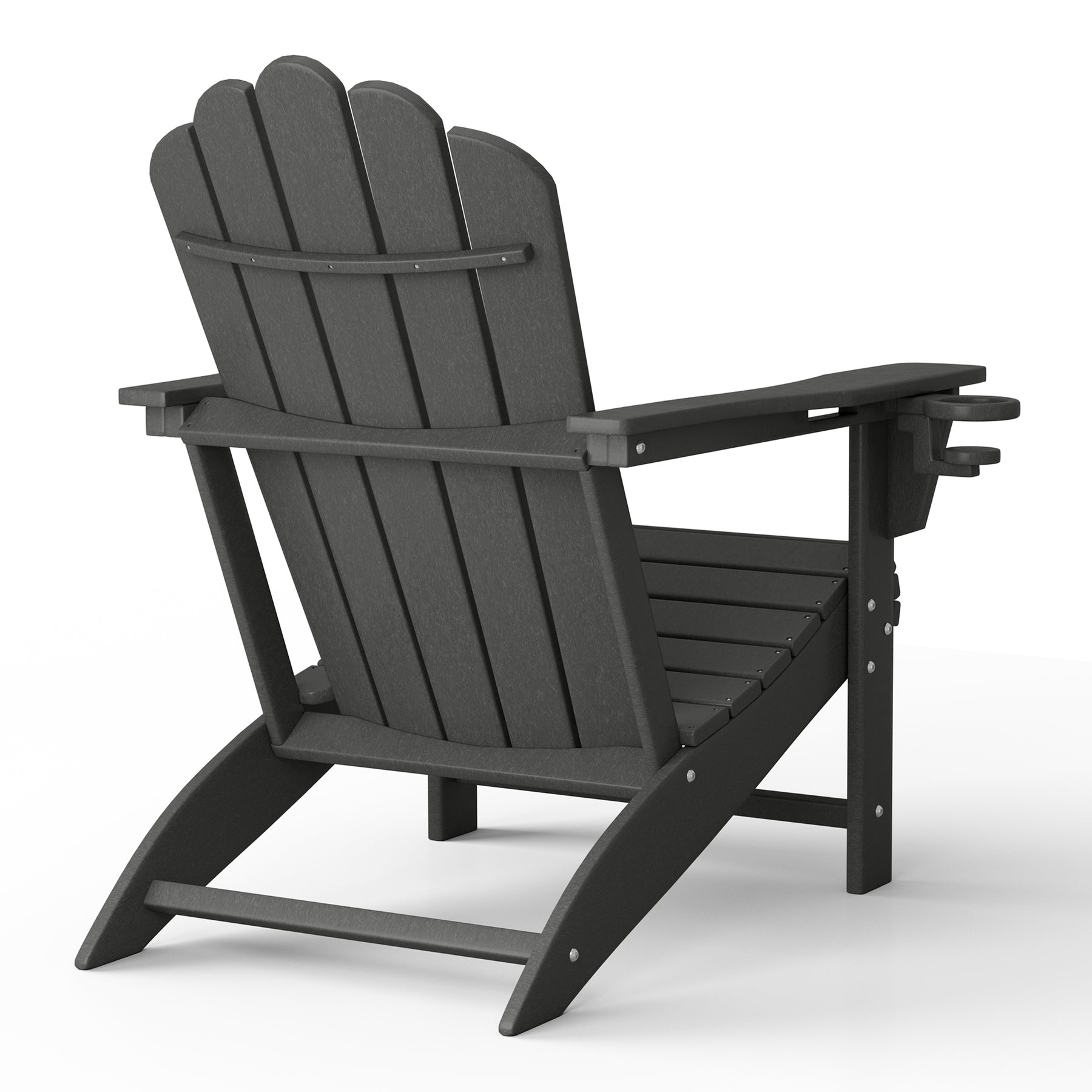 Pull up a chair and relax around the firepit with friends or loved ones with our set of four classic Adirondack chairs, featuring a hidden cup holder for ultimate convenience. Crafted from durable, weather-resistant, UV and fade-resistant HDPE, these chairs are designed to withstand the elements and provide lasting comfort. The contoured seat and backrest offer optimal support, while the hidden cup holder keeps your drink within reach.