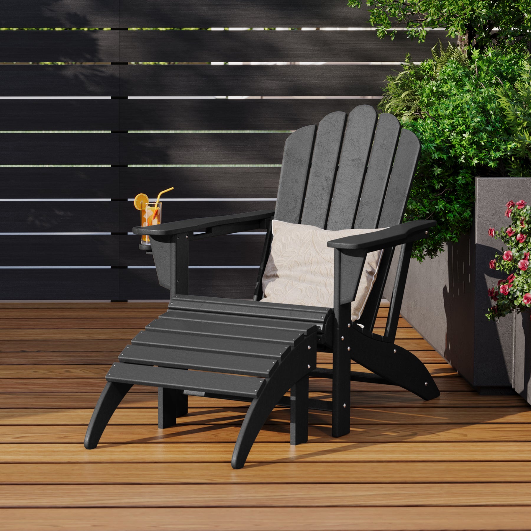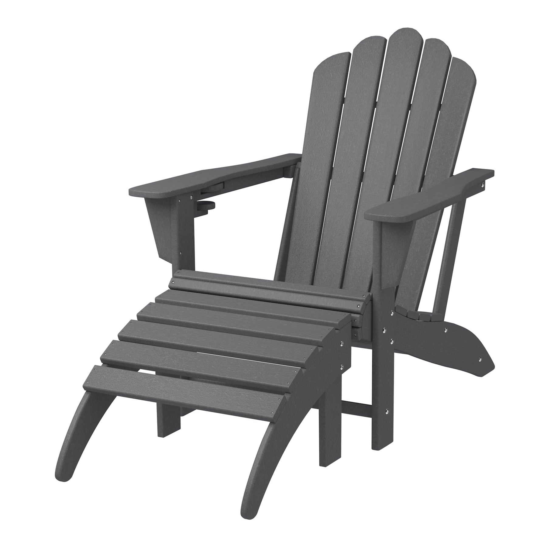 • Set Includes: One (1) Adirondack Chair with Cup Holder and One (1) Folding Ottoman