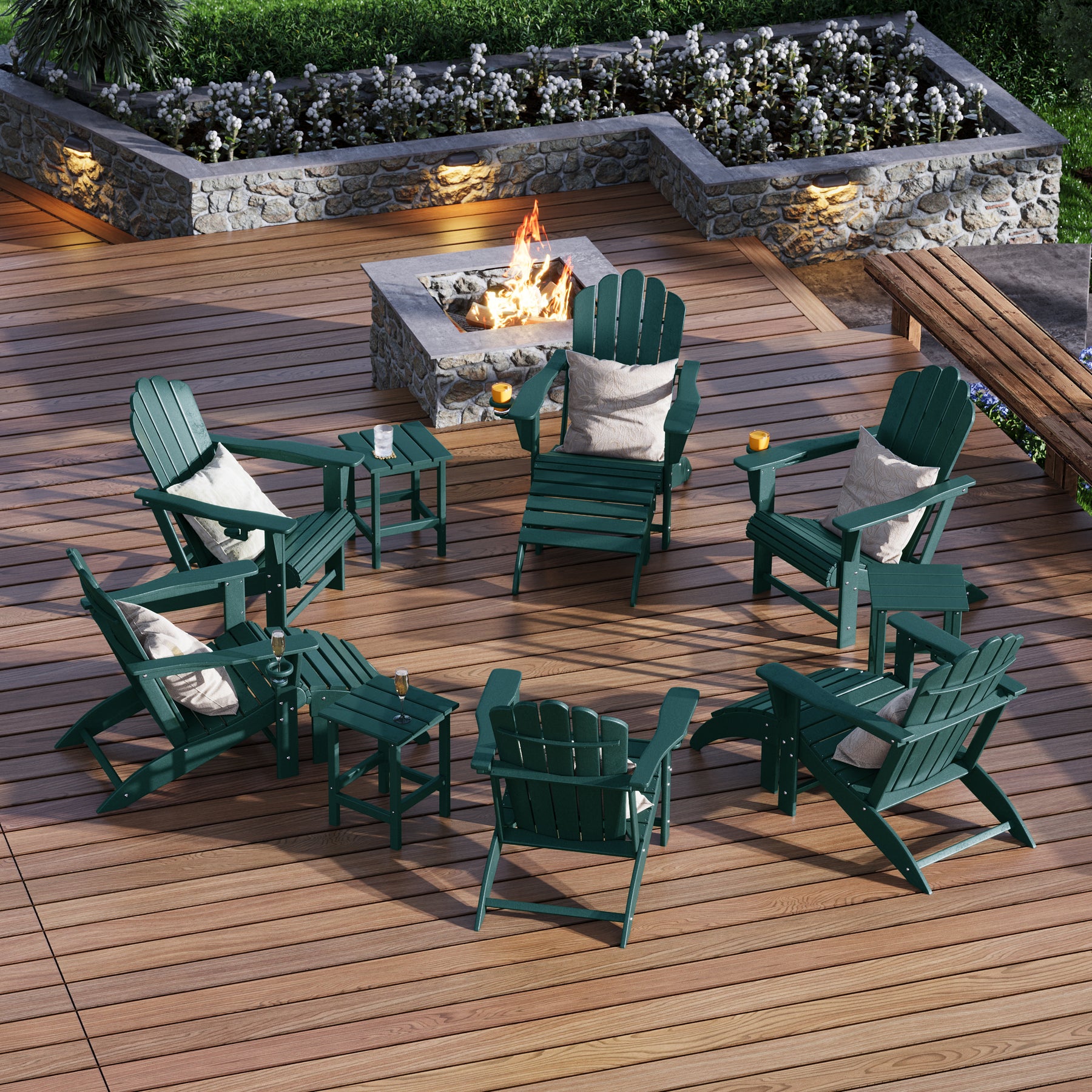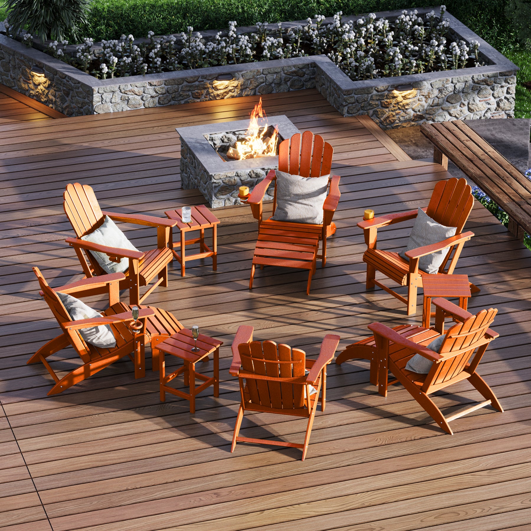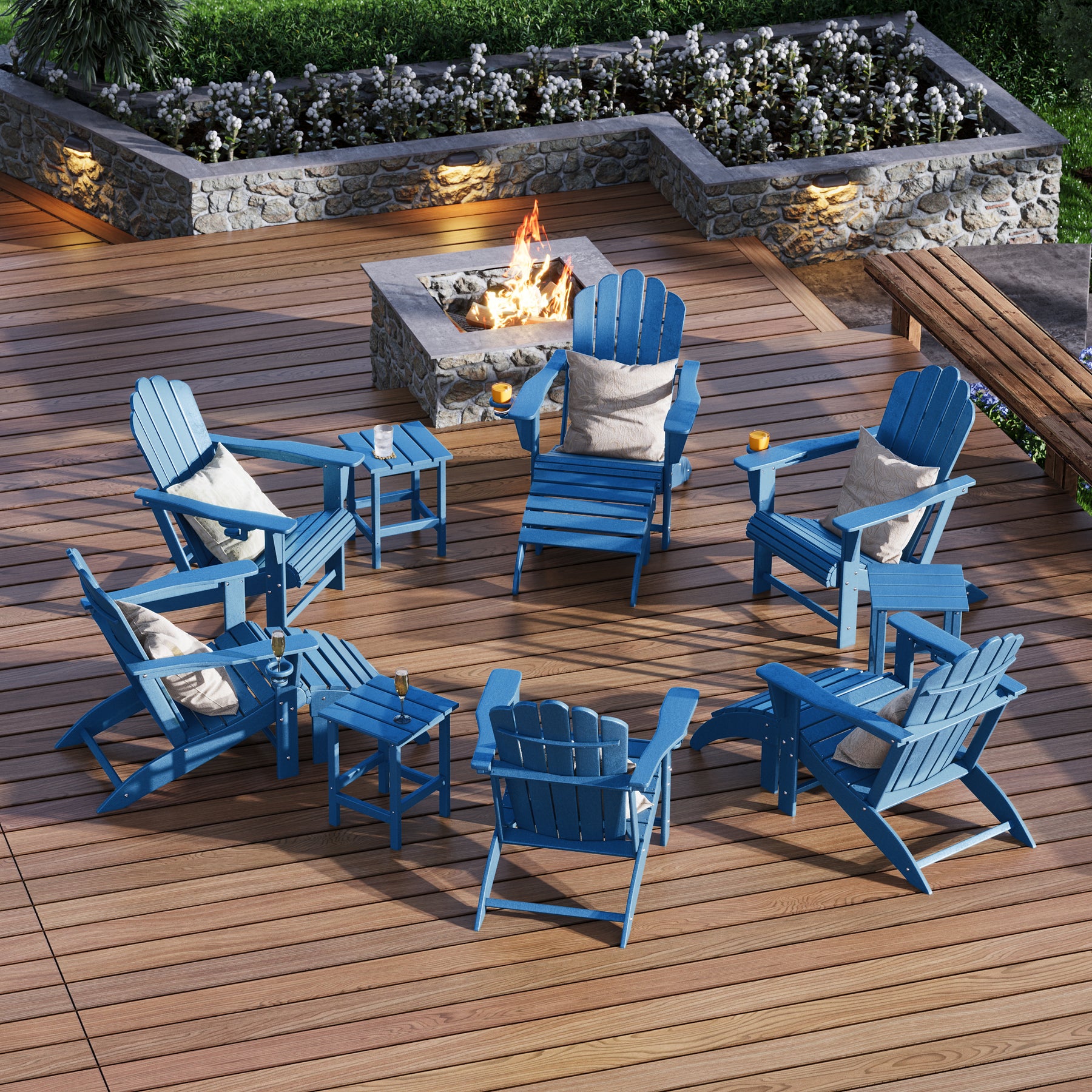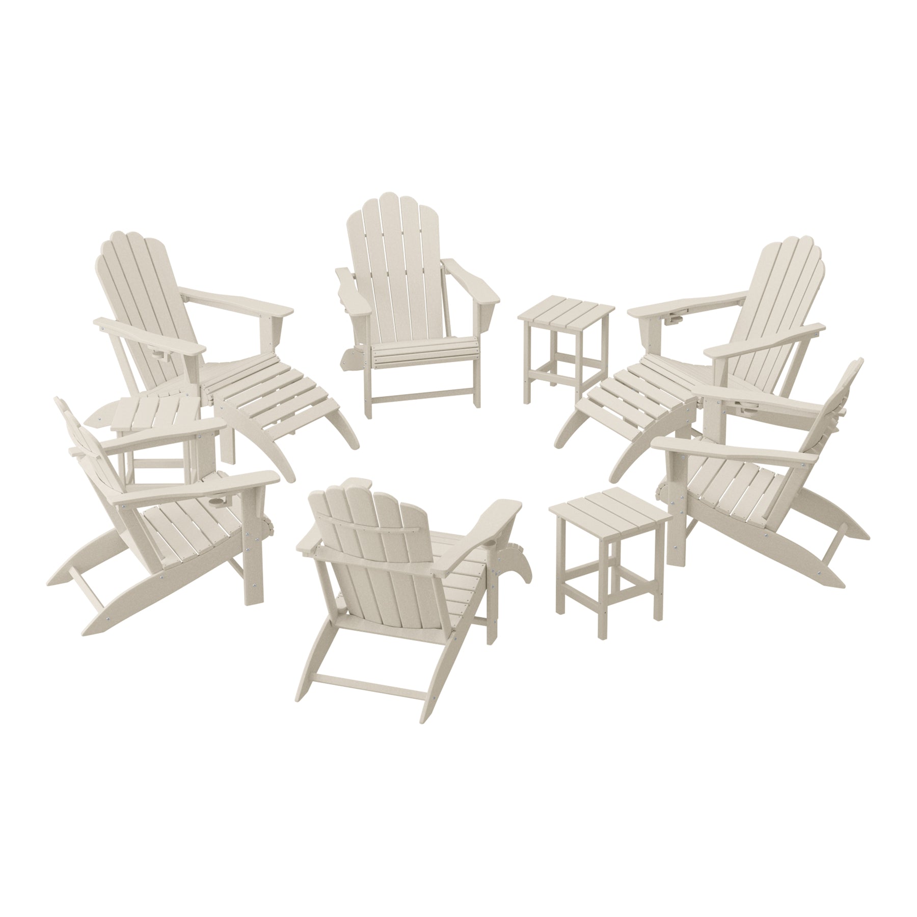• What's Included: (6) Adirondack Chair; (3) Ottoman; (3) Side Table