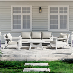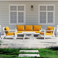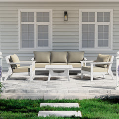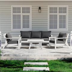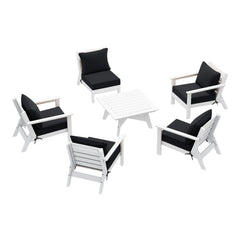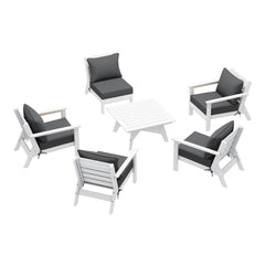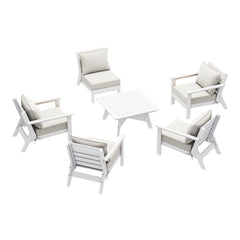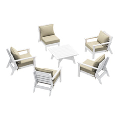 Invite friends and family over this season and gather around our charming 6-piece outdoor patio furniture sectional set. Sink into comfort on the high-resilience foam-filled, water-repellent deep seating patio cushions, far superior to regular polyurethane foam. Crafted from durable HDPE material, this sectional is more resilient than metal or wood options, with fade-resistant and weather-resistant properties. Create a cozy and inviting outdoor space with this stylish and durable furniture set.