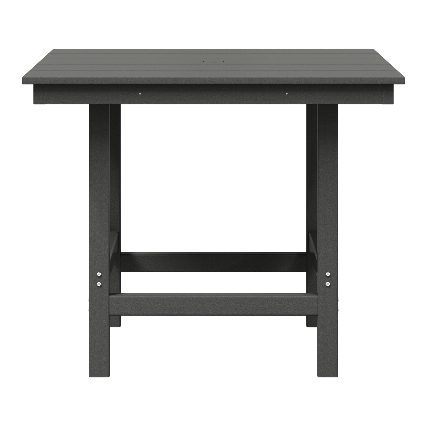 • Reinforced Tabletop Support Beam Construction with Stainless Steel Plates that Run Along the Side Skirts for Added Durability and Help Prevent Warping and 1.9" Diameter Built-In Umbrella Hole