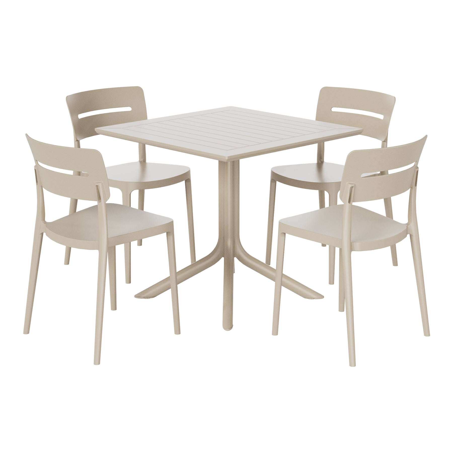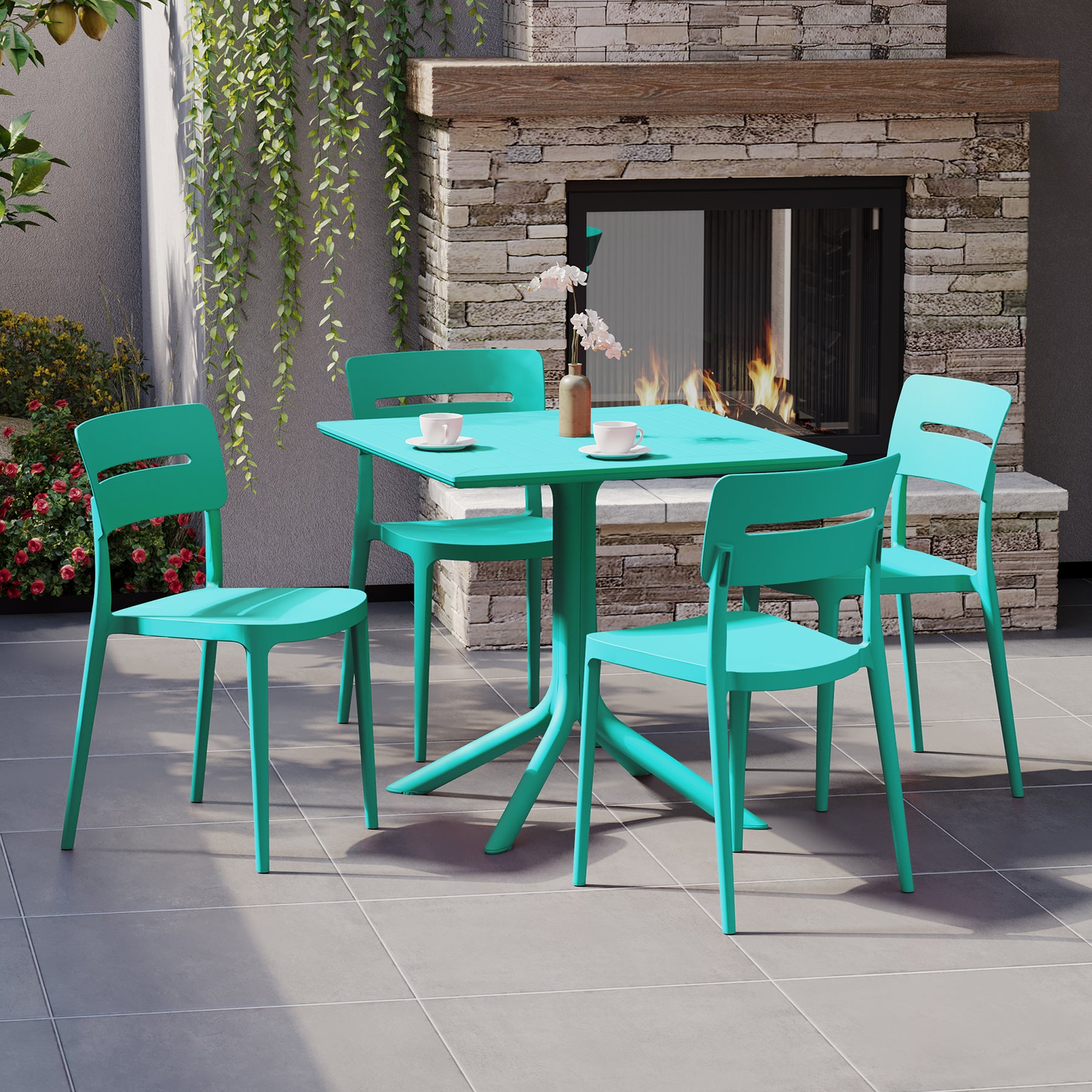 Gather with friends or family for a quick brunch on your balcony with our outdoor 5-piece dining table set with stackable resin dining chairs. Crafted from durable, all-weather PP resin, prepared to withstand the elements while retaining their vibrant color year-round thanks to their UV and fade-resistant properties. Lightweight and simple to move, they are perfect for creating a flexible dining area on even the smallest balconies or patios. Designed with comfort in mind, featuring a open backrest to keep you cool on warm summer evenings and adjustable foot levelers on the patio table to help prevent wobbling. And when not in use, the patio dining chairs stack neatly for easy storage.