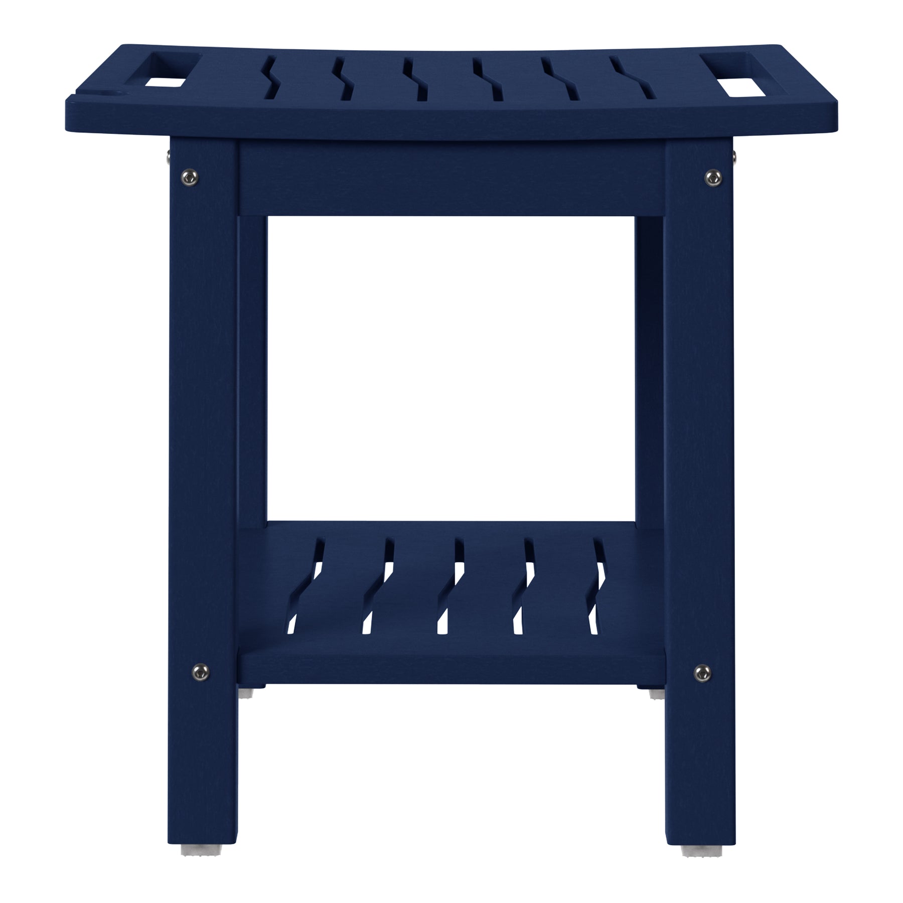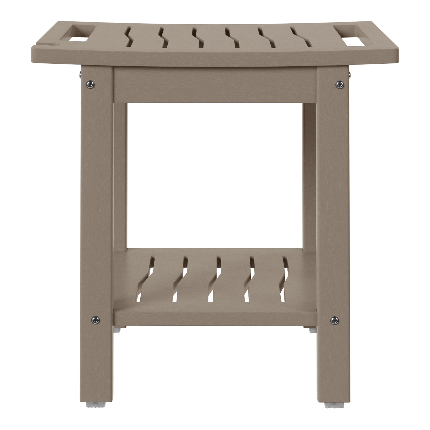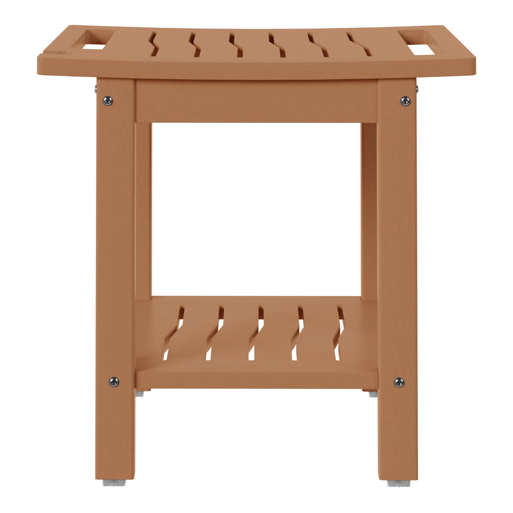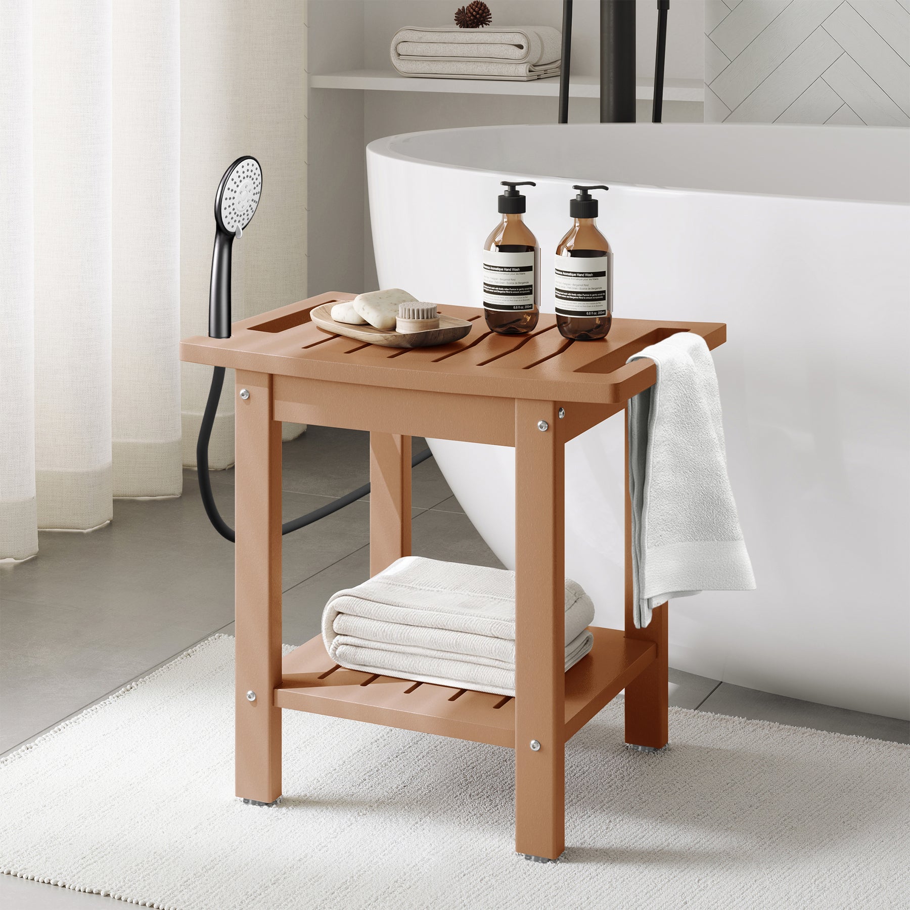 Upgrade your bathroom with our 2-tier HDPE poly shower bench, a thoughtfully designed solution for comfort, stability, and style. Crafted from durable HDPE, this waterproof shower bench for inside shower is built to withstand moisture, resist fading, and endure daily use, making it ideal for humid spaces. The ergonomically curved seat provides enhanced support and comfort, while a built-in hand shower holder, bottom storage shelf, and towel rack handles add practical convenience. Integrated drainage holes allow water to flow through quickly, keeping the surface dry and low-maintenance. The anti-slip rubber foot pads with textured grips ensure stability on wet surfaces. Perfect for a shower bench that's waterproof, this versatile poly shower bench combines modern design, lasting durability, and thoughtful functionality for a seamless addition to any shower or bath space.