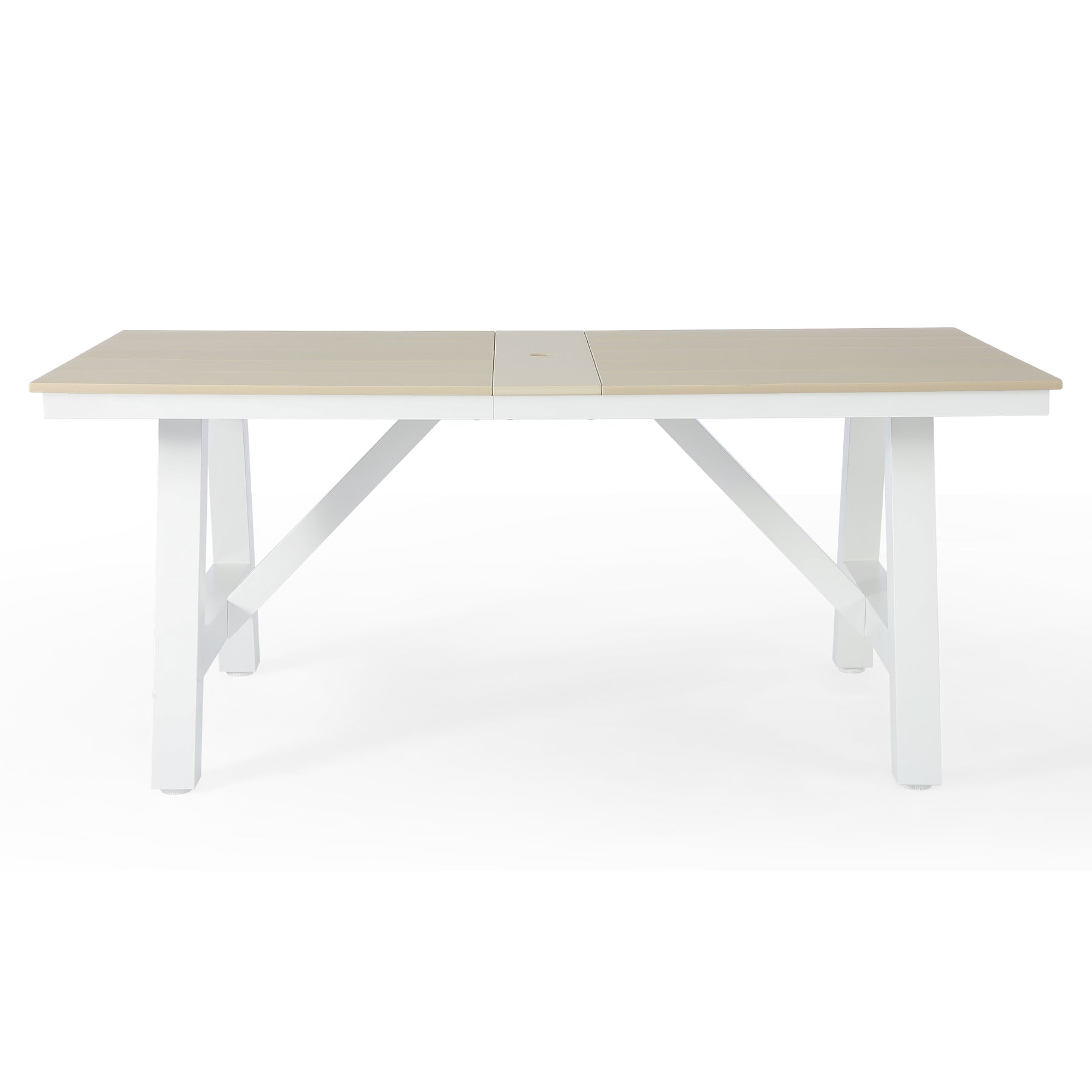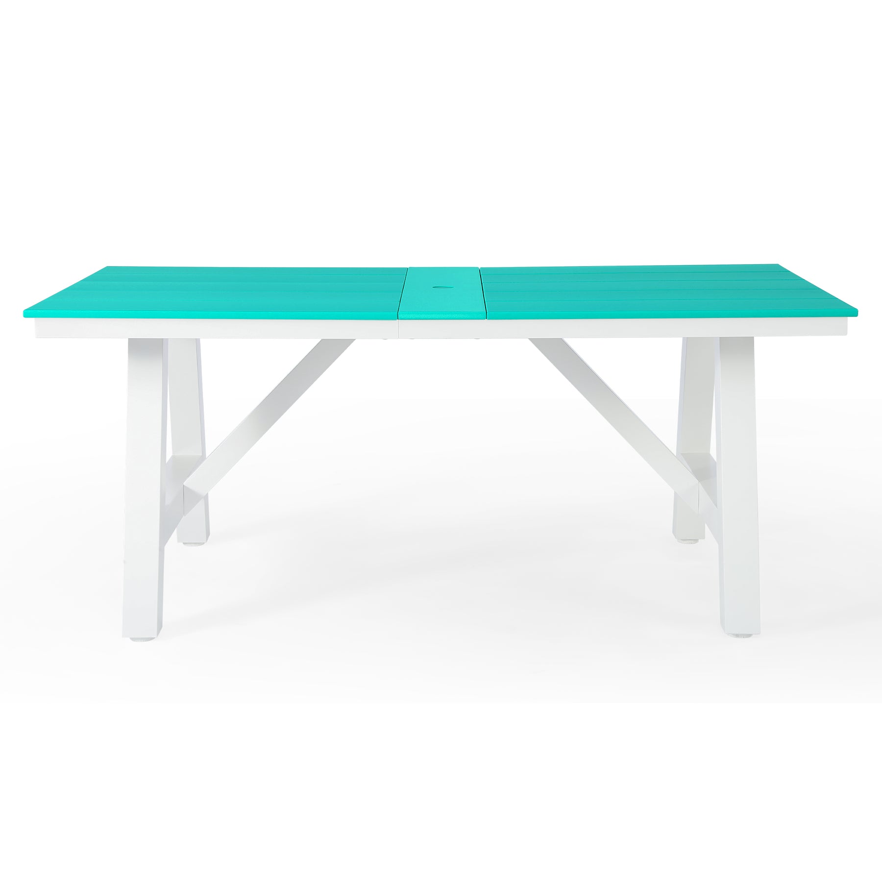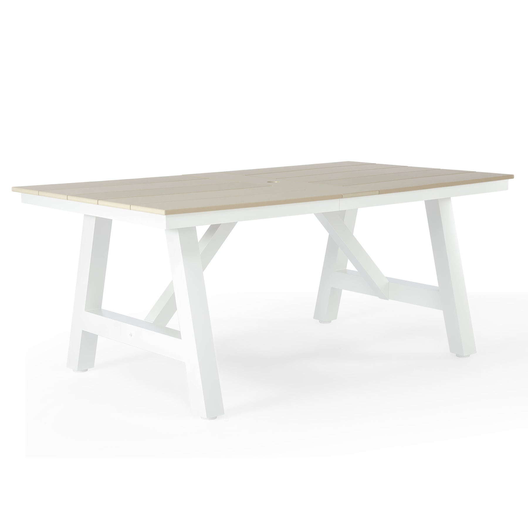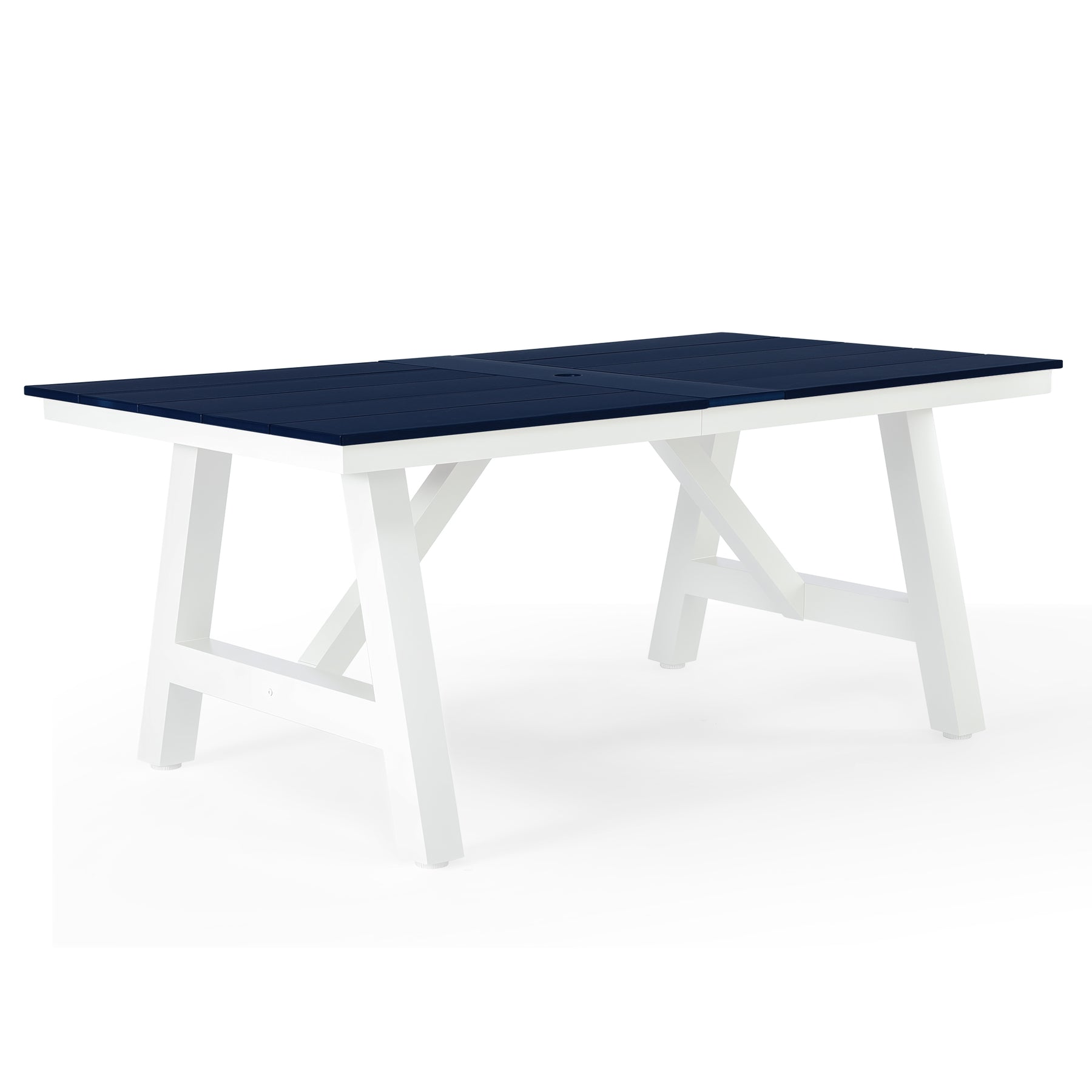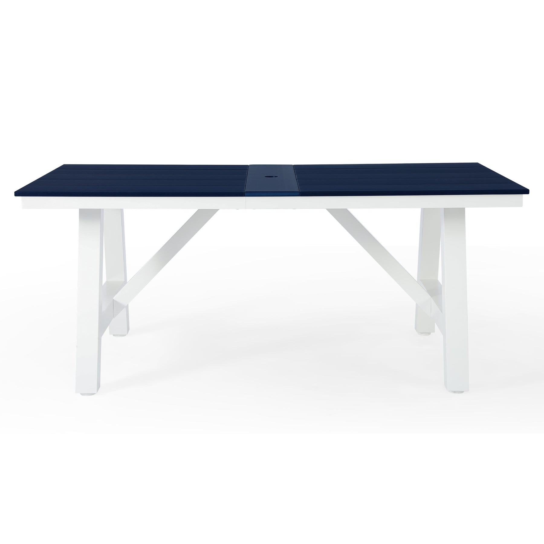 Cape May 72" HDPE Rectangle Outdoor Patio Dining Table With Umbrella Hole and Metal Frame