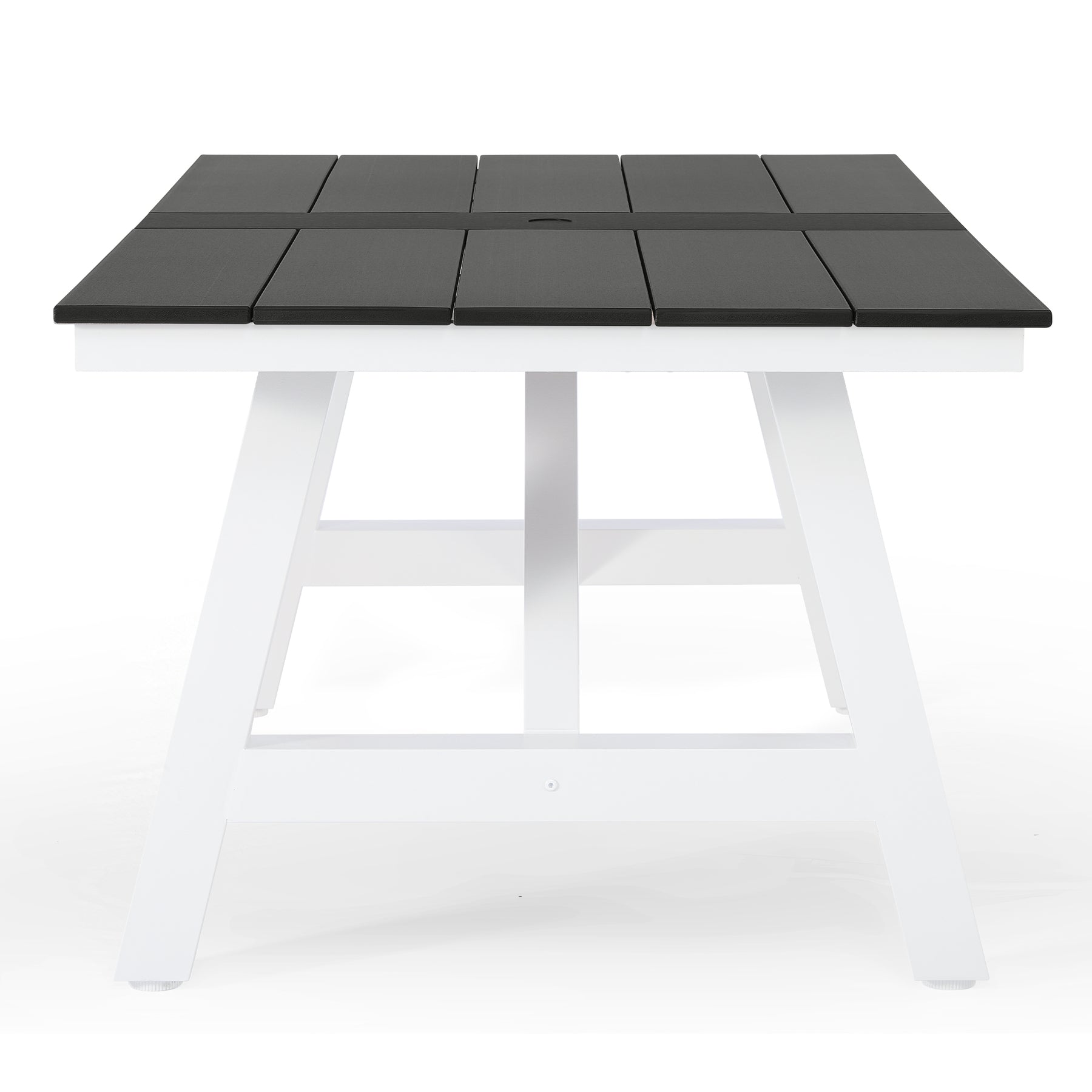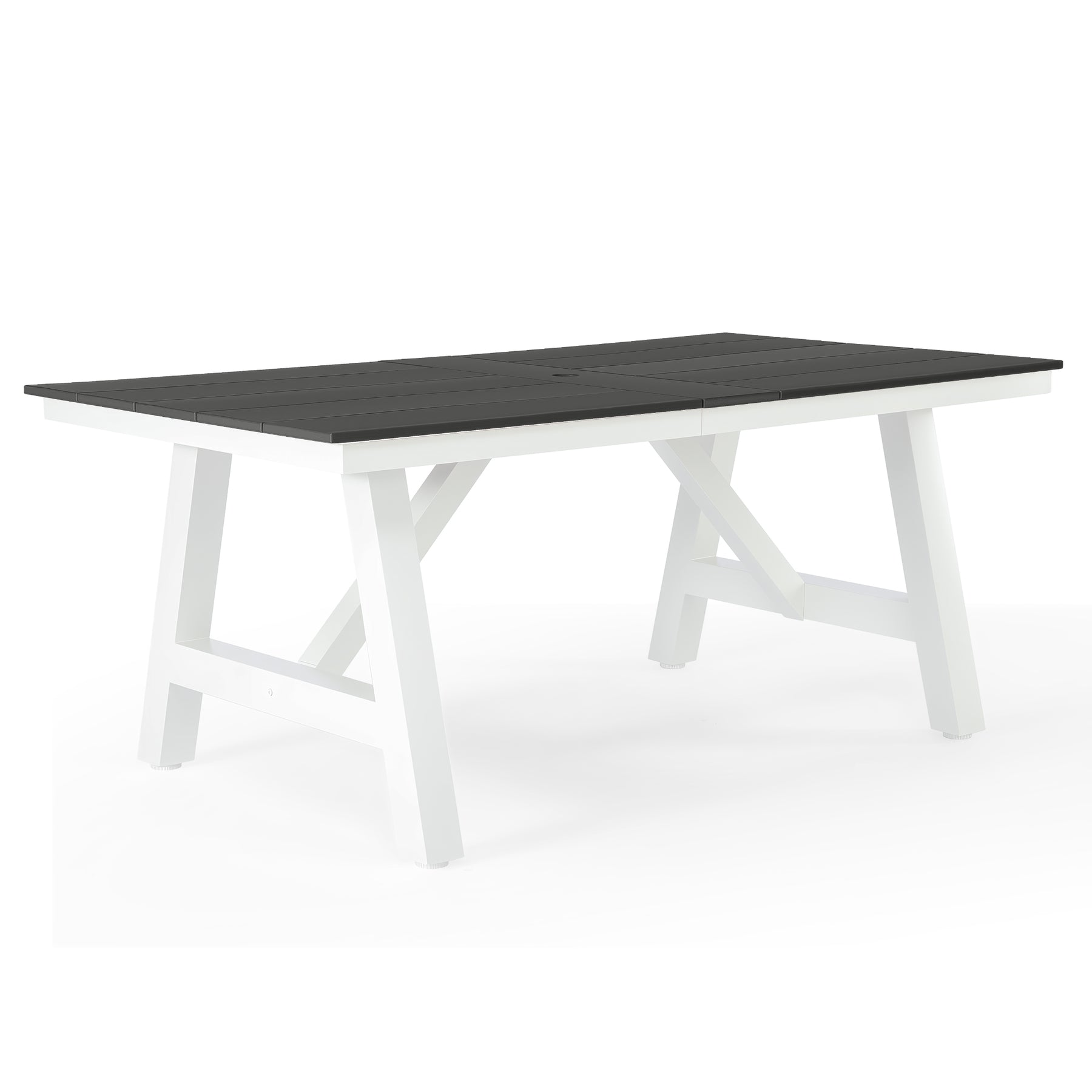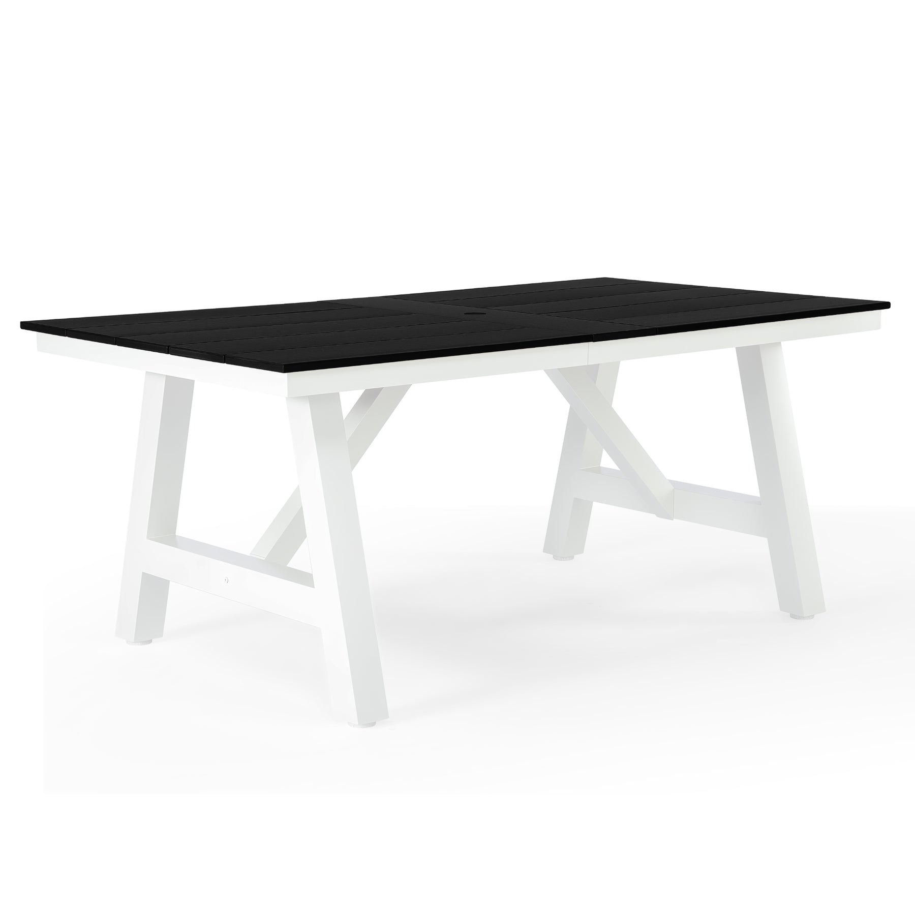 Ideal for hosting and everyday outdoor dining, this 72-inch HDPE patio dining table comfortably seats up to six people, making it a perfect choice for an outdoor dining set for 6. Its spacious rectangular design offers ample room for meals, conversation, and gatherings, fitting seamlessly into patios, decks, and open-air dining spaces. Constructed from high-quality HDPE, this table is built to withstand fading, weather exposure, and UV rays, ensuring reliable performance season after season. The sturdy powder-coated stainless steel frame with reinforced support beams provides dependable strength and stability, while the powder-coated finish adds an extra layer of protection against rust, corrosion, and everyday wear—helping maintain its clean appearance over time. Together, these features create a solid foundation for everyday use and memorable family gatherings alike. For added functionality, the table features a 1.97-inch umbrella hole to accommodate shade on sunny days, along with adjustable foot pads that help maintain balance on uneven surfaces. Combining durability, stability, and clean modern styling, this HDPE outdoor dining table is a practical and polished addition to any outdoor dining table set.